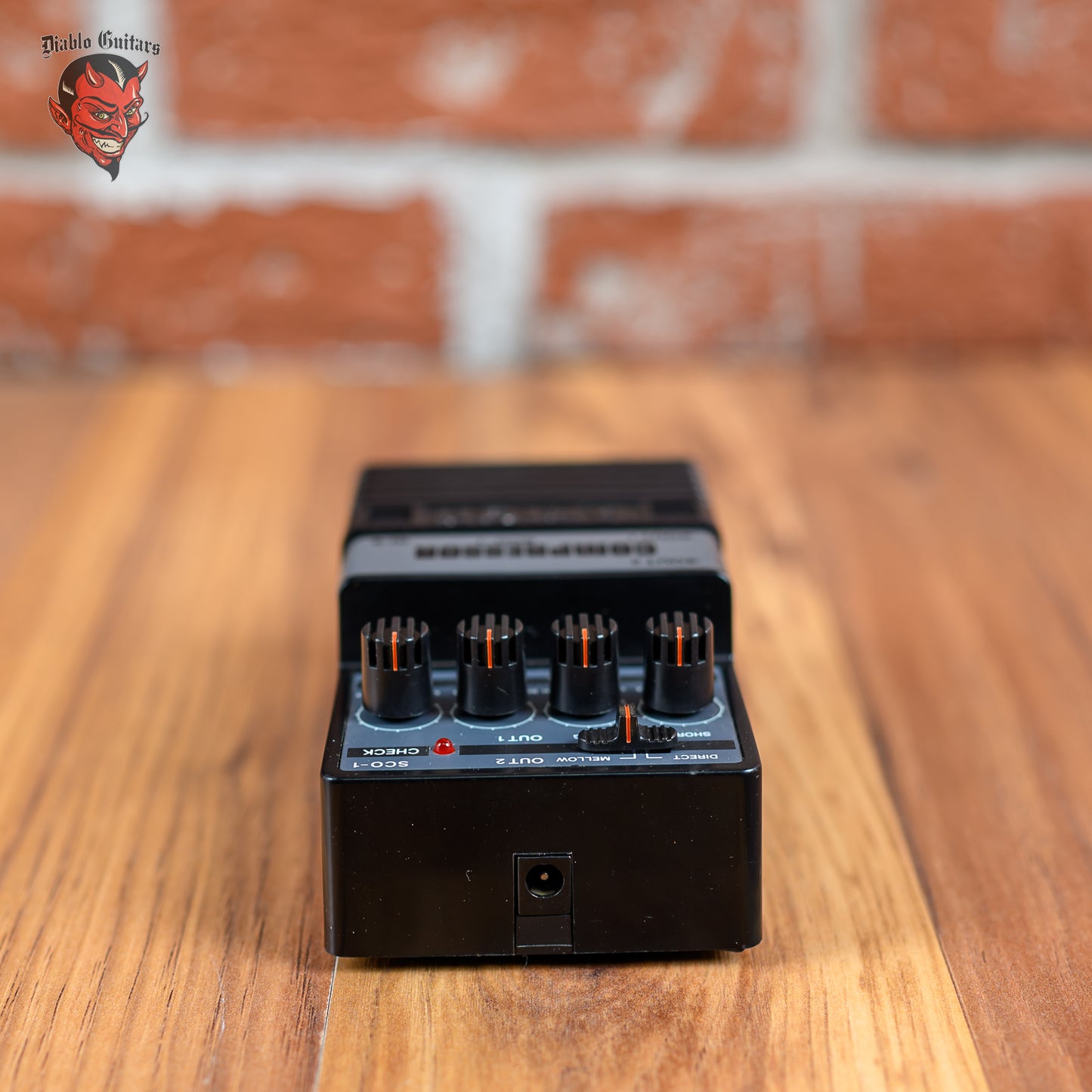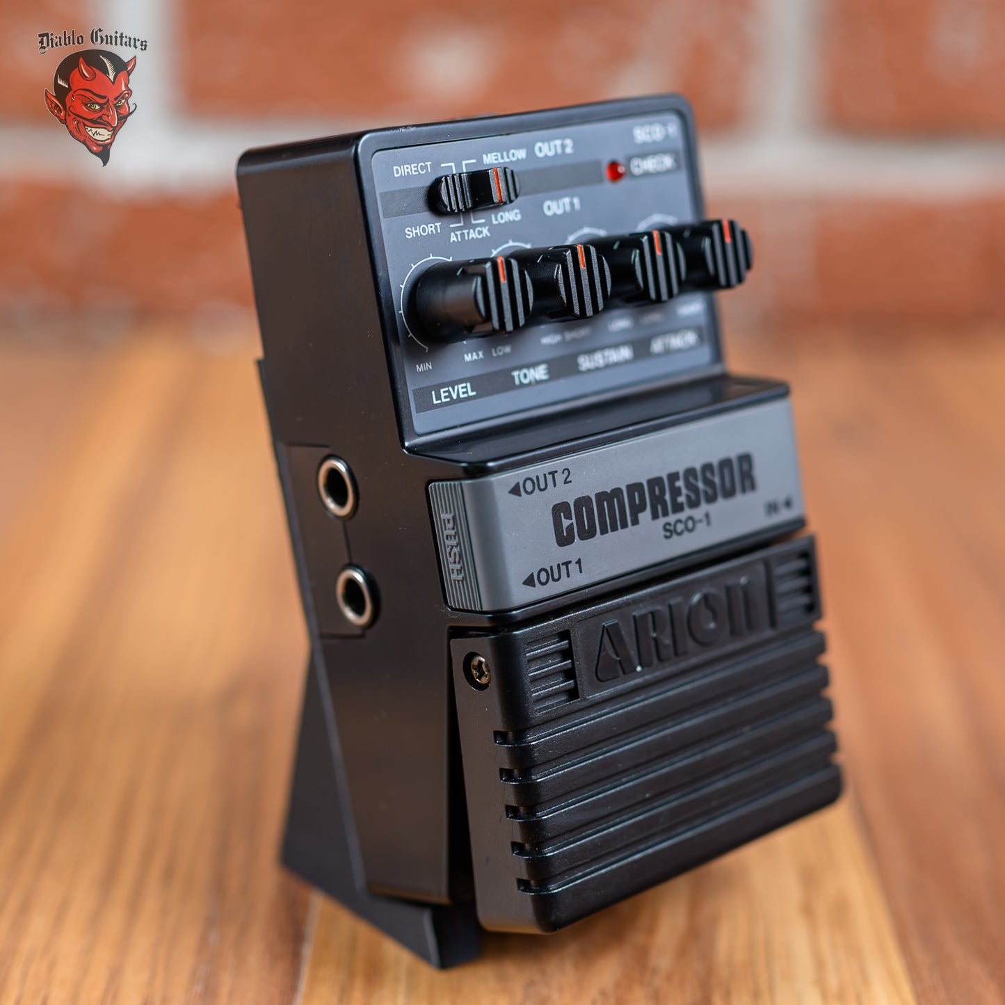 Elevate your guitar's tone with the Arion SCO-1 Compressor, a vintage gem from the 1980s. Crafted with precision in Japan, this pedal offers an unparalleled smoothness to your playing, making it a sought-after piece for both collectors and performers. Its straightforward design belies the dynamic range and tonal versatility it brings to your setup, allowing for everything from subtle sustain enhancement to full-blown, punchy compression. Ideal for those looking to add a classic touch to their sound without sacrificing clarity or control.