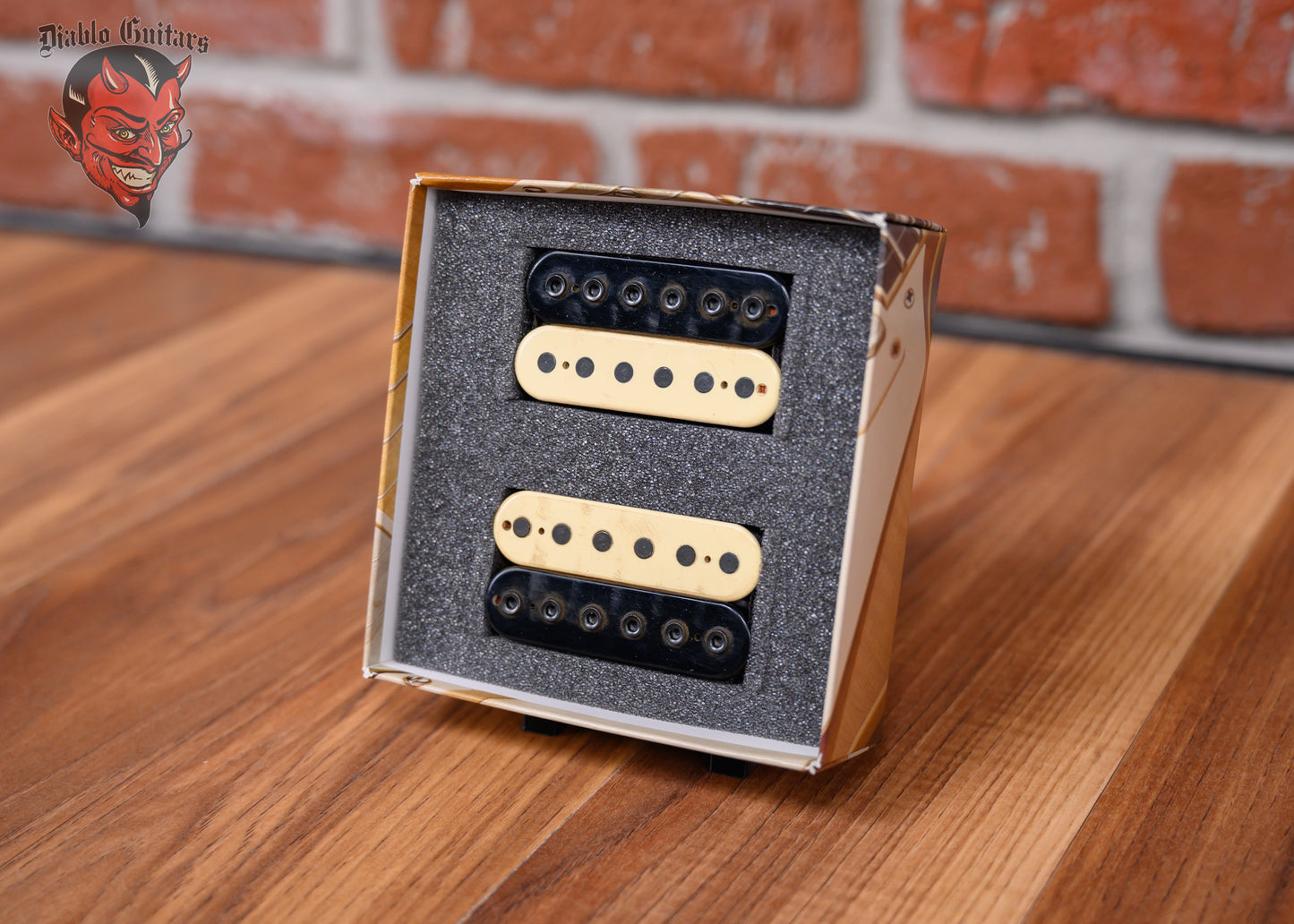 Bareknuckle Painkiller Humbucker Set with Aged Reverse Zebra Bobbin with Black Bolts in 53mm Trem Bridge Spacing and Ceramic Magnets.