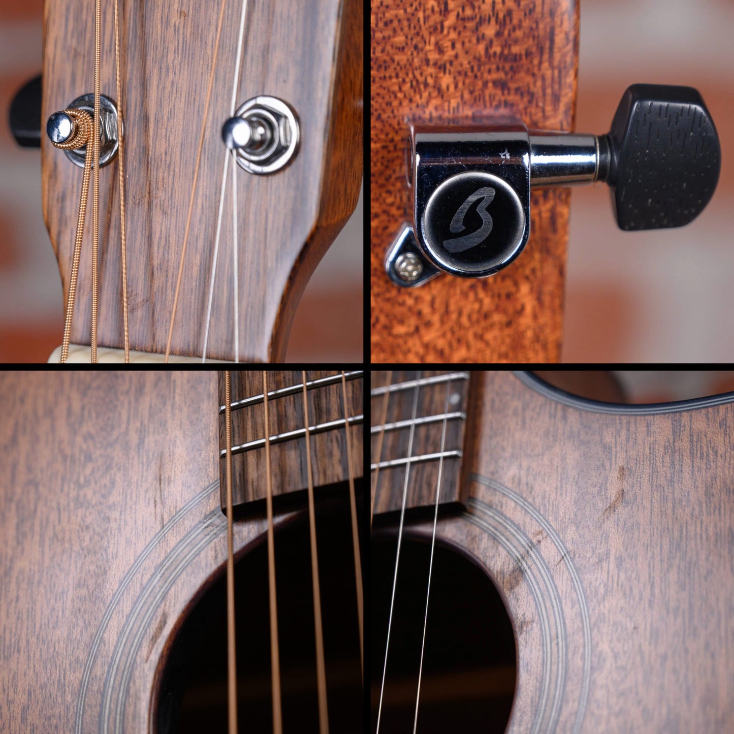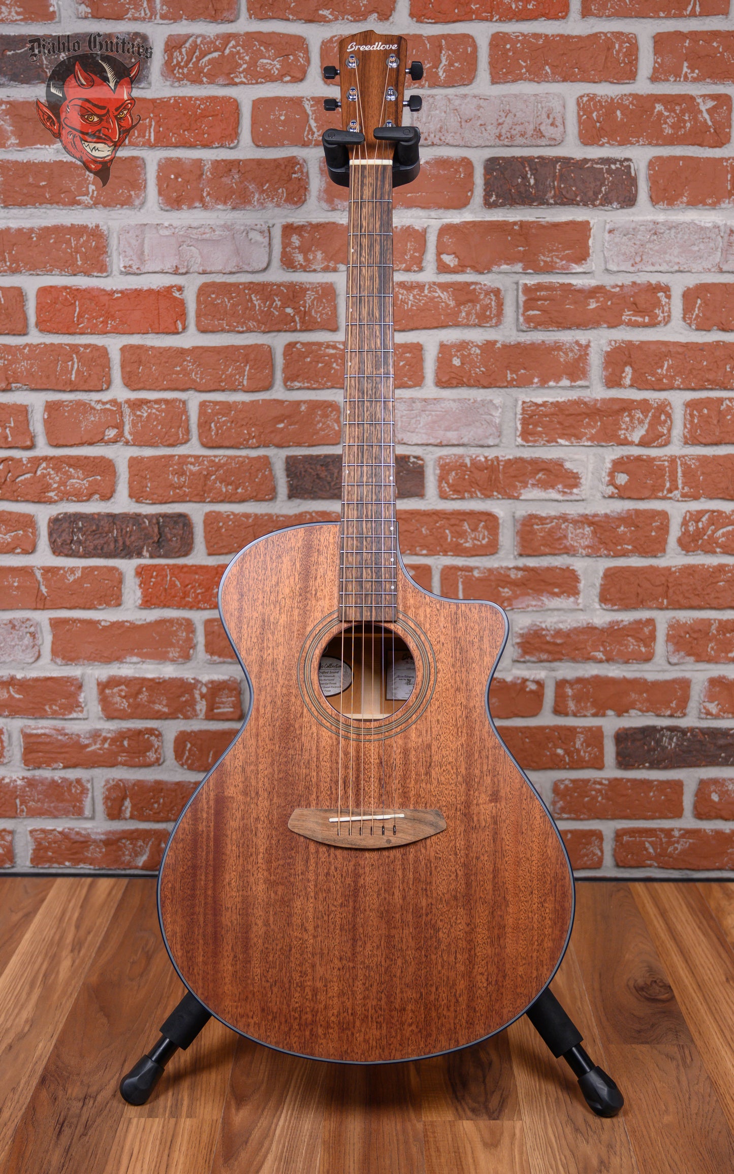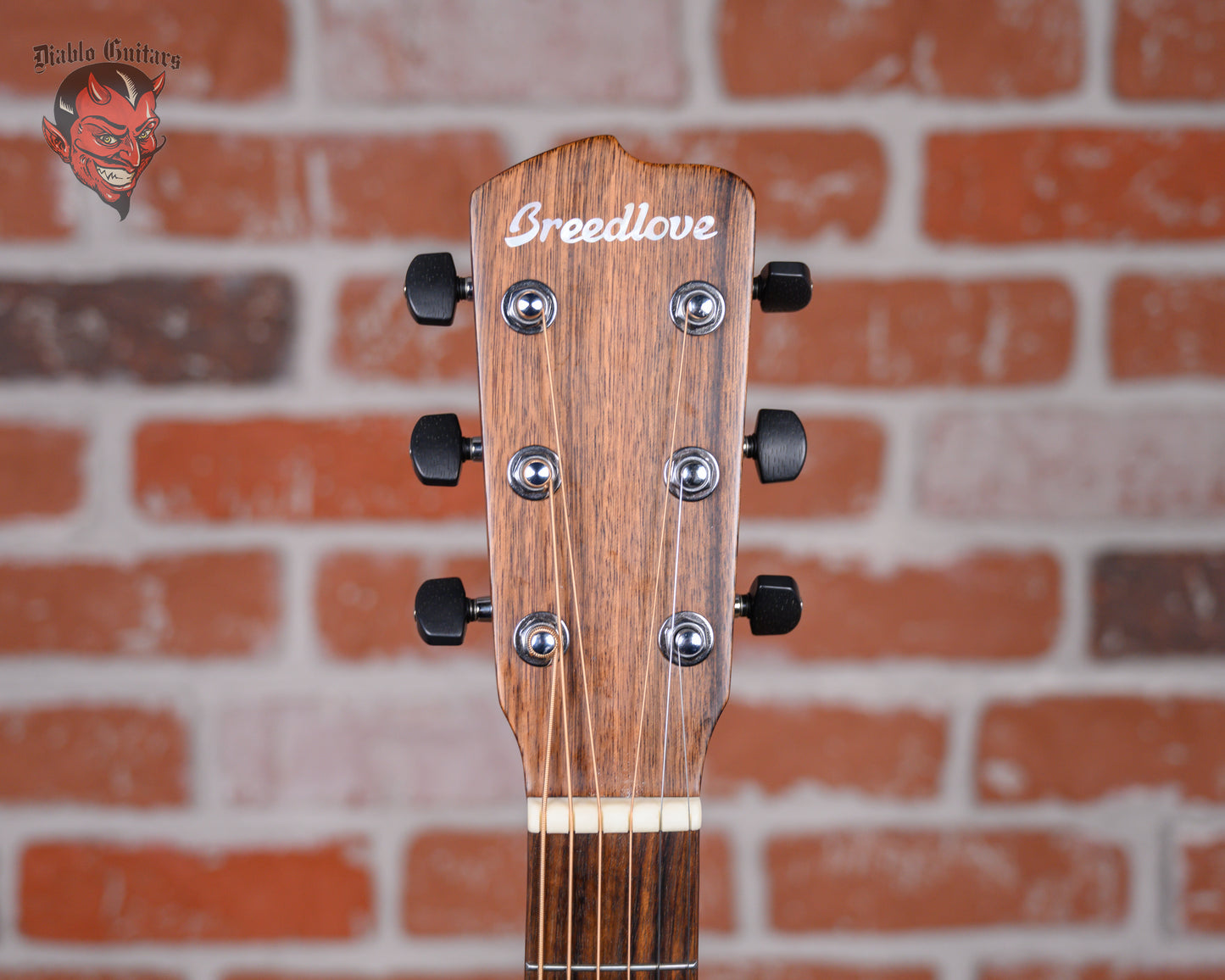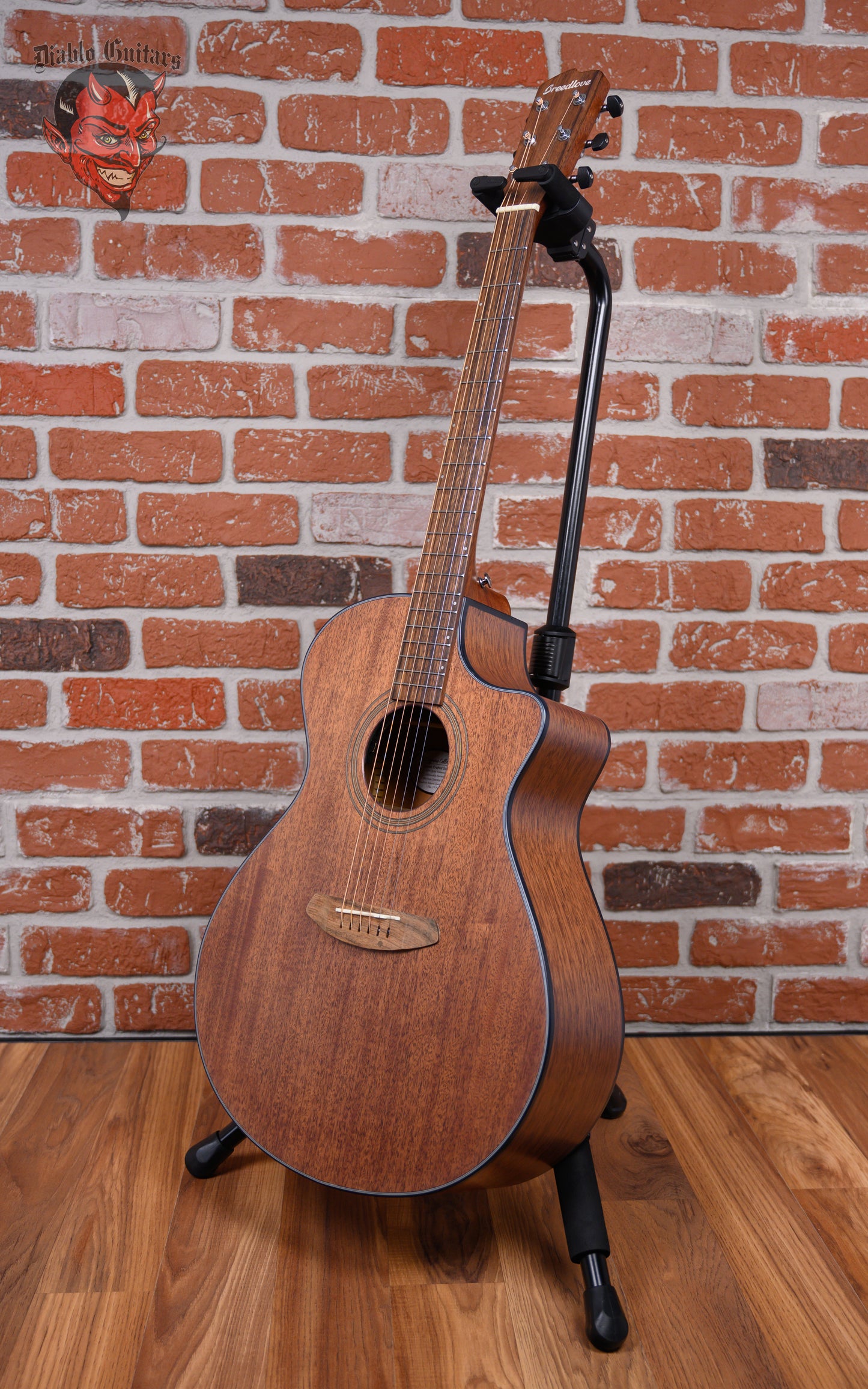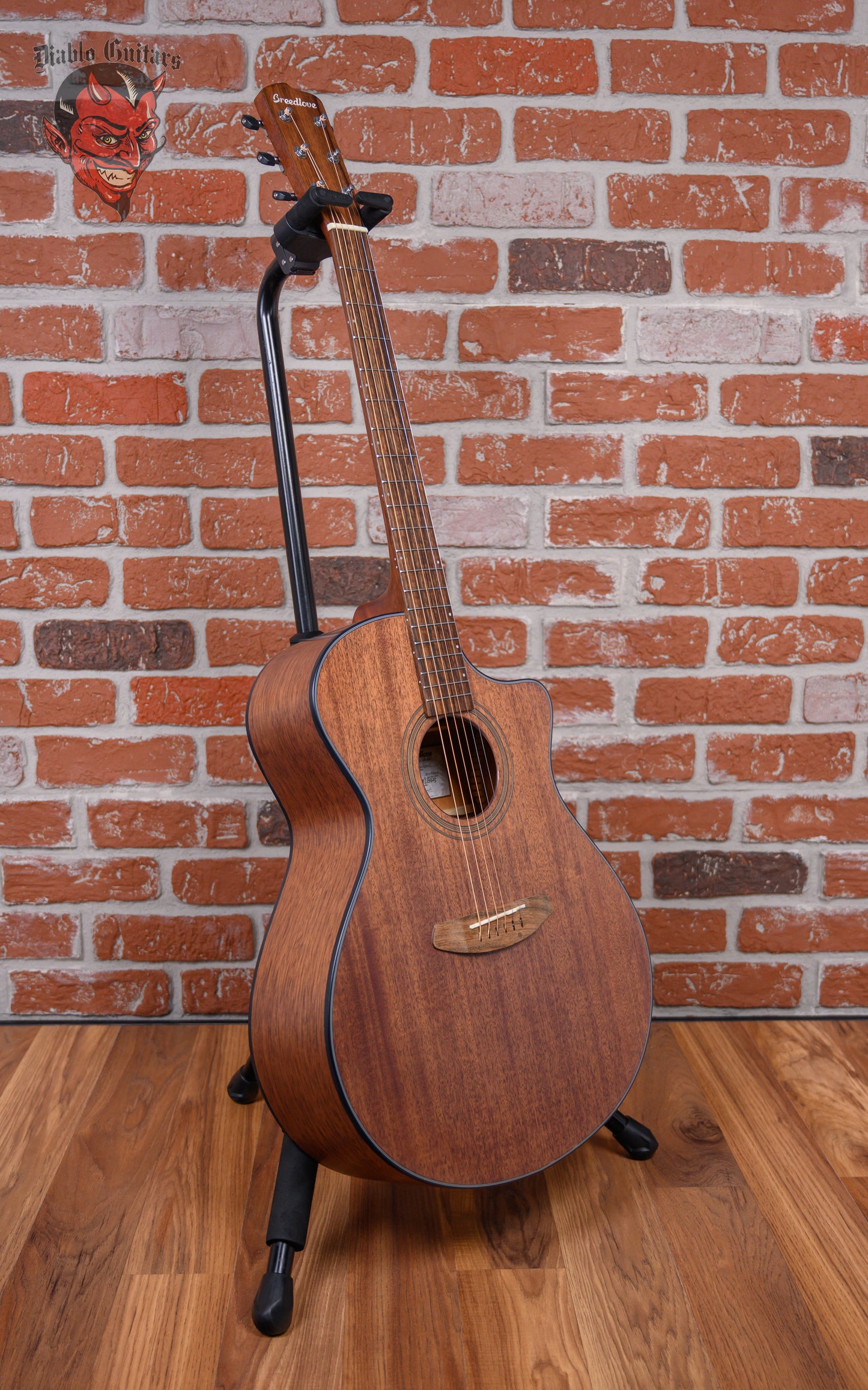 Breedlove Organic Collection Wildwood Concert in Natural finish made in 2020 with Gigbag. This acoustic/electric guitar features a double bound African mahogany back & sides body with an African mahogany top, African mahogany neck and Indian laurel fingerboard. Equipped with an undersaddle bridge Breedlove Natural Sound pickup, controlled by 1 volume dial & 1 tone dial. The 25.3" scale length neck has pearloid dot inlays and white side markers with 20 medium frets on a 16" radius with a slim D profile. The hardware is comprised of Breedlove sealed die-cast tuning machines with cloche heads, a bone nut and an Indian Laurel base bridge w/ compensated bone saddle.