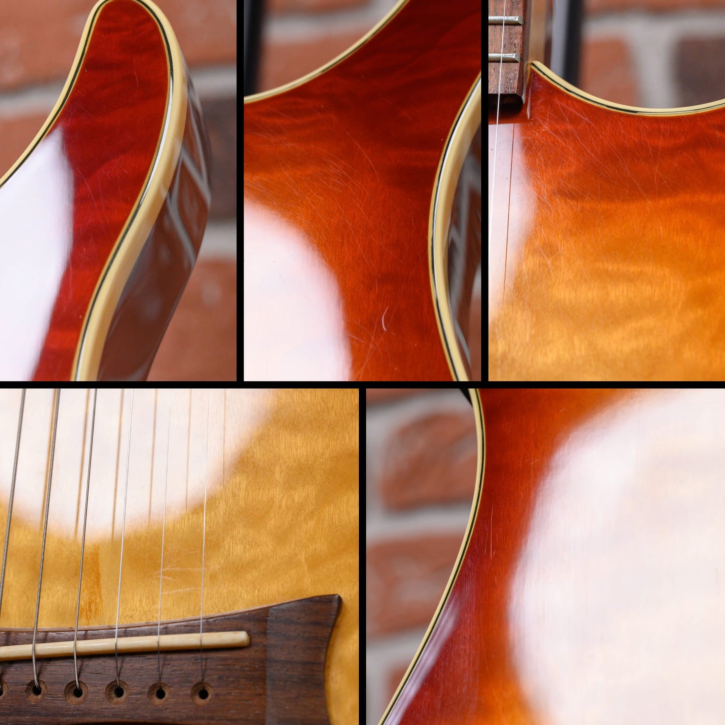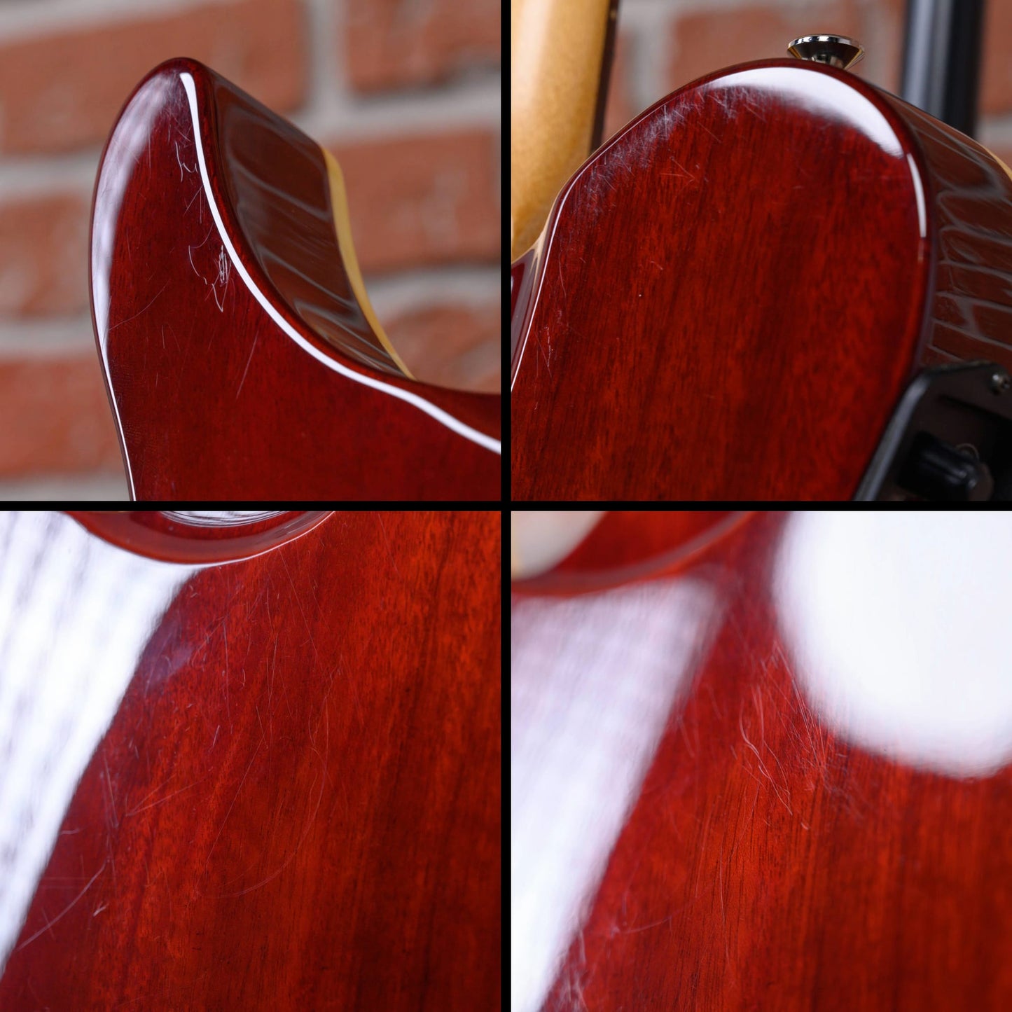 This guitar is in overall excellent condition. The body has light surface marks throughout that can be seen in direct light. There are a few scratches on the top near the bridge. There are some light marks on the treble side of the fretboard. Some of the tuners have marks on the casing and the heads show wear. (See pics)
