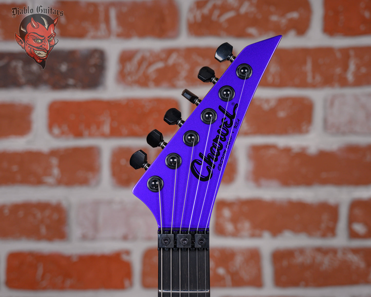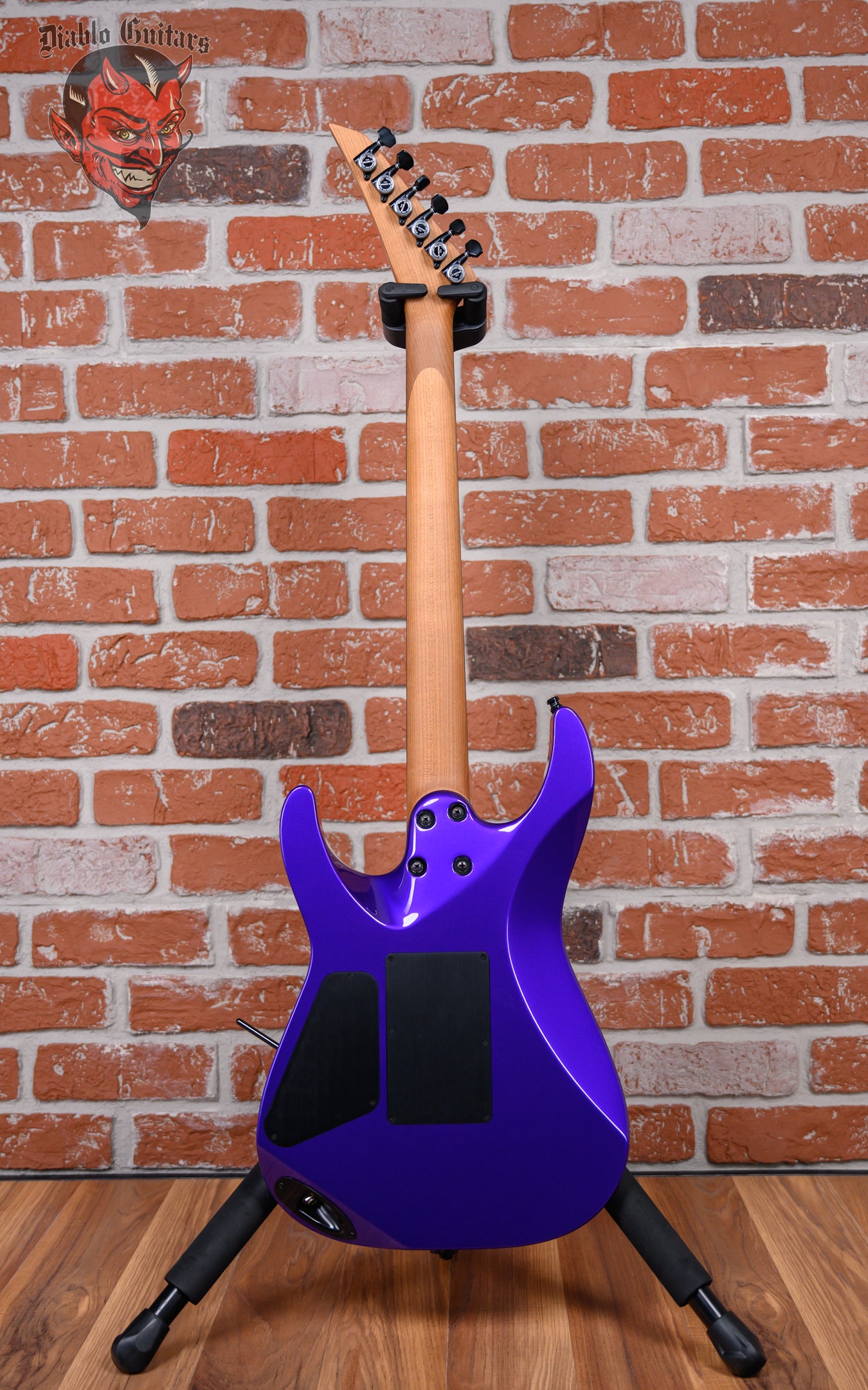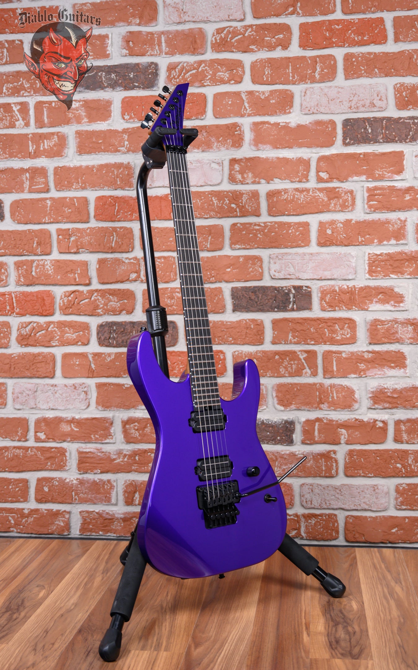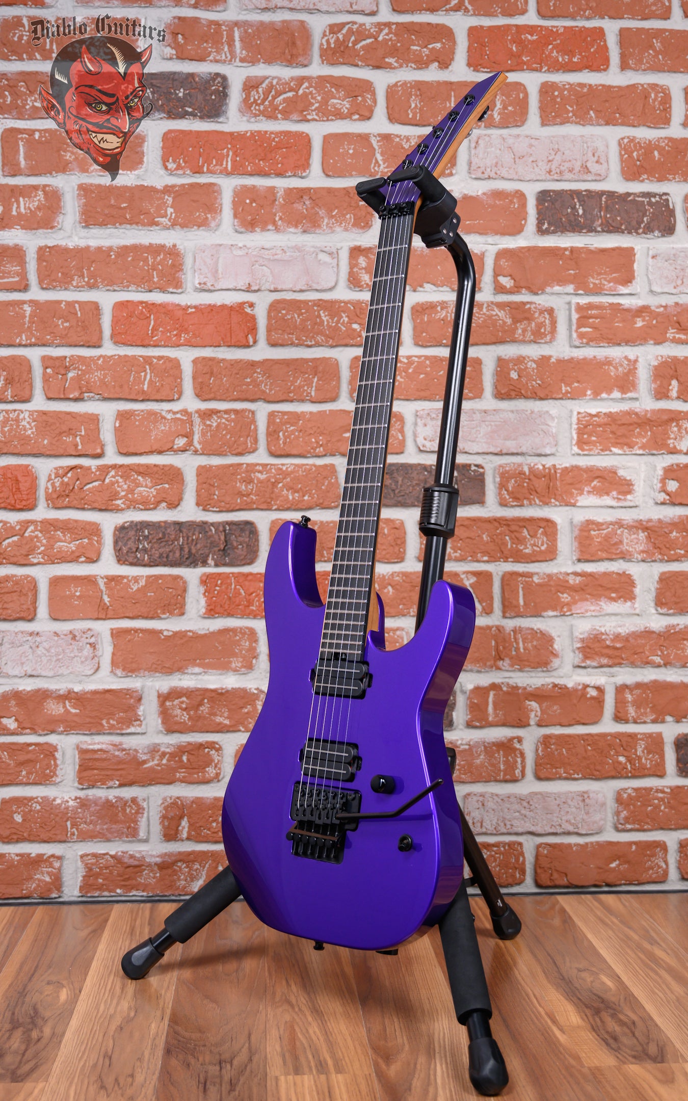 New Charvel USA Custom Shop Special Edition DK24 in Purple Metallic finish made in 2025. This guitar features a solid premium alder body, caramelized quartersawn maple neck and ebony fingerboard with a bound, color matched headstock with toothpaste logo. Equipped with a Seymour Duncan Jazz Rails in the neck position and a Seymour Duncan JB Rails in the bridge position. Controlled by one master volume pot and a 3-Way toggle switch. The 25.5" scale length neck has no inlays, luminlay blue side markers with 24 jumbo stainless steel frets on a compound 12"-16" radius with a speed profile. The hardware is comprised of black Gotoh Magnum Lock-Trad tuning machines with cloche heads, a Floyd Rose Locking nut, a Floyd Rose Original Double Locking Tremolo bridge with brass block and black knurled dome knob.