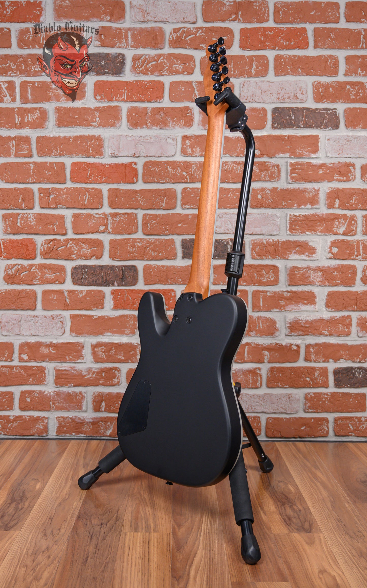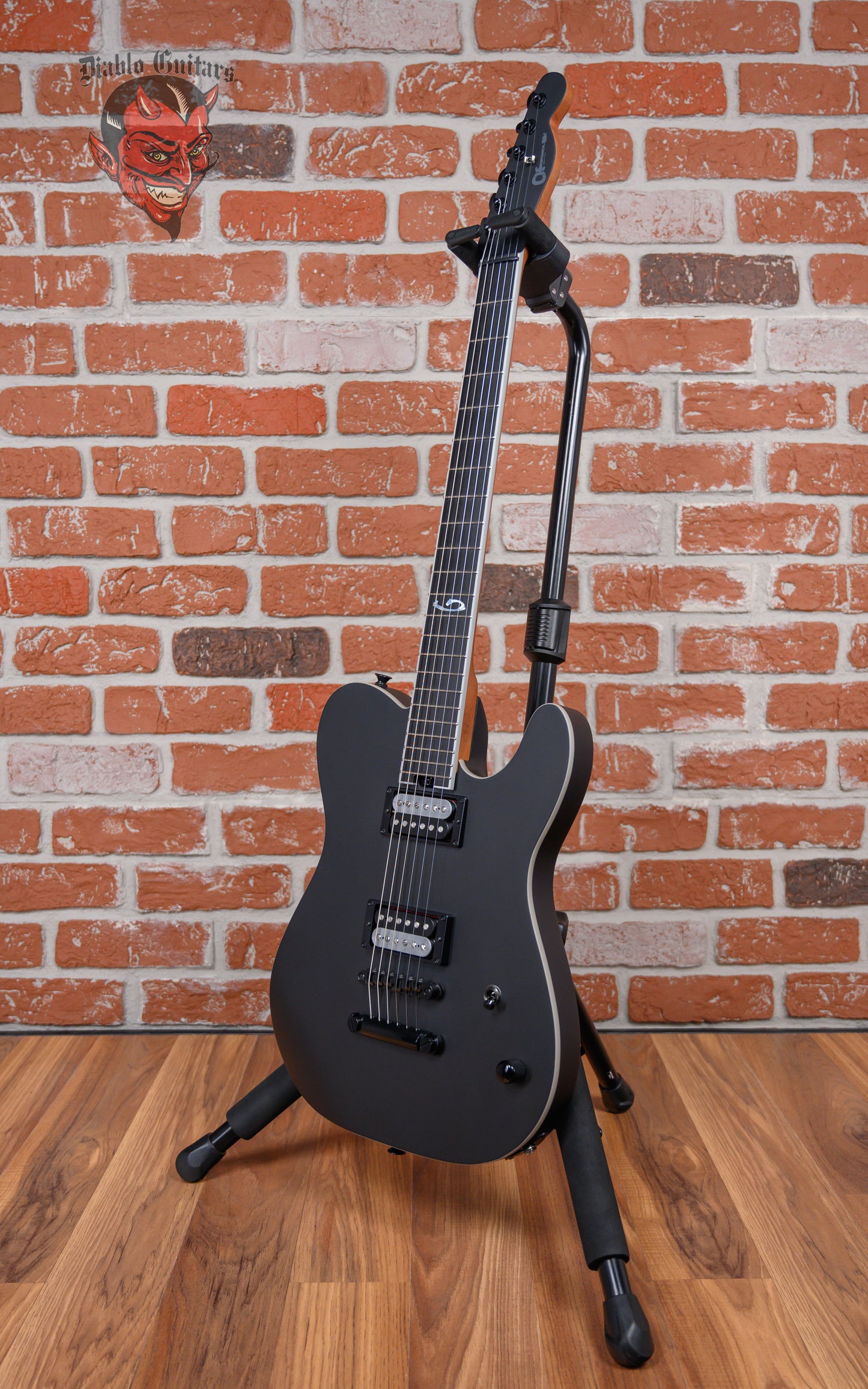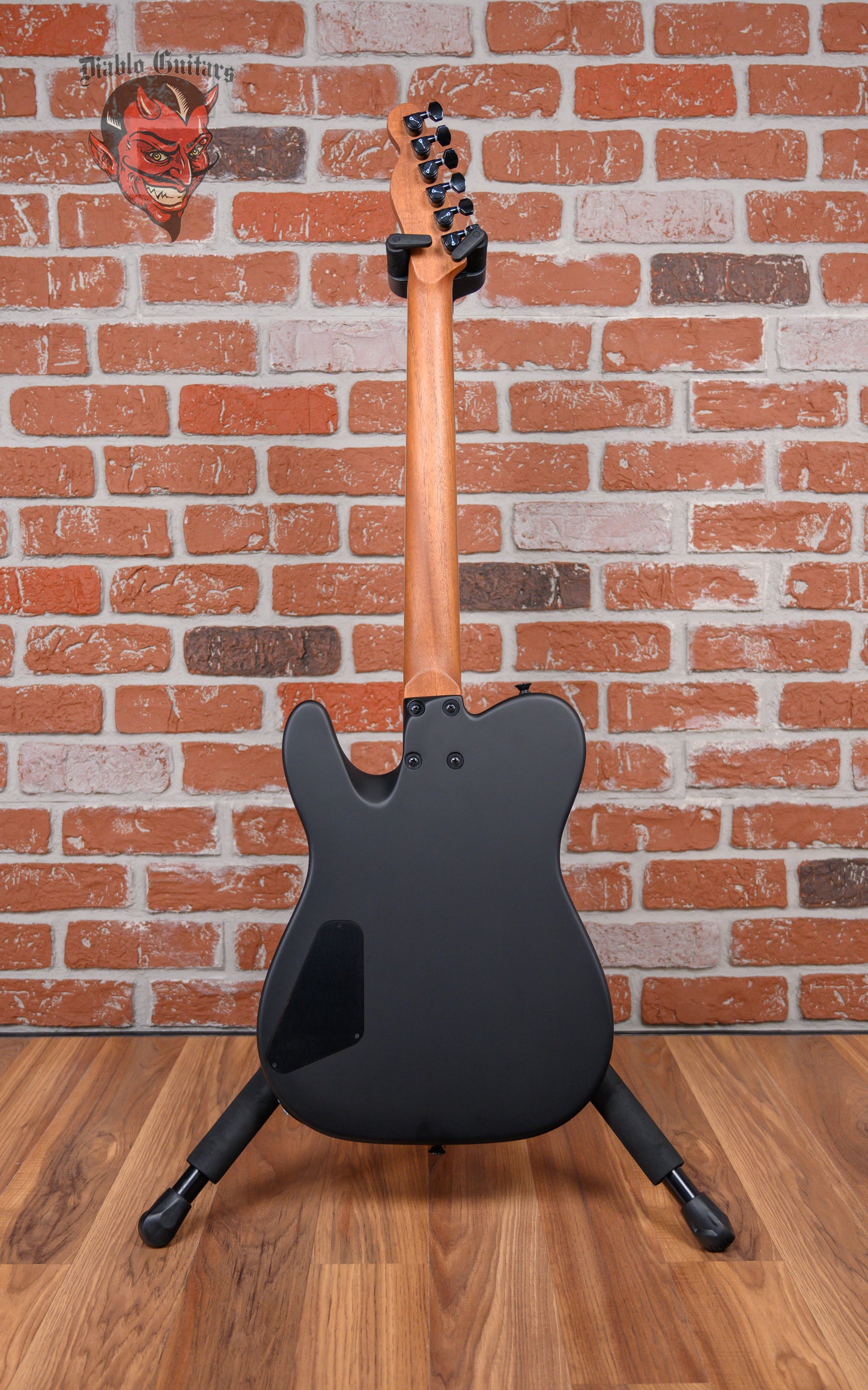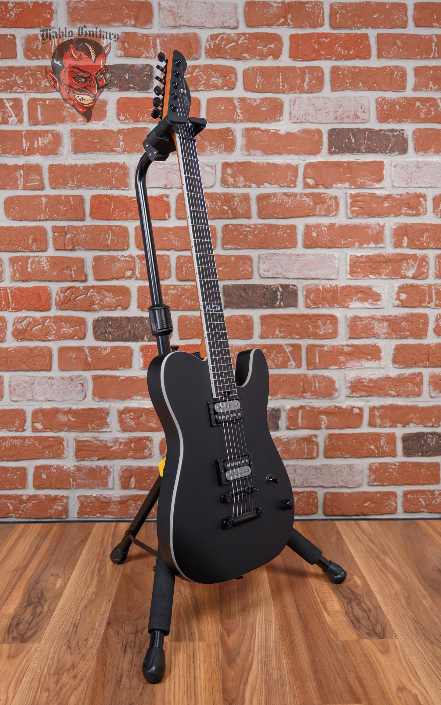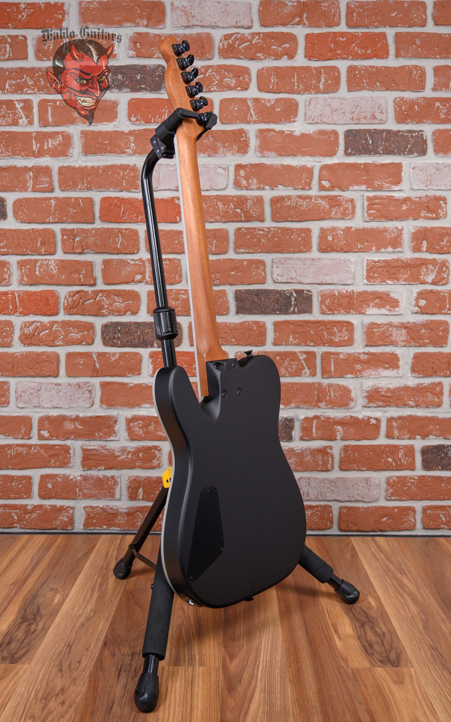 Charvel USA Joe Duplantier Signature San Dimas Style 2 in Flat Black finish made in 2023 with Original Hard Shell Case. This guitar features a bound solid mahogany body, mahogany neck and bound ebony fingerboard with a color matched headstock. Equipped with a pair of Charvel Custom MF Humbuckers in the neck and bridge positions. Controlled by one master volume pot and a 3-way toggle switch. The 25.5" scale length neck has a mother of pearl 12th fret Gojira "G" inlay and black side markers with 22 medium jumbo frets on a compound 12"-16" radius with a speed profile. The hardware is comprised of black Charvel sealed die-cast locking tuning machines with cloche heads, a Graph Tech TUSQ XL nut, a Tone Pros Tune-O-Matic bridge w/ Gotoh stop tailpiece and a black knurled dome knob.
