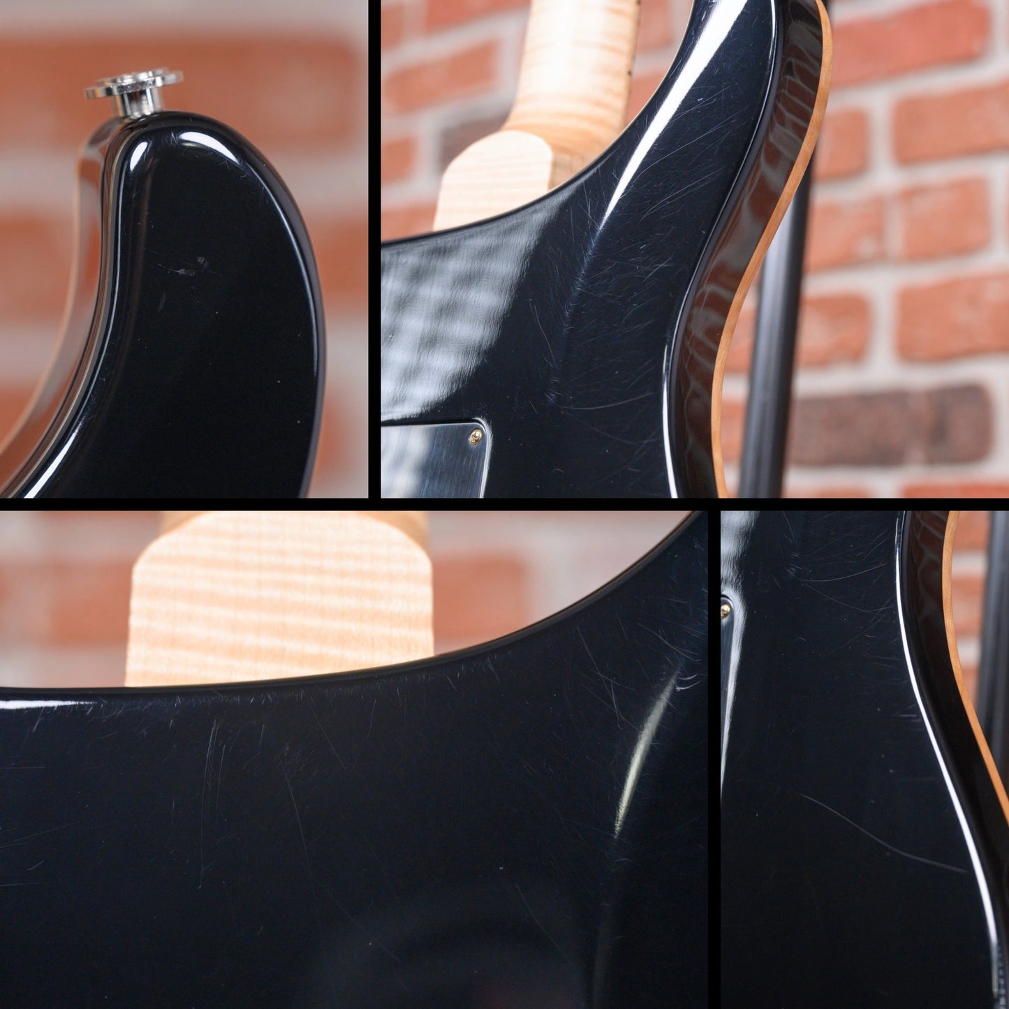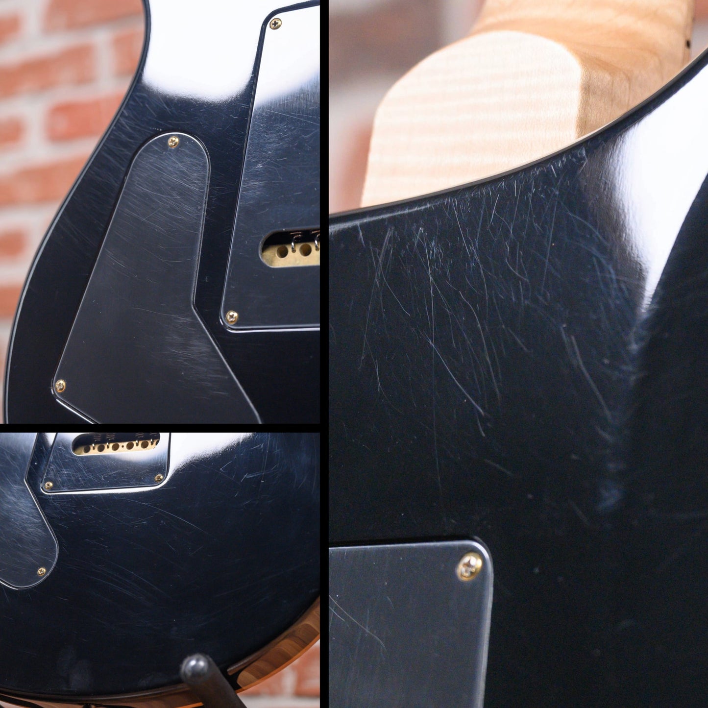This guitar is in overall excellent condition. The back of the body has light surface marks and some belt rash on the body and control covers. There are some light marks around the pickups and controls on the front. The sides have a few light marks. The plating on the bridge has oxidized on the bass side. (See Pics)