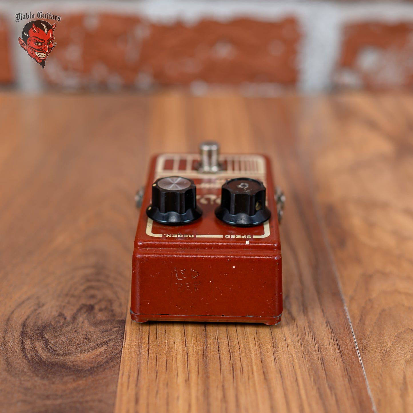 The DOD Phasor 490 is a classic phaser effects pedal that has been a staple for guitarists seeking rich, swirling modulation. Originally introduced in the 1970s, the Phasor 490 is renowned for its simple one-knob control that allows musicians to intuitively dial in the perfect phase effect for their sound. This pedal is designed to deliver warm, analog-style phasing by manipulating the phase of the input signal to create a sweeping, swirling effect. The single control knob adjusts the speed of the effect, making it easy to go from slow, subtle sweeps to fast, intense modulations.