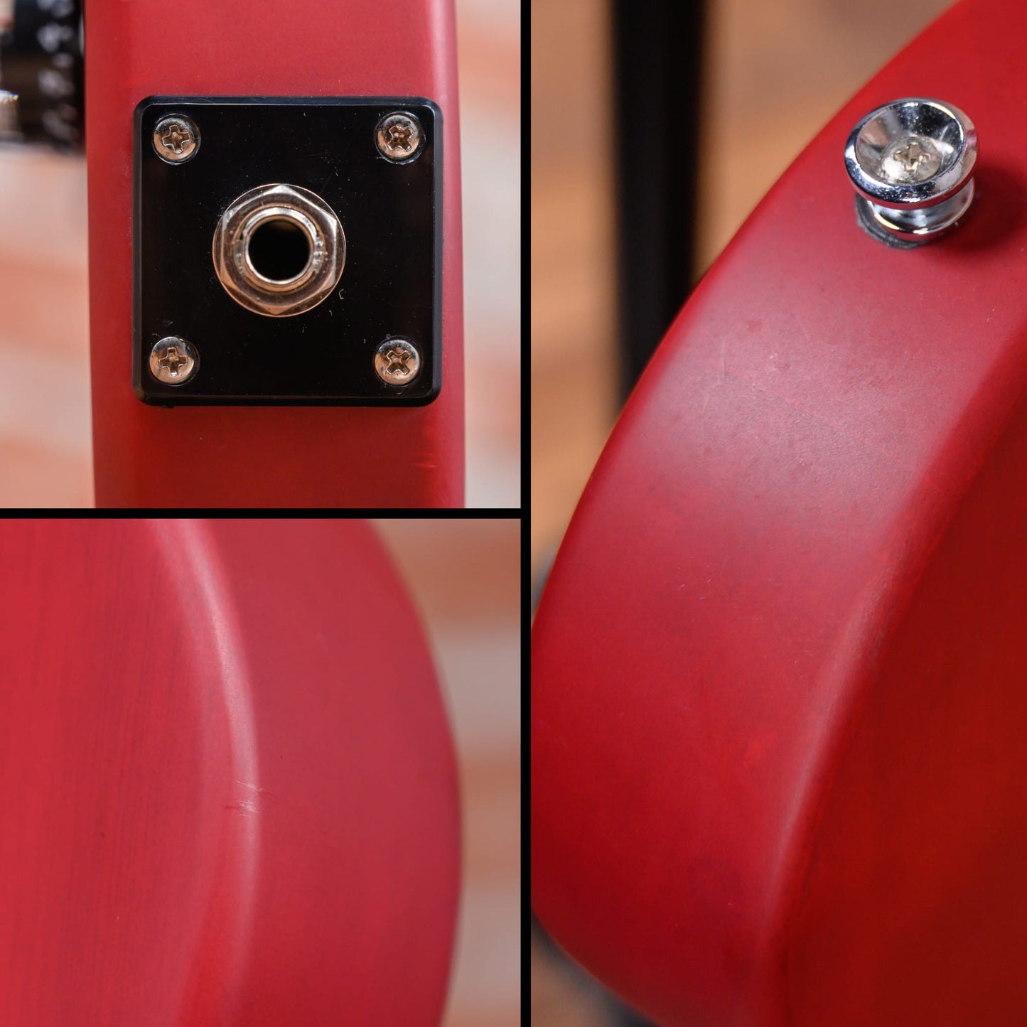 This guitar is in overall excellent condition. Some of the hardware shows surface marks and light pitting. There are some light surface marks on the corners and front of the body. The treble side of the fretboard has some light nicks on the edge near the 12th fret. (See pics)