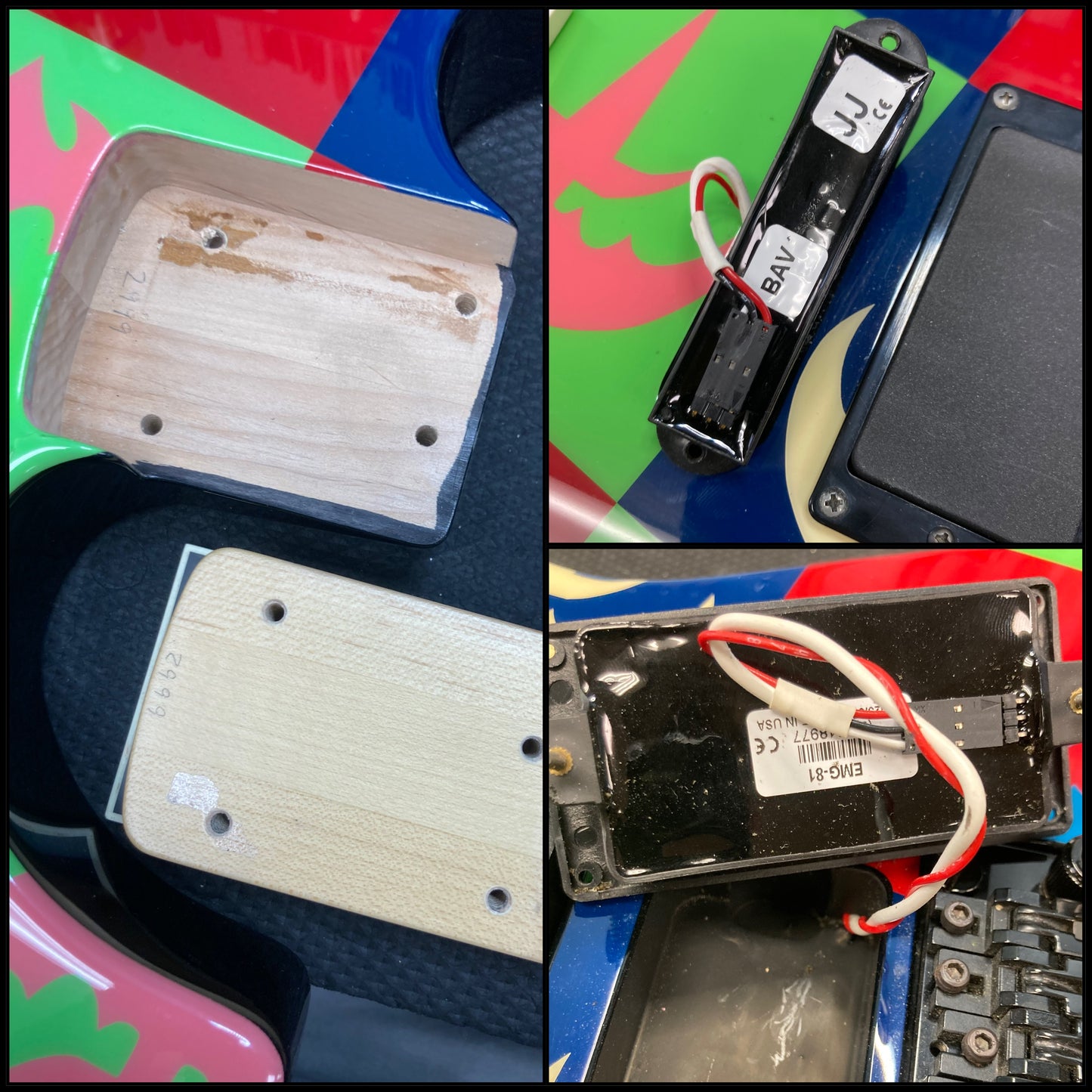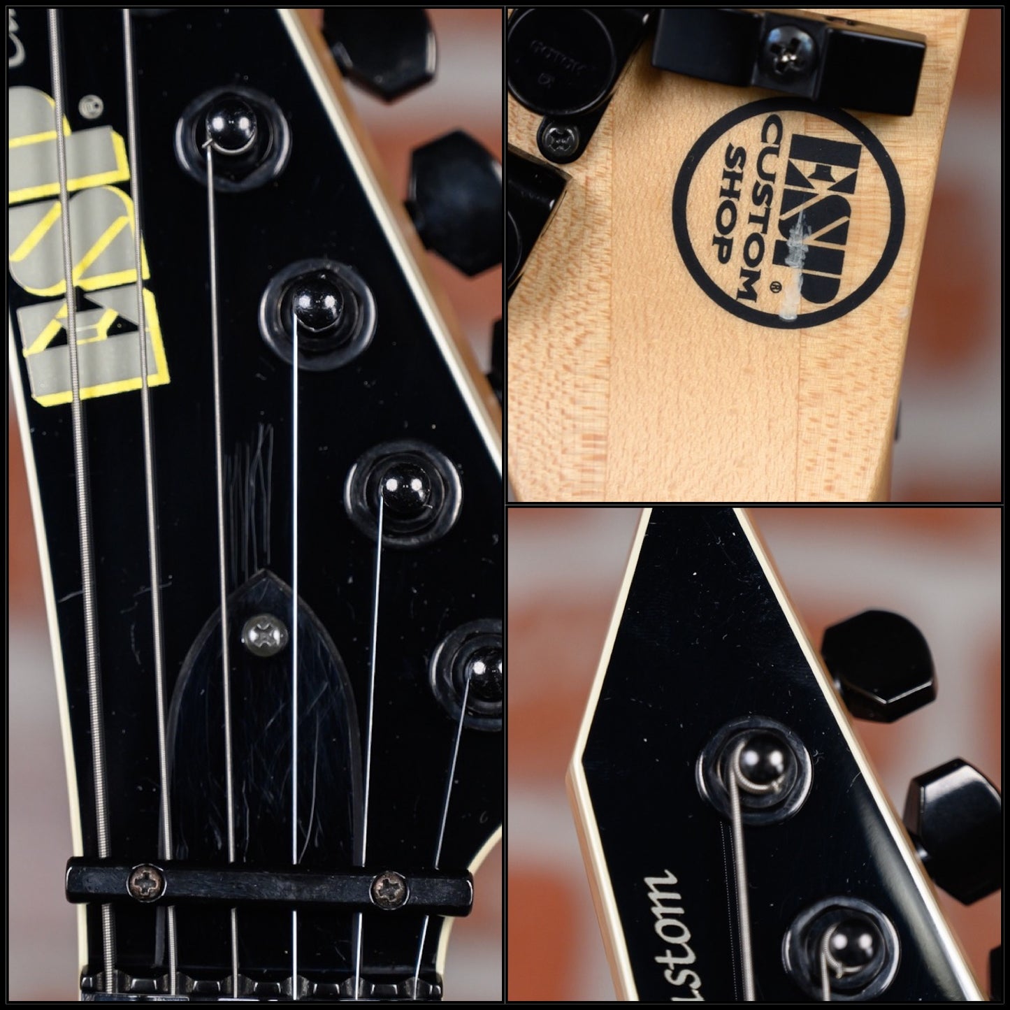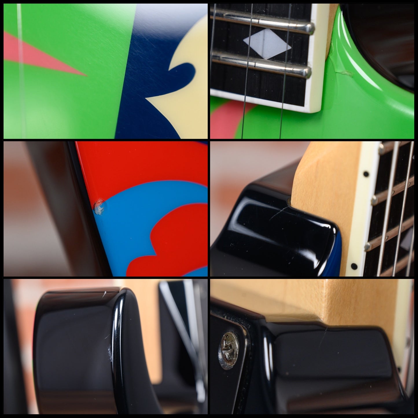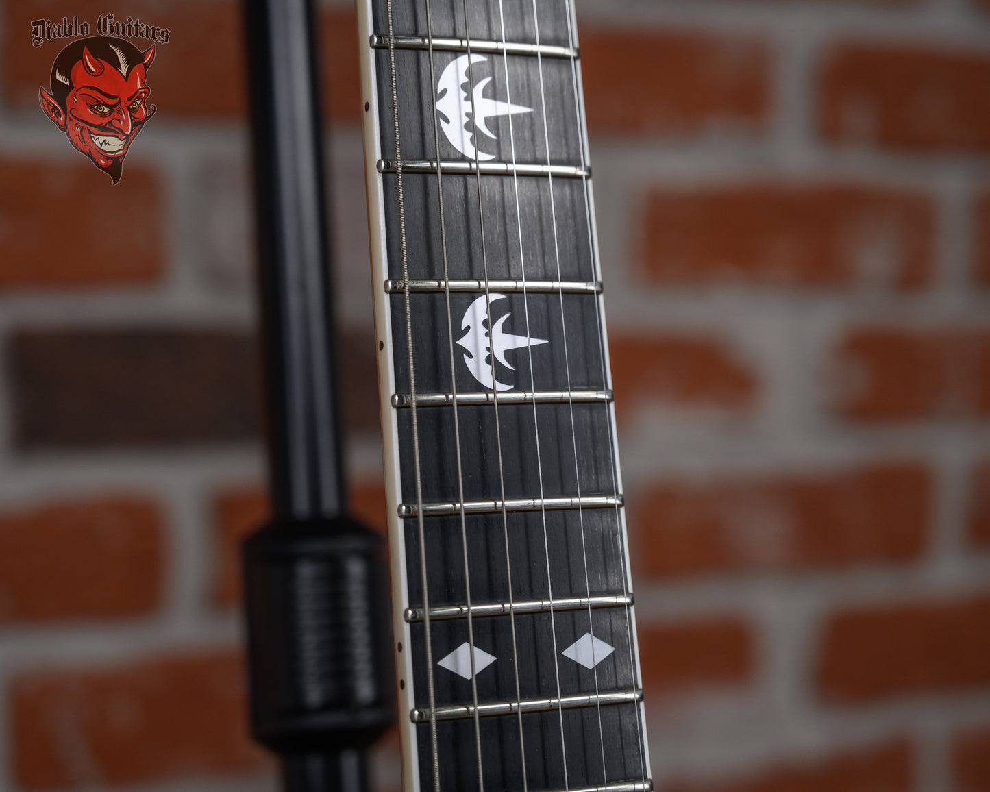 ESP Custom Shop Chris Degarmo Signature in Warhol Graphic finish made in 2005 with Original Hard Shell Case. This guitar features a solid alder body, 3-Piece maple neck and bound ebony fingerboard with a reverse, bound headstock. Equipped with a EMG SA in the middle position and a EMG 81 in the bridge position. Controlled by one master volume pot and a 3-Way toggle switch. The 25.5" scale length neck has mother of pearl triryche / diamond inlays and black side markers with extra jumbo frets on a 305mm radius with a extra thin U profile. The hardware is comprised of black Gotoh Sealed Die-Cast tuning machines with cloche heads, a Floyd Rose Locking nut, a Floyd Rose Original Double Locking Tremolo bridge and black knurled dome knob.