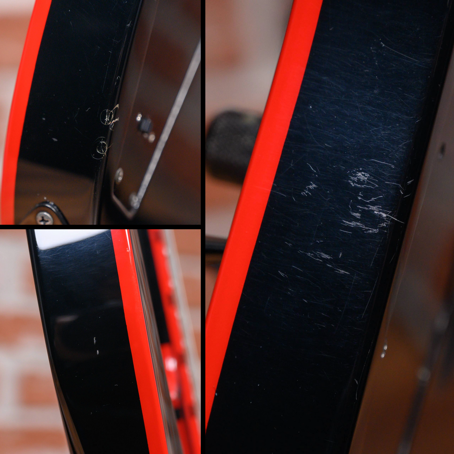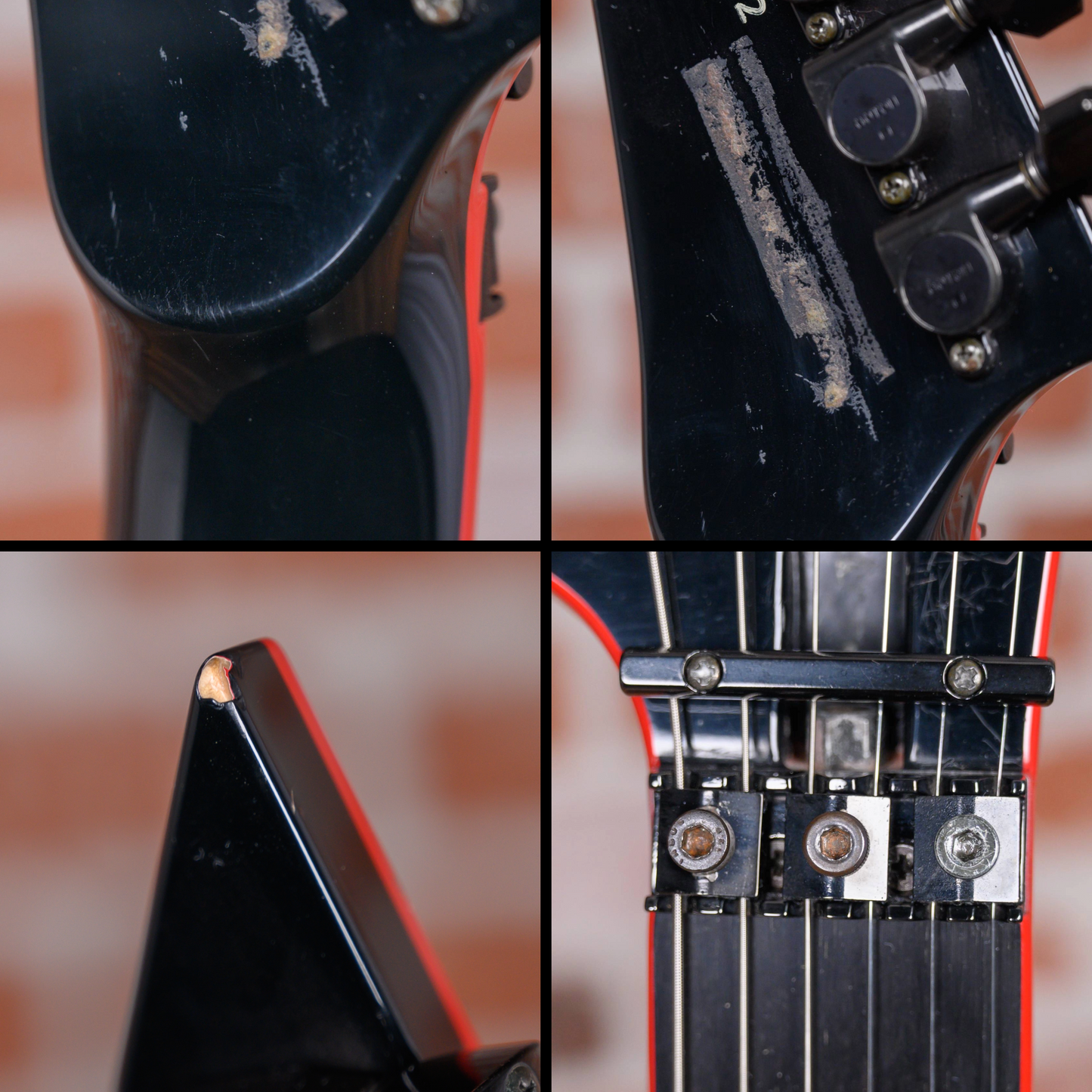 This guitar is in overall very good condition. The headstock has light surface marks throughout the front and back. There is a finish chip on the tip and there are marks from old adhesive on the back. The body has light surface marks throughout and buff marks. There are several small dings and dents on the front and back. The sides have some scuffs and dings on the corners. (See Pics)