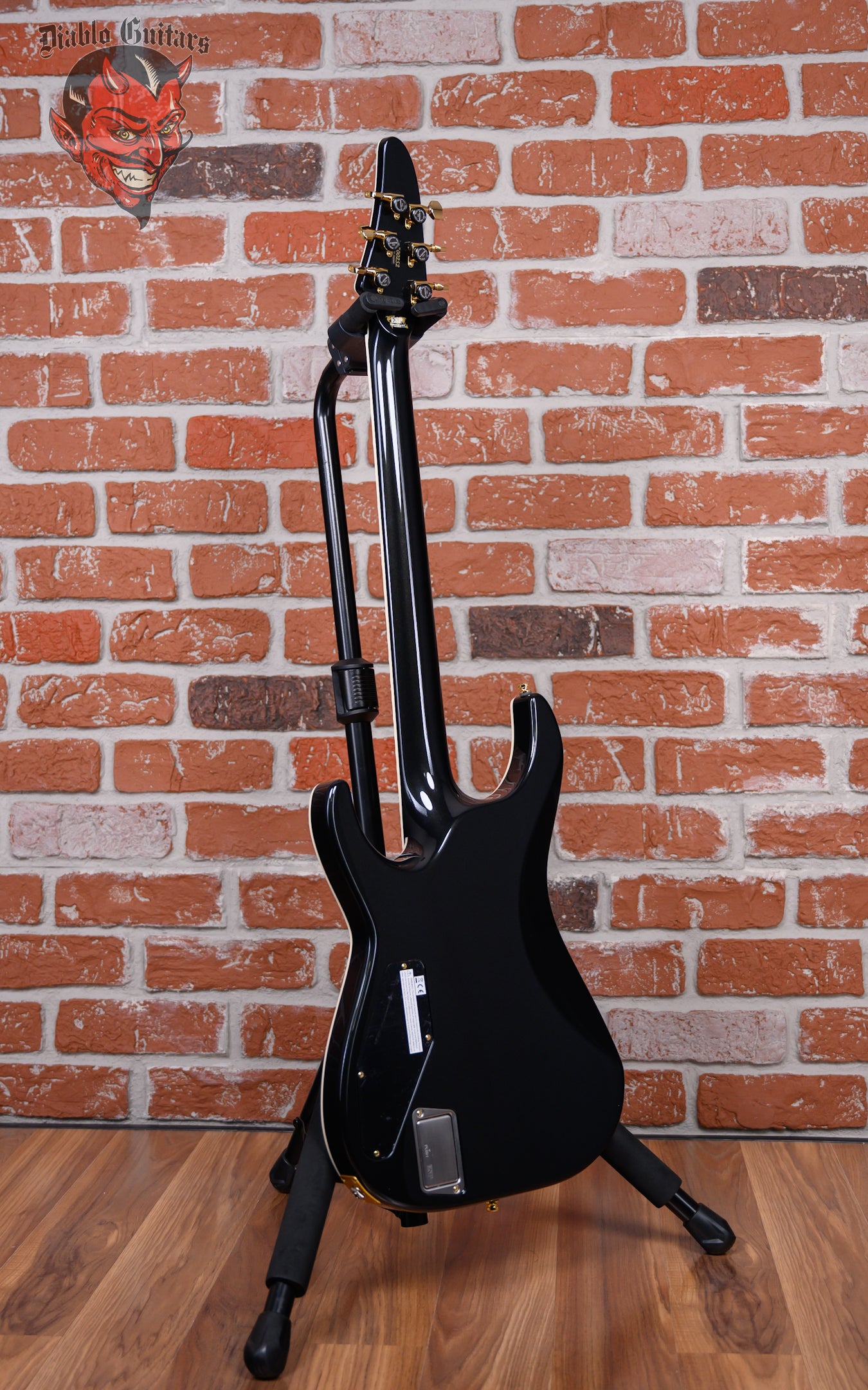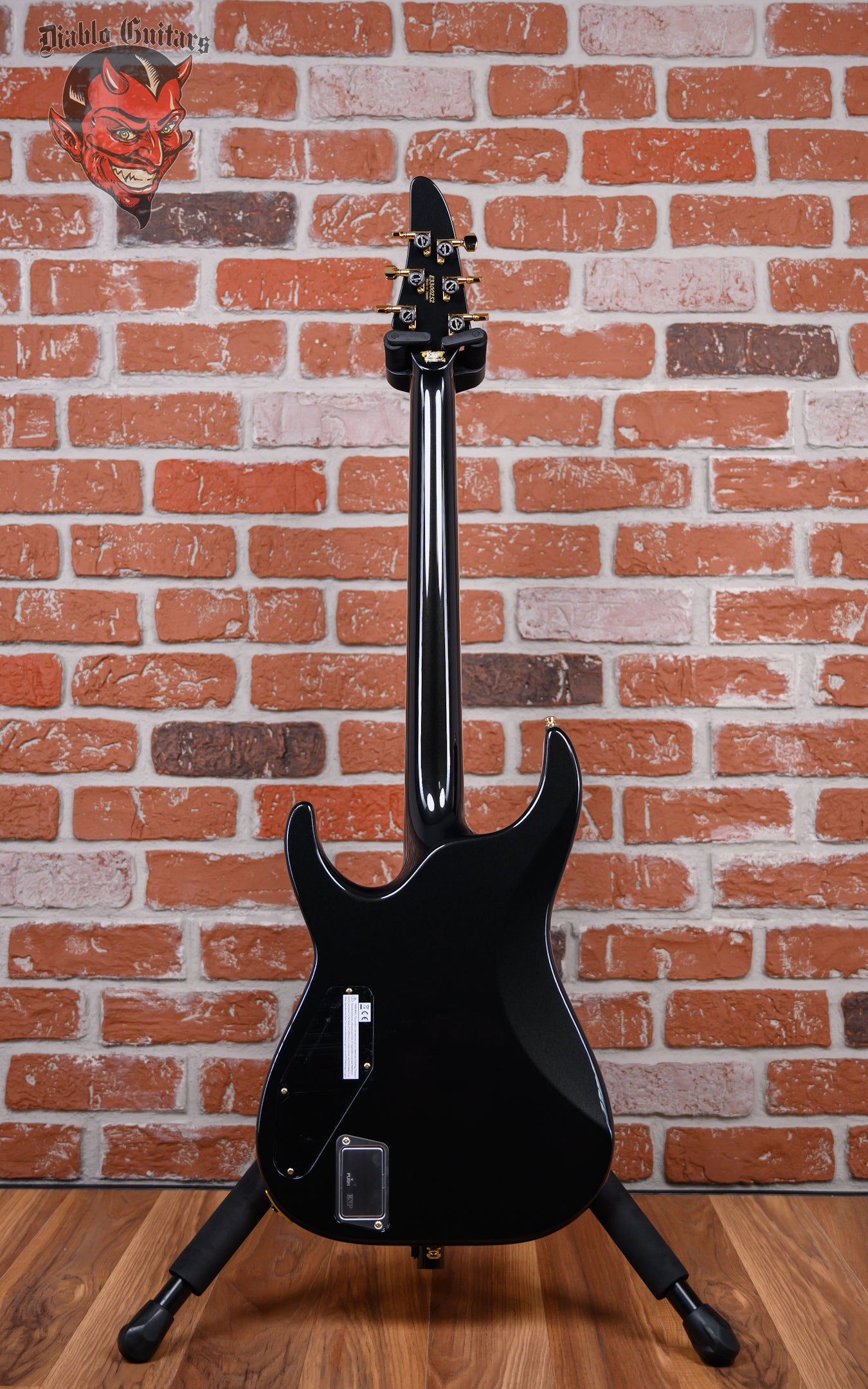 ESP Original Series Horizon PT/ NT in Obsidian finish made in 2025 with Original Hard Shell Case. This guitar features a Solid Mahogany body with a bound Maple top, 3-Piece Maple neck-thru and bound Ebony fingerboard with a Bound/Color Matched headstock. Equipped with a pair of brushed gold EMG Het Set humbuckers in the neck position and bridge position. Controlled by 1 Volume, 1 Tone pot and a 3-Way Toggle Switch. The 25.5" scale length neck has Mother of Pearl/ Recon Stone Double Stripes inlays and Luminlay side markers with 24 Extra Jumbo Stainless Steel frets on a 305mm radius with a Thin U profile. The hardware is comprised of Gold Gotoh Magnum Lock-Trad tuning machines with Cloche heads, a Carbon Fiber nut, a Tone Pros Tone Pros T3BT bridge with Gotoh 510FA tailpiece and Gold Knurled Dome knobs.