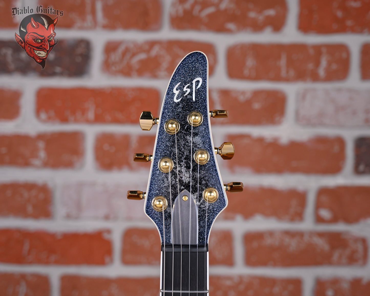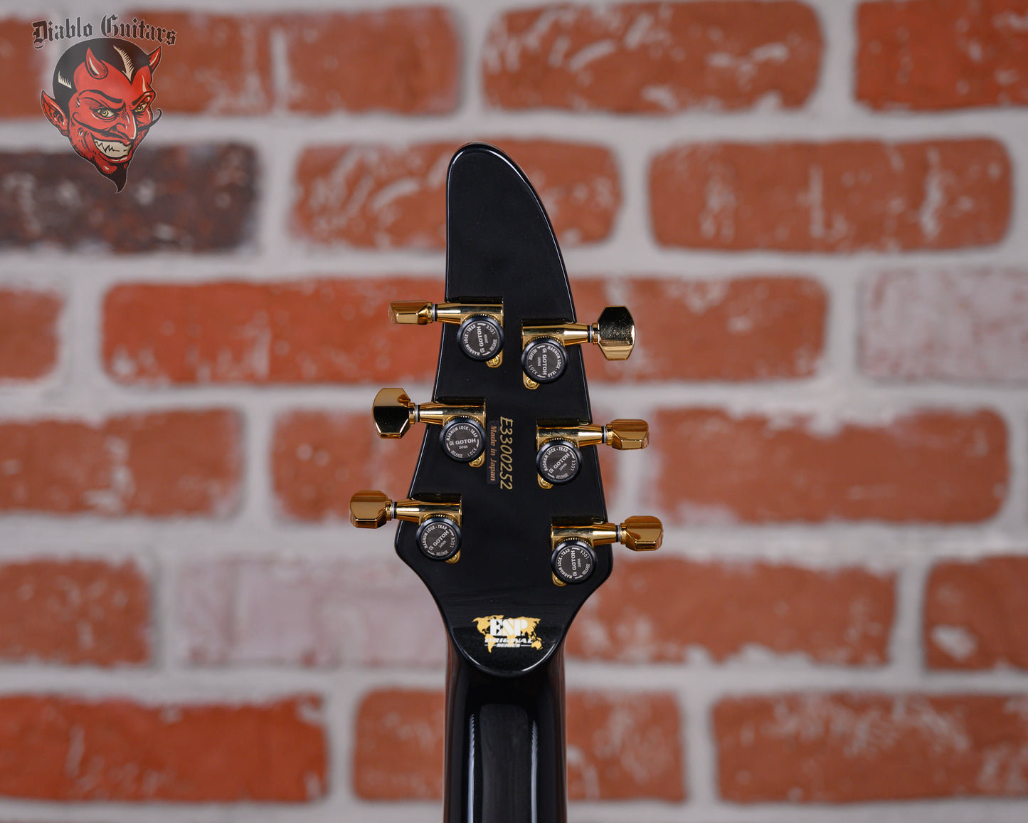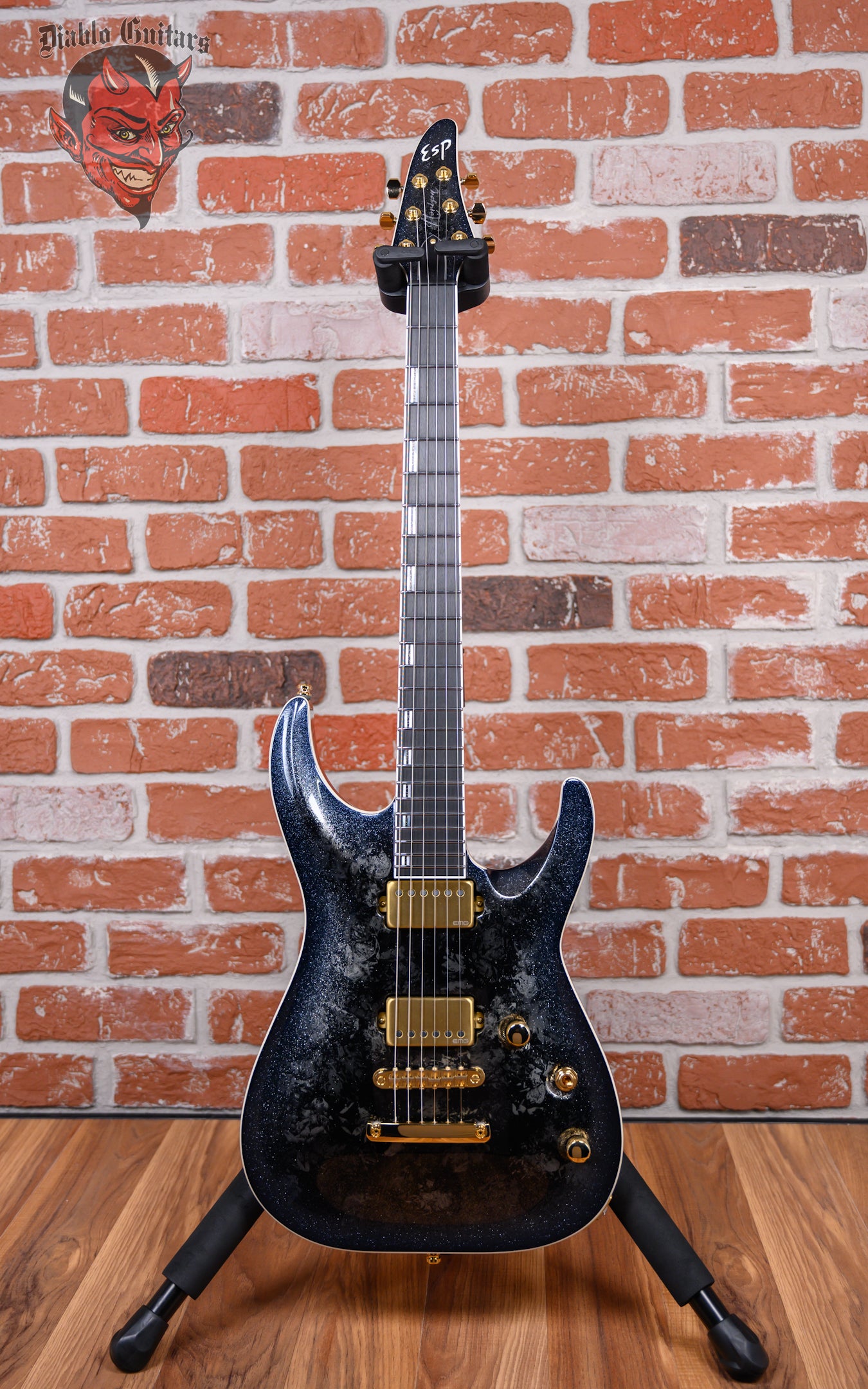 Regular price $6,030.00ESP Original Series Horizon PT/ NT in Obsidian finish made in 2025 with Original Hard Shell Case. This guitar features a Solid Mahogany body with a bound Maple top, 3-Piece Maple neck-thru and bound Ebony fingerboard with a Bound/Color Matched headstock. Equipped with a pair of brushed gold EMG Het Set humbuckers in the neck position and bridge position. Controlled by 1 Volume, 1 Tone pot and a 3-Way Toggle Switch. The 25.5" scale length neck has Mother of Pearl/ Recon Stone Double Stripes inlays and Luminlay side markers with 24 Extra Jumbo Stainless Steel frets on a 305mm radius with a Thin U profile. The hardware is comprised of Gold Gotoh Magnum Lock-Trad tuning machines with Cloche heads, a Carbon Fiber nut, a Tone Pros Tone Pros T3BT bridge with Gotoh 510FA tailpiece and Gold Knurled Dome knobs.