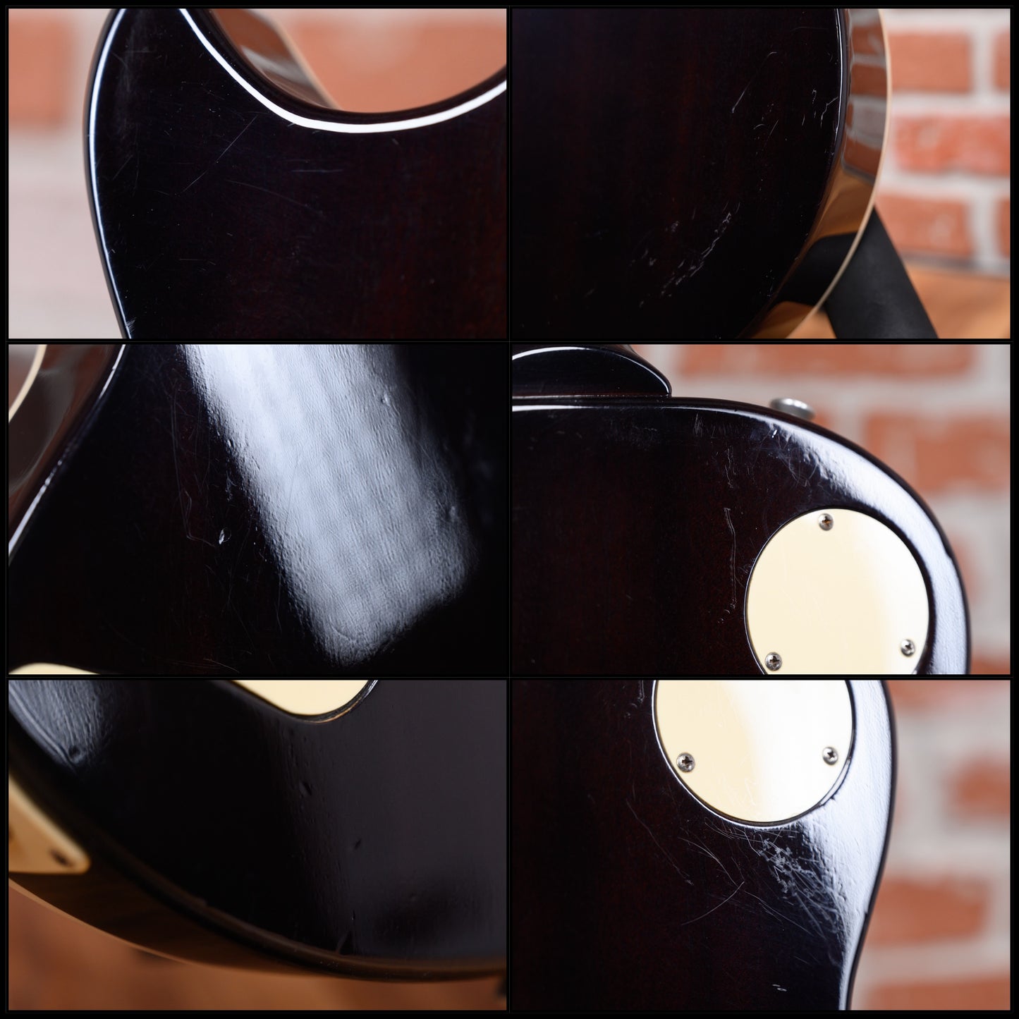This guitar is in overall very good condition with some visible signs of play. It has some surface, marks, some light scratches, and some dings, light dents and dimples on its body and back of neck. The input jacks plastic plate as some stress splits in it but in one piece. The top headstock edge has some small nics and small chips.(See Pics)