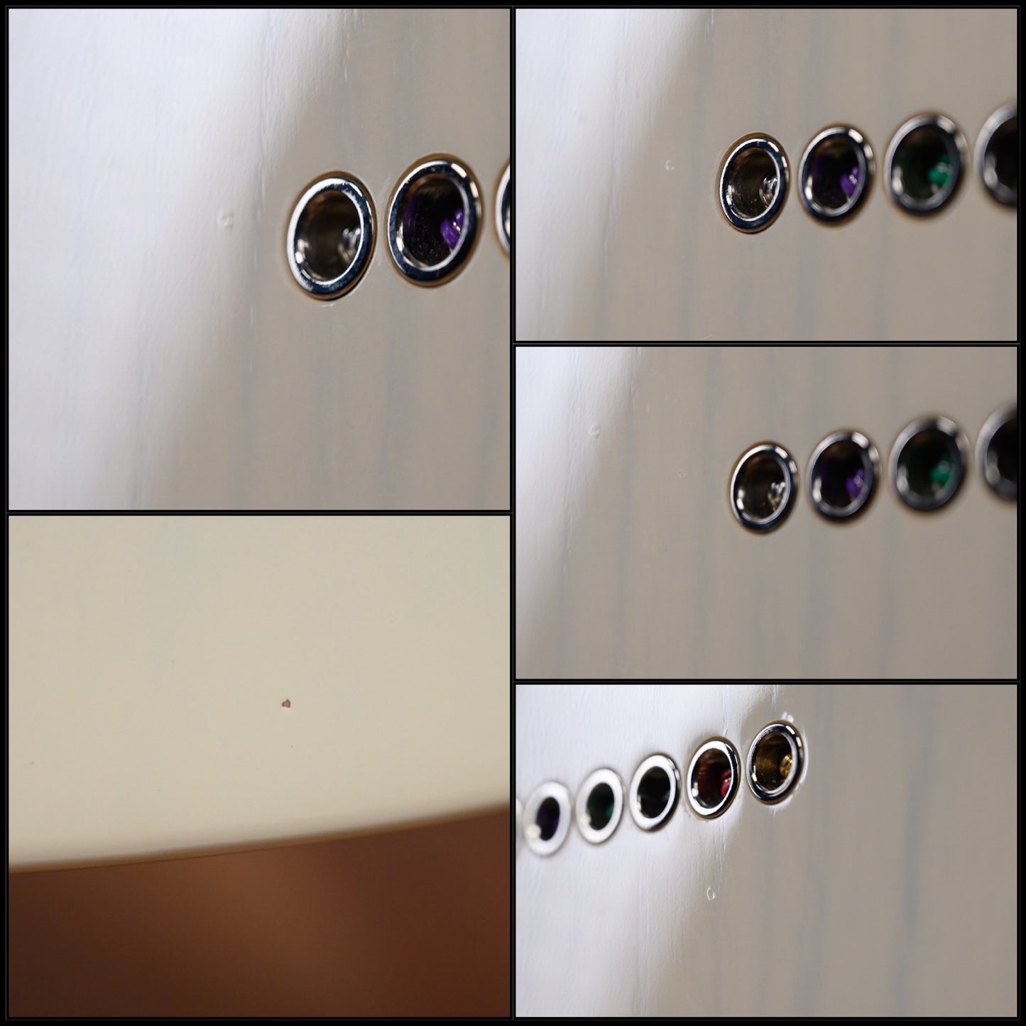 This guitar is in overall very good condition with some signs of play. It has some light marks, very light dings. Dimples in the finish you can see under direct light. It has a few mall finish chips on the body, one appears from the Neck plate being over tightened at some point in its life and the plate is slightly buckled. One case latch is missing its loop.(See Pics)