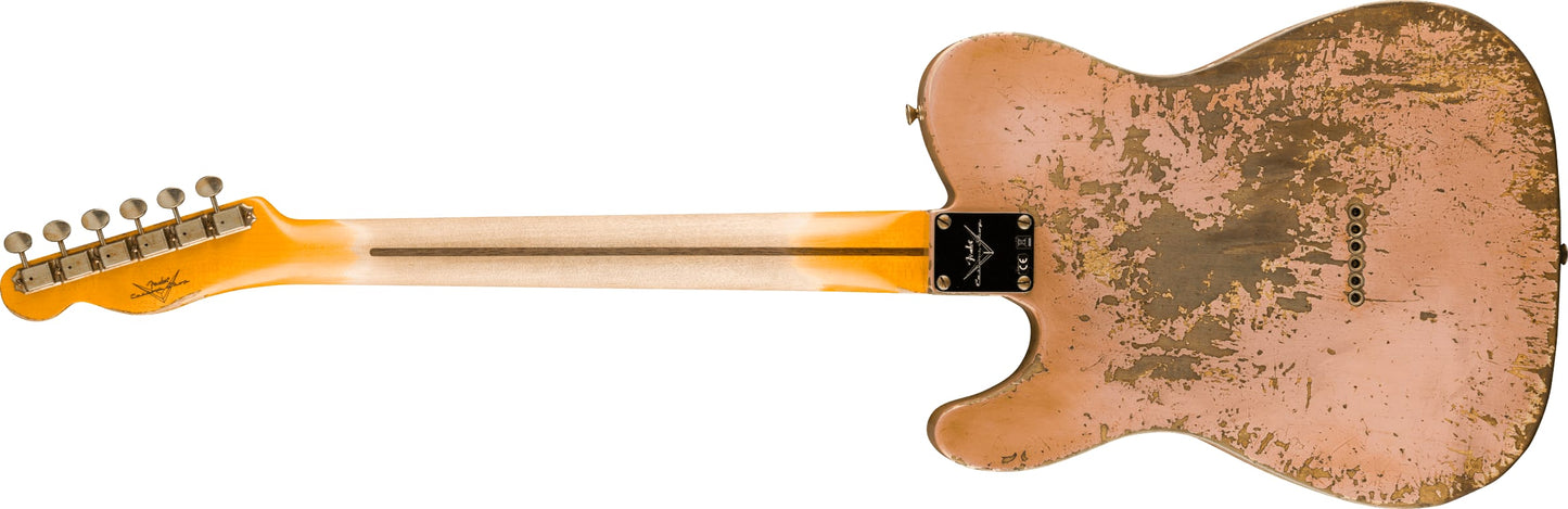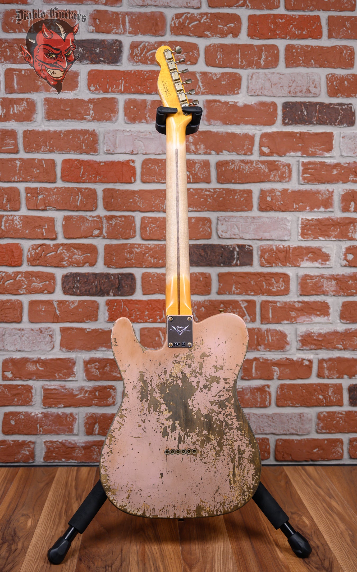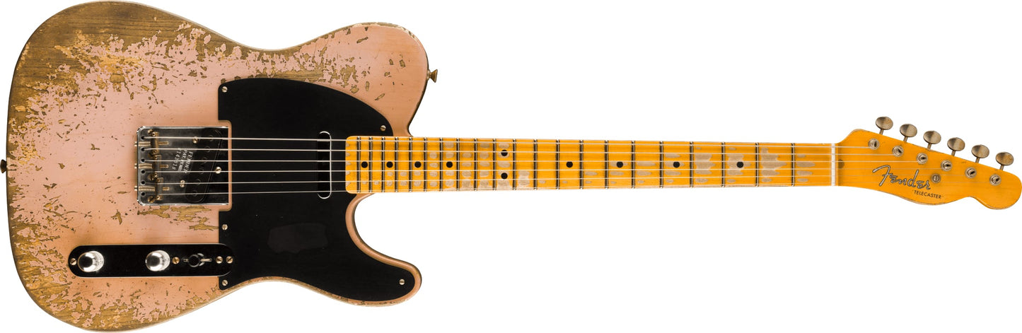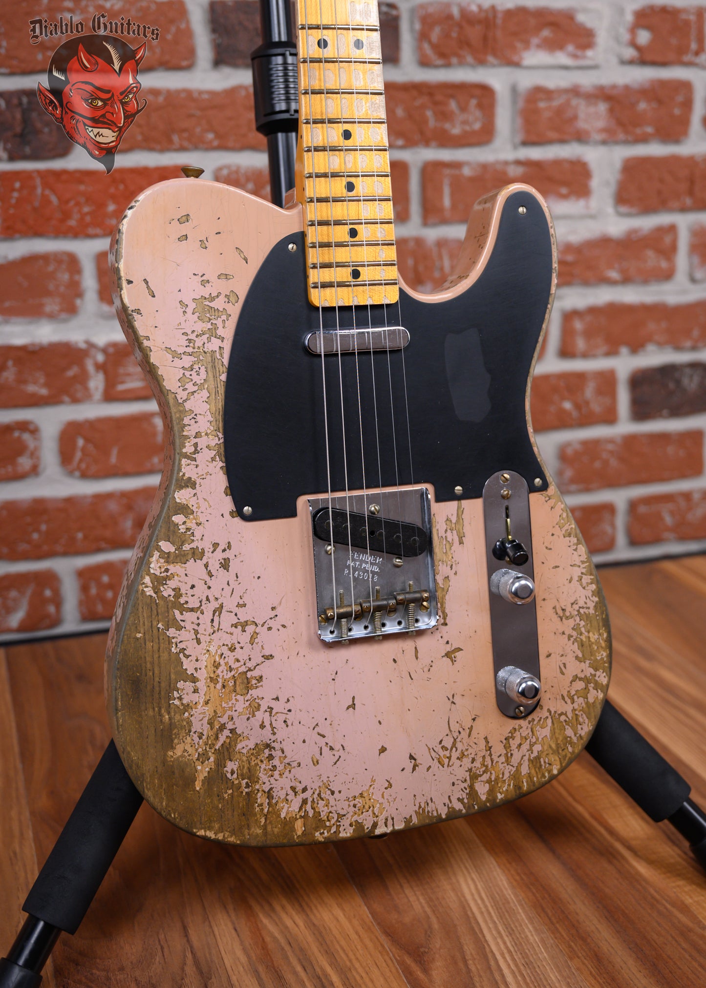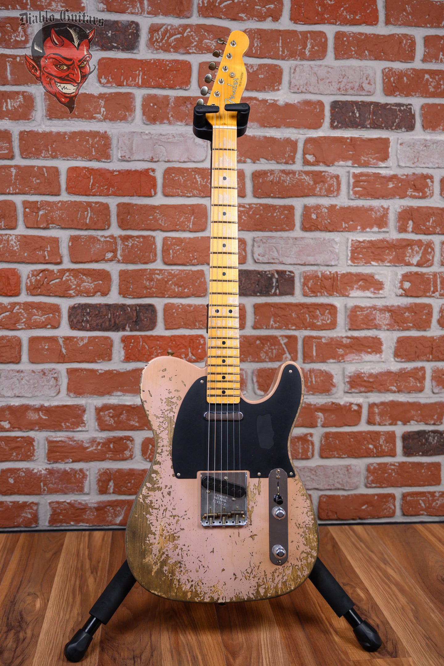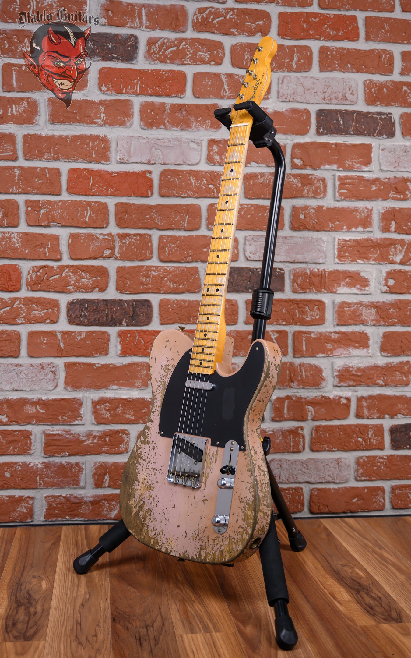 New Fender Custom Shop SR25 ‘52 Telecaster Super Heavy Relic in Aged Dirty Shell Pink finish made in 2025 with Original Hard Shell Case. This guitar features a solid ash body, quartersawn maple neck and maple fingerboard. Equipped with a pair of Fender custom shop Hand-Wound '50-'51 blackguard single coils in the neck position and bridge position. Controlled by 1 volume, 1 tone pot and a 3-Way blade switch in ‘51 mod Nocaster wiring. The 25.5" scale length neck has black micarta dot inlays and black micarta side markers with 21 narrow tall 6105 frets on a 9.5" radius with a soft ‘57 ‘V' profile. The hardware is comprised of aged nickel/chrome Fender Vintage-Style logo tuning machines with oval heads, a bone nut, a Fender 3-Saddle american vintage Strings-Through-Body tele bridge with brass saddles and chrome knurled dome knobs with a 1-Ply black 51 nocaster relic pickguard.
