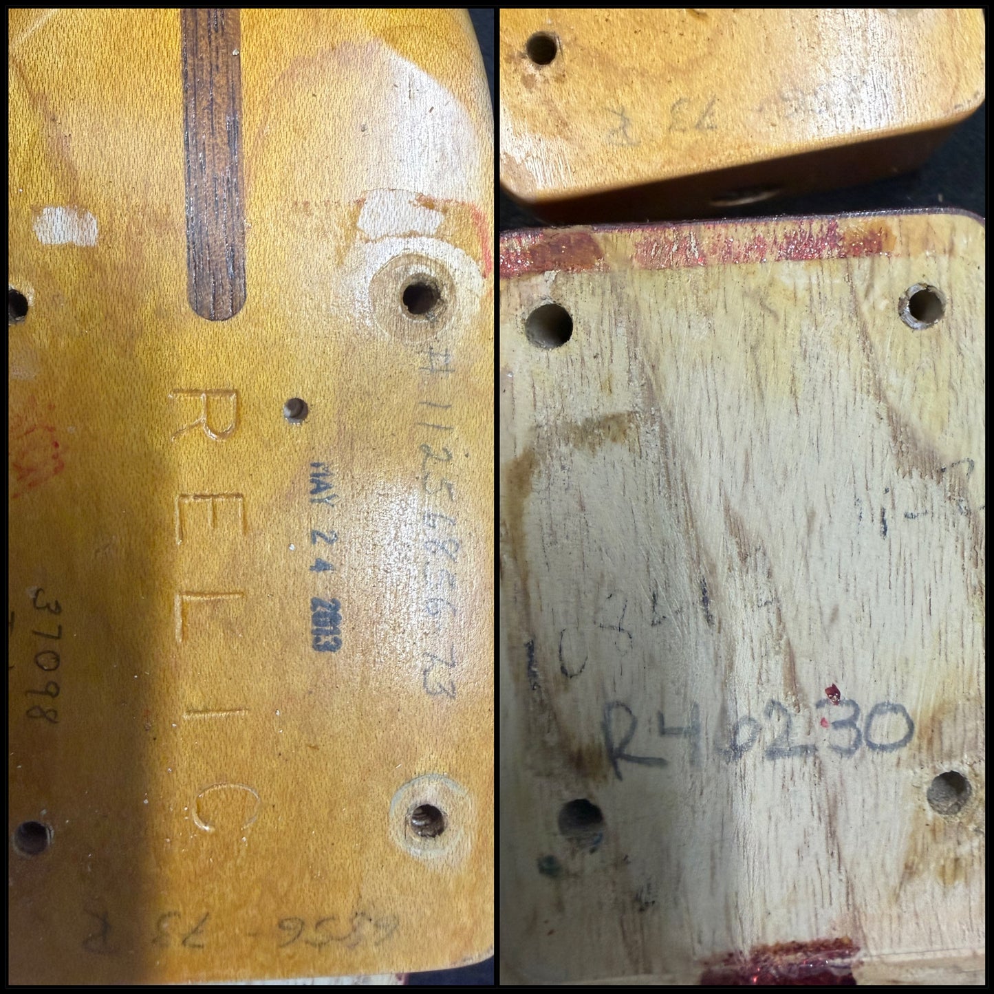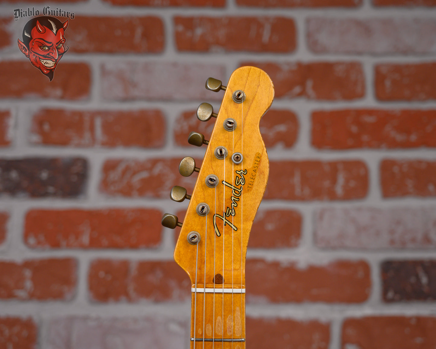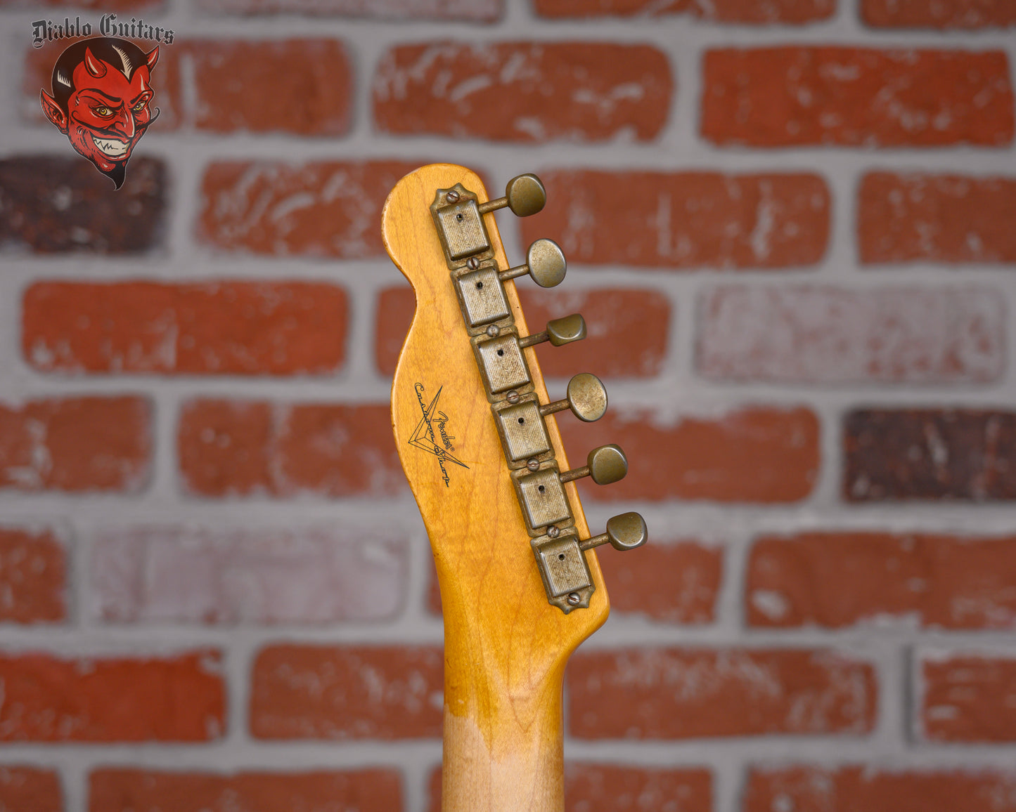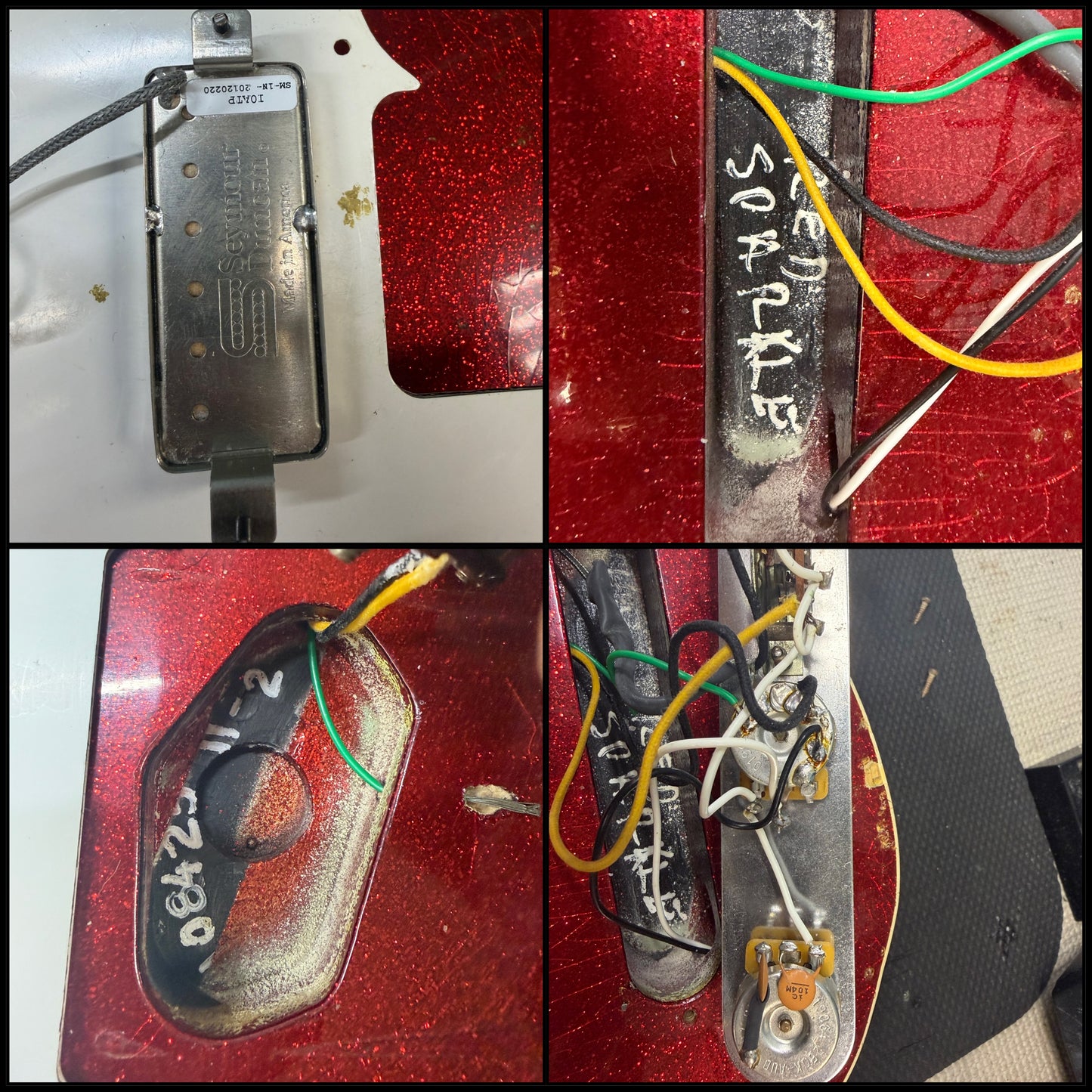 Fender Custom Shop Telecaster Relic in Red Sparkle finish made in 2013 with Original Hard Shell Case. This guitar features a bound solid ash body, quartersawn maple neck and maple fingerboard. Equipped with a Seymour Duncan SM-1N Vintage Mini Humbucker in the neck position and a Fender Handwound ‘63 Telecaster single coil in the bridge position. Controlled by 1 volume, 1 tone pot and a 3-Way blade switch. The 25.5" scale length neck has micarta black dot inlays and black side markers with 21 6105 narrow tall frets on a 9.5" radius with a 52 Style "U" profile. The hardware is comprised of aged nickel/ Aged chrome Fender Vintage Style tuning machines with oval heads, a bone nut, a Fender Custom Deluxe Tele bridge and chrome knurled flat top knobs with a 3-Ply white pickguard.