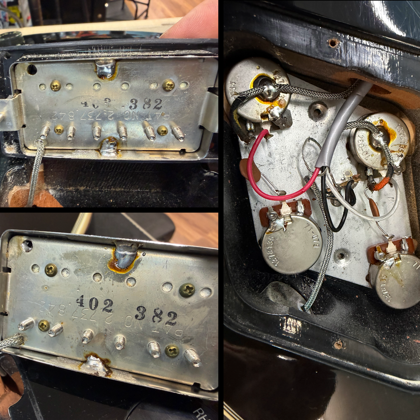 This guitar is in overall very good condition. There are light surface marks and some finish checking throughout the guitar. The hardware is oxidized and the plating is worn. There are a few minor dings around the edges of the headstock and neck. The back of the body has some belt rash. The knobs have yellowed a bit over time. (See Pics)