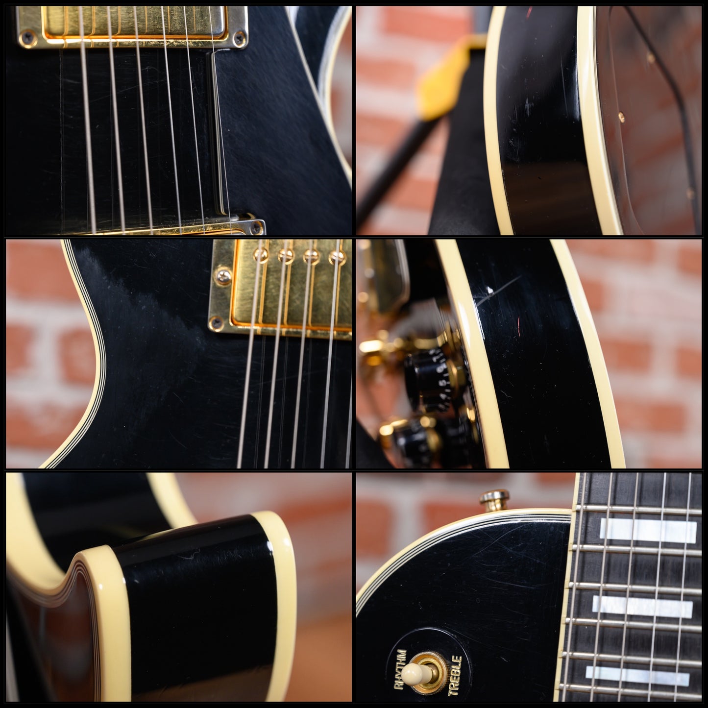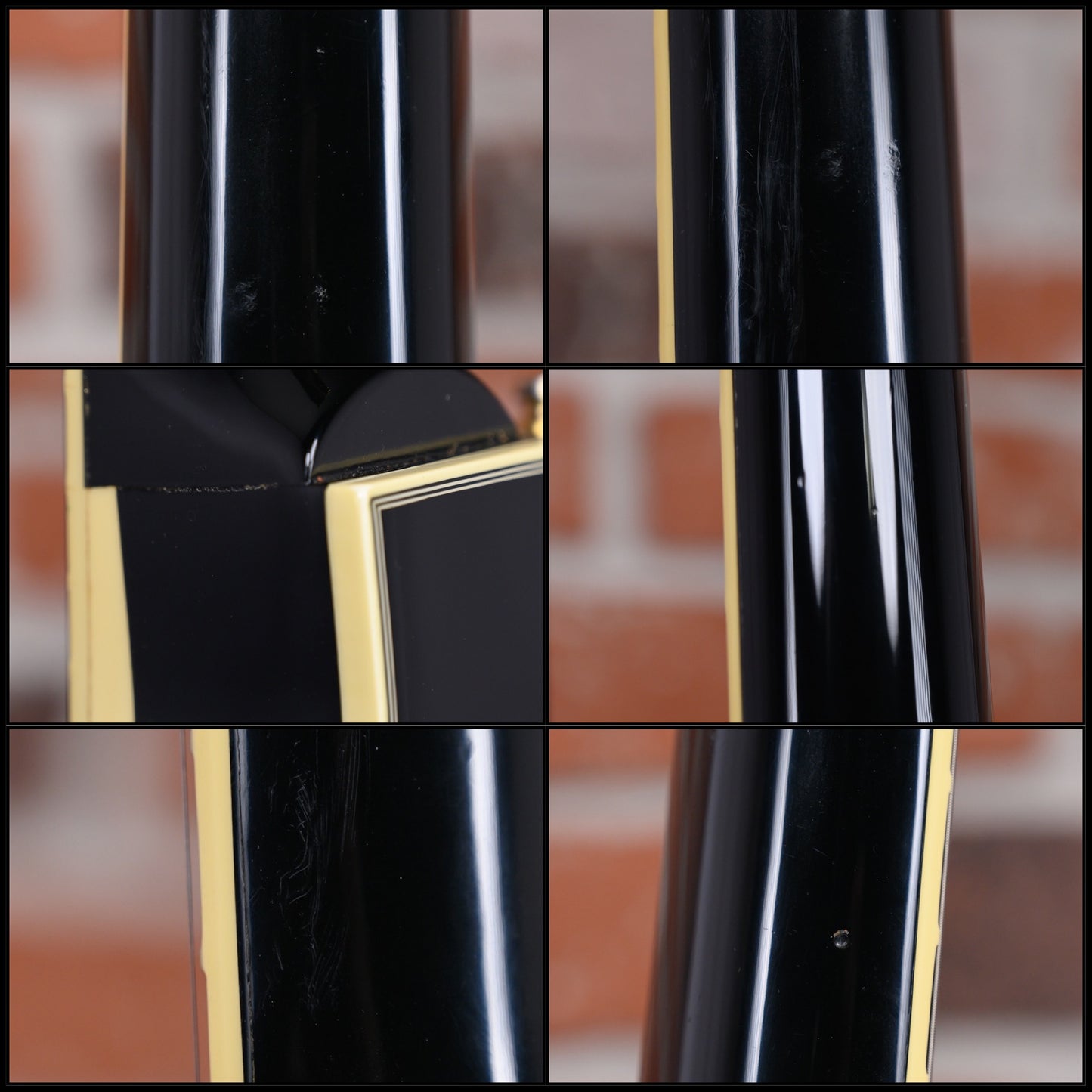 This guitar is in overall very good condition with some signs of play. It has surface marks, some finish wear, surface scratches, some dings and dents and a small finish chip on the rear of it's headstock. (See Pics)