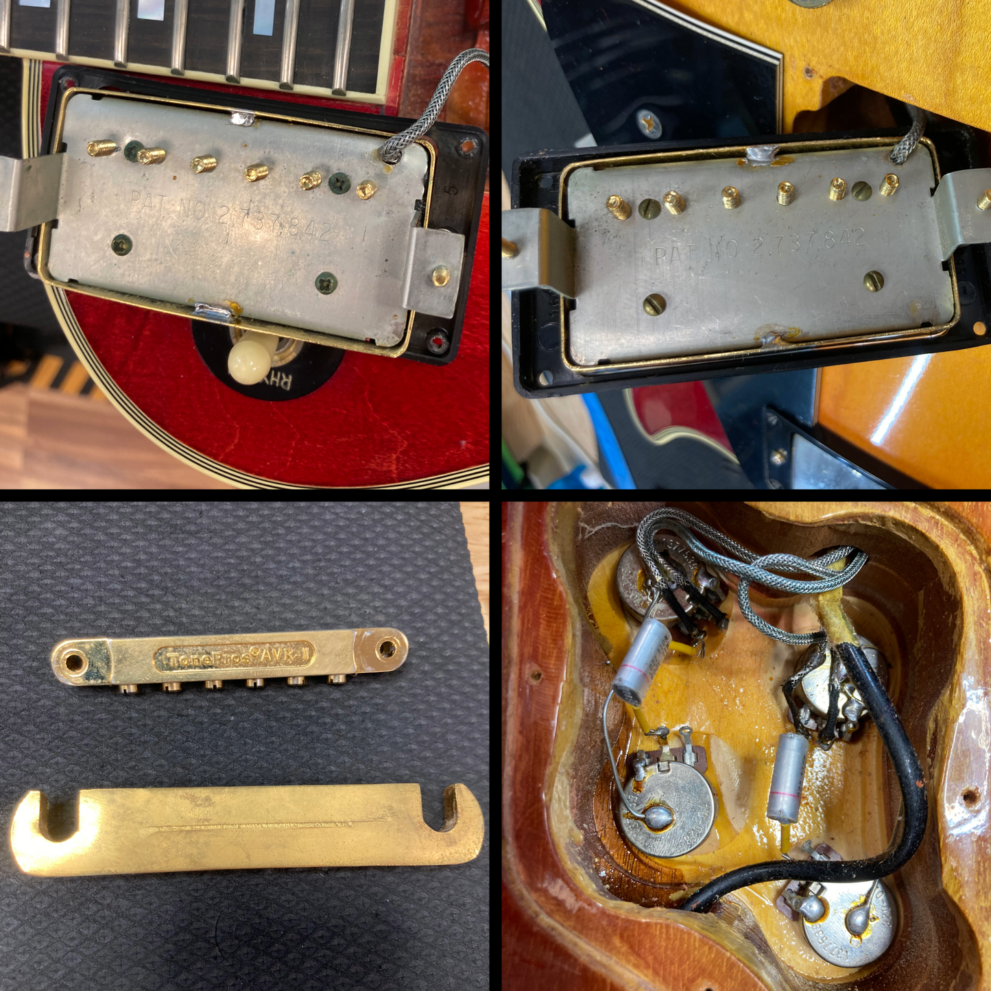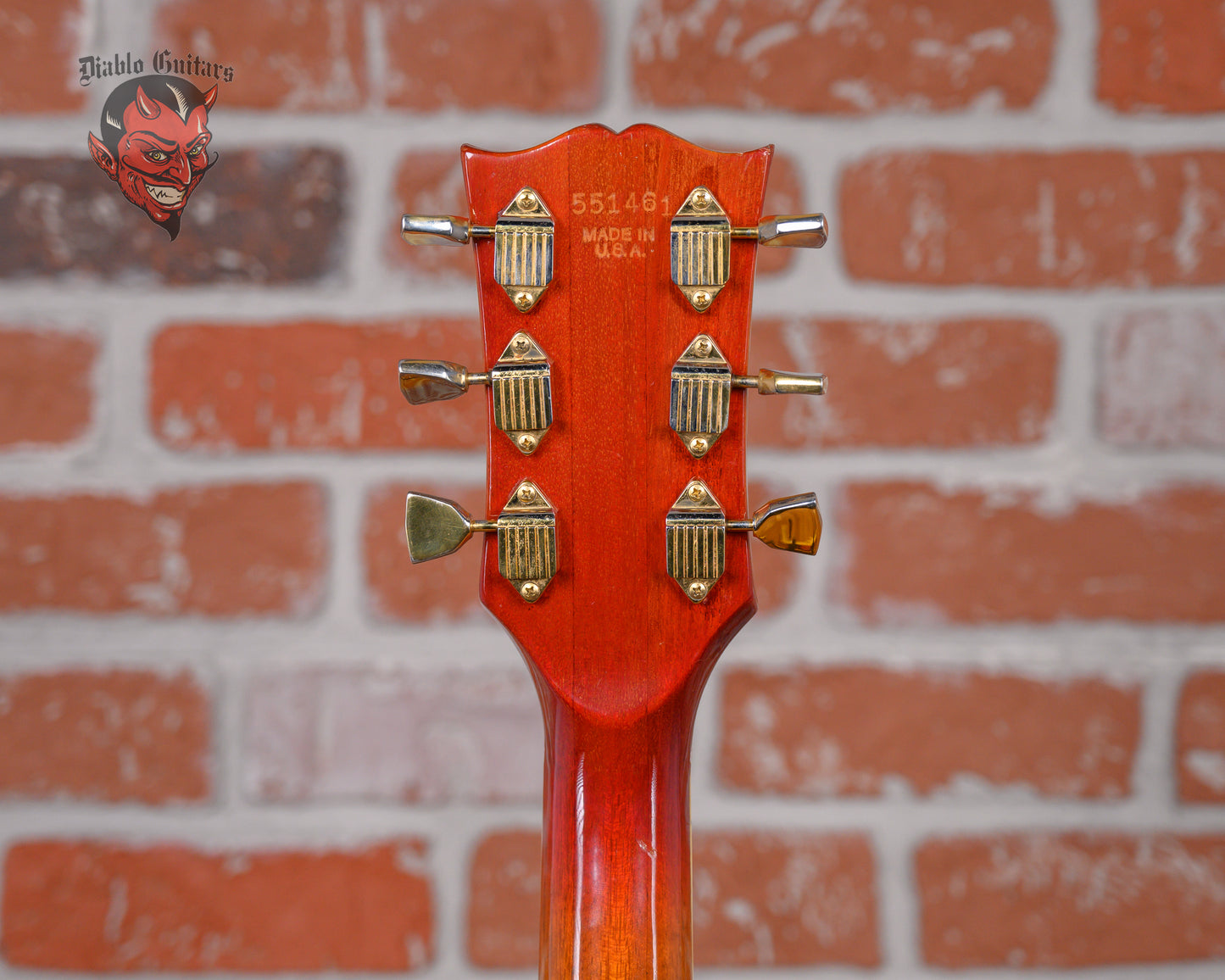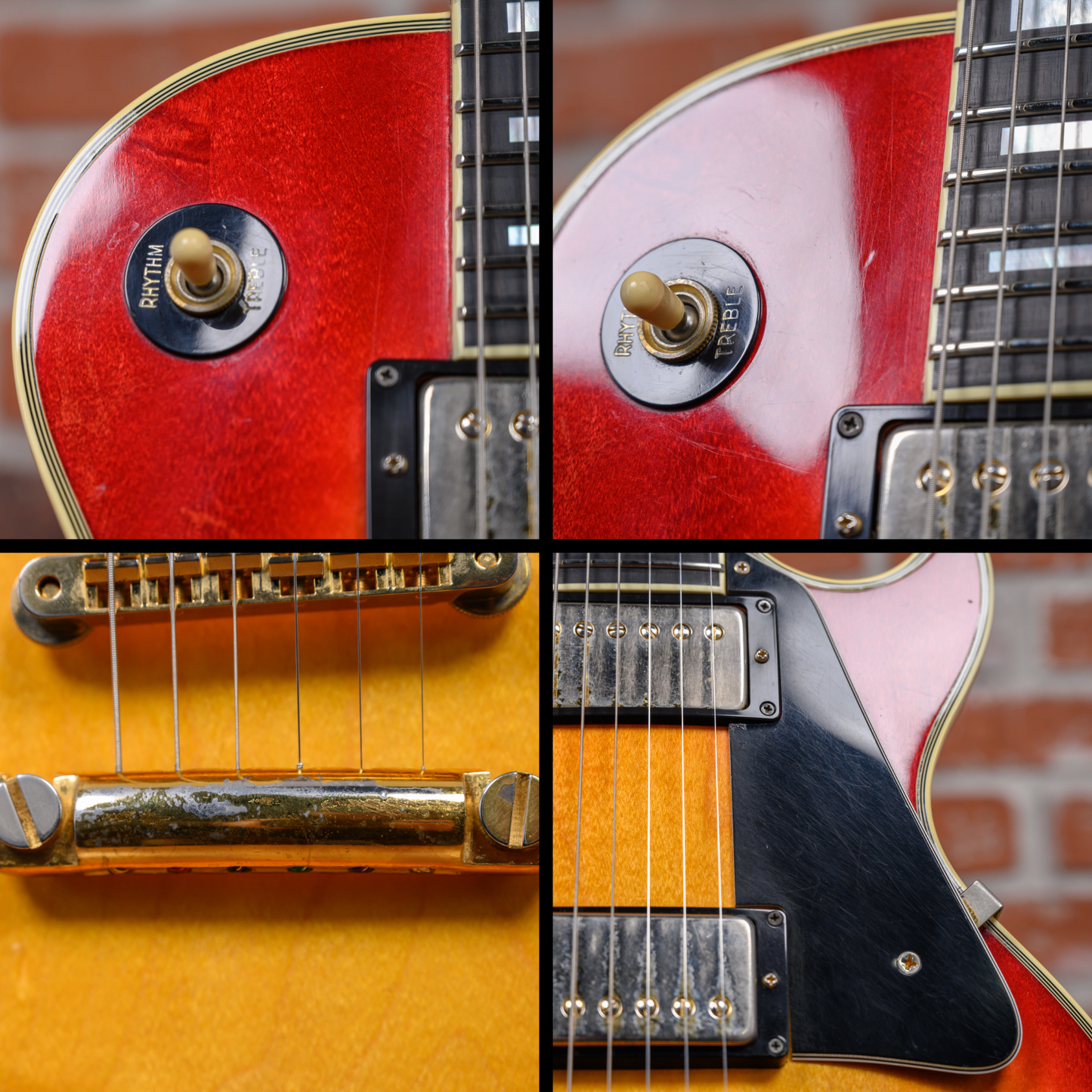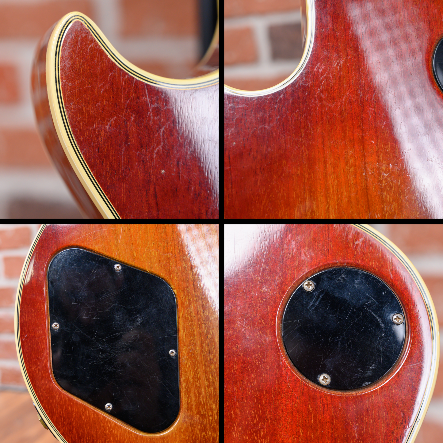 This guitar is in overall very good condition. At some point in its life it received a refret and a new nut. There is a ding on the nut on the bass end. There are light surface marks and small dings throughout. The plating on the hardware is worn on the tuners and parts of the bridge. There are some circular marks on the back of the body along with some belt rash and a few light dings. (See Pics)