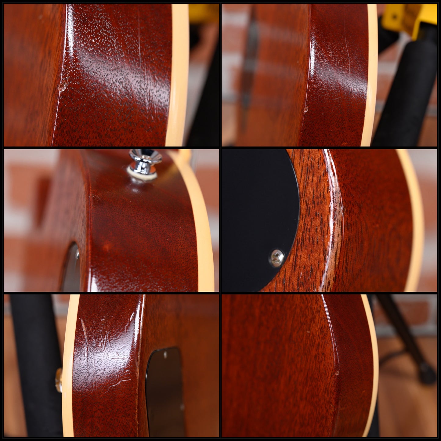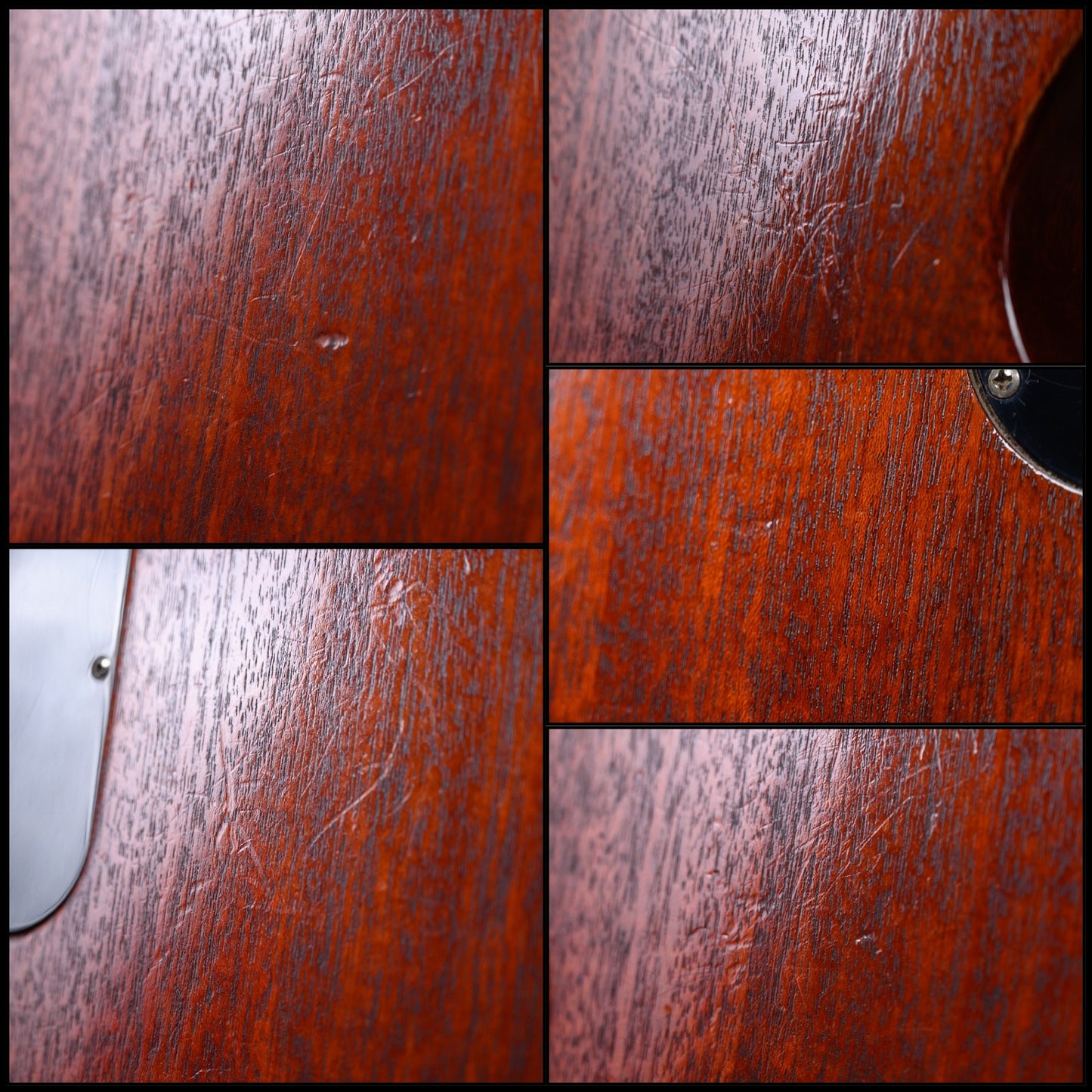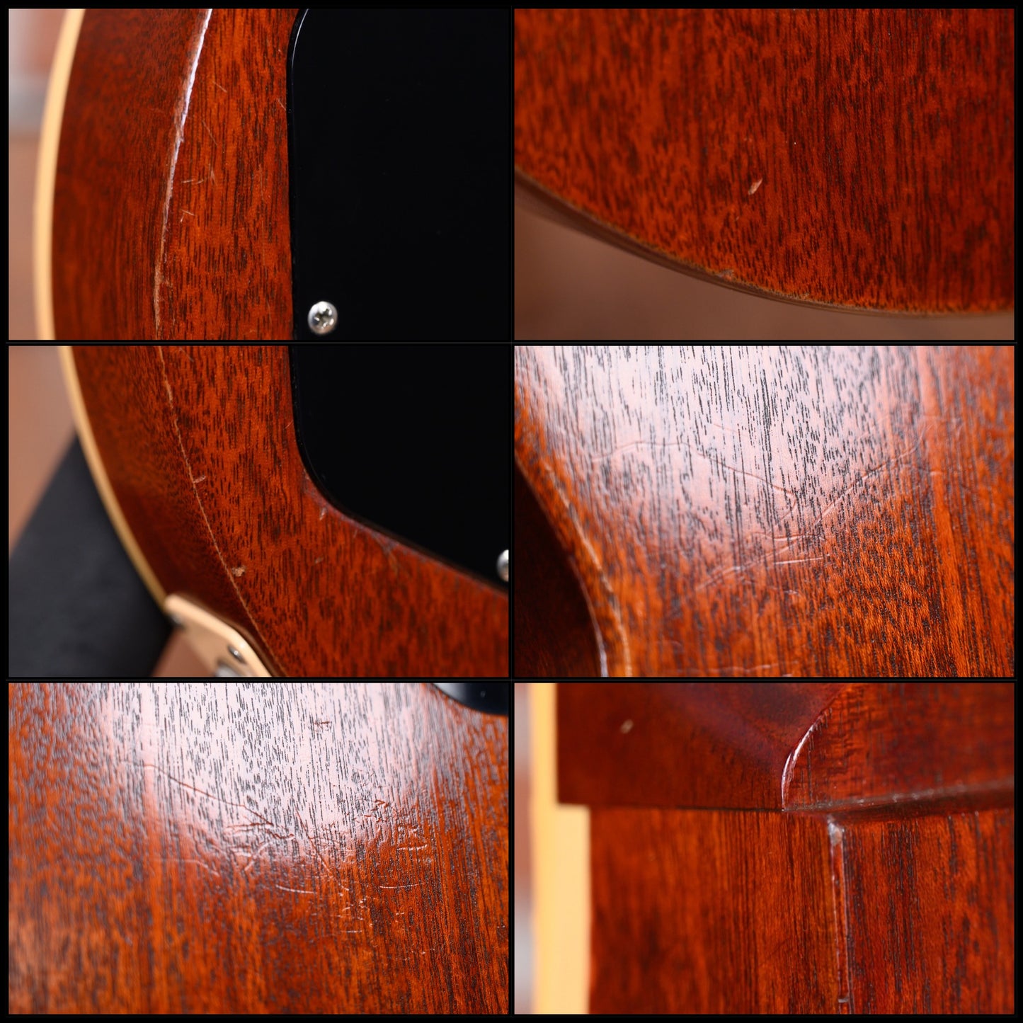 This guitar is in overall Very Good condition. It has light belt rash indents, some light dings/Dents on its top/ sides and some light scratches. There is a scratch on its lower body edge through to wood.(See Pics)