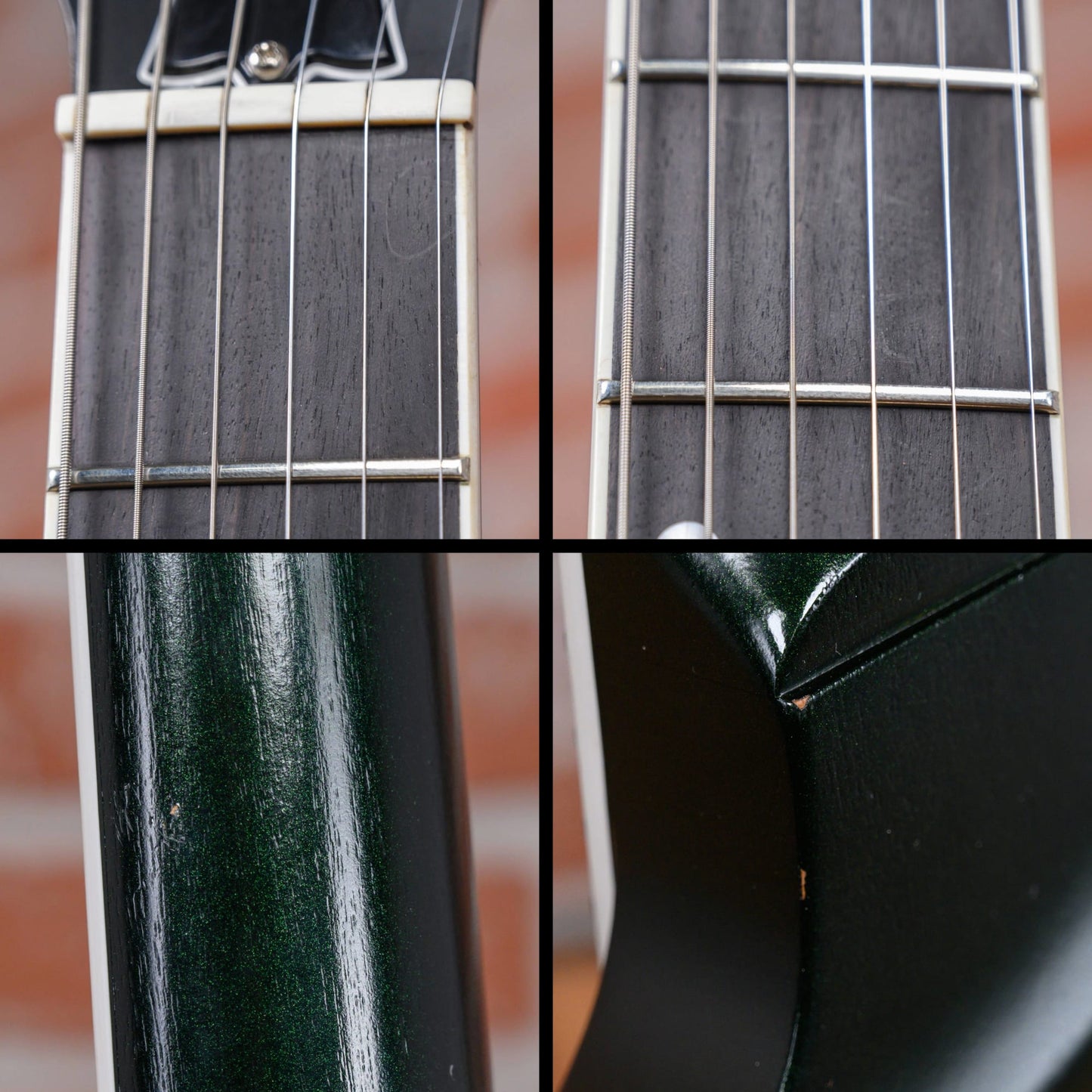 This guitar is in overall very good condition. There are some areas of the satin finish that have become slightly glossy. There are a handful of very small dings around the edges and corners of the body and the tip of the headstock. There is a small ding on the back of the neck near the 4th fret. The pickguard shows signs of play and has light marks around the pickups & controls. (See Pics)