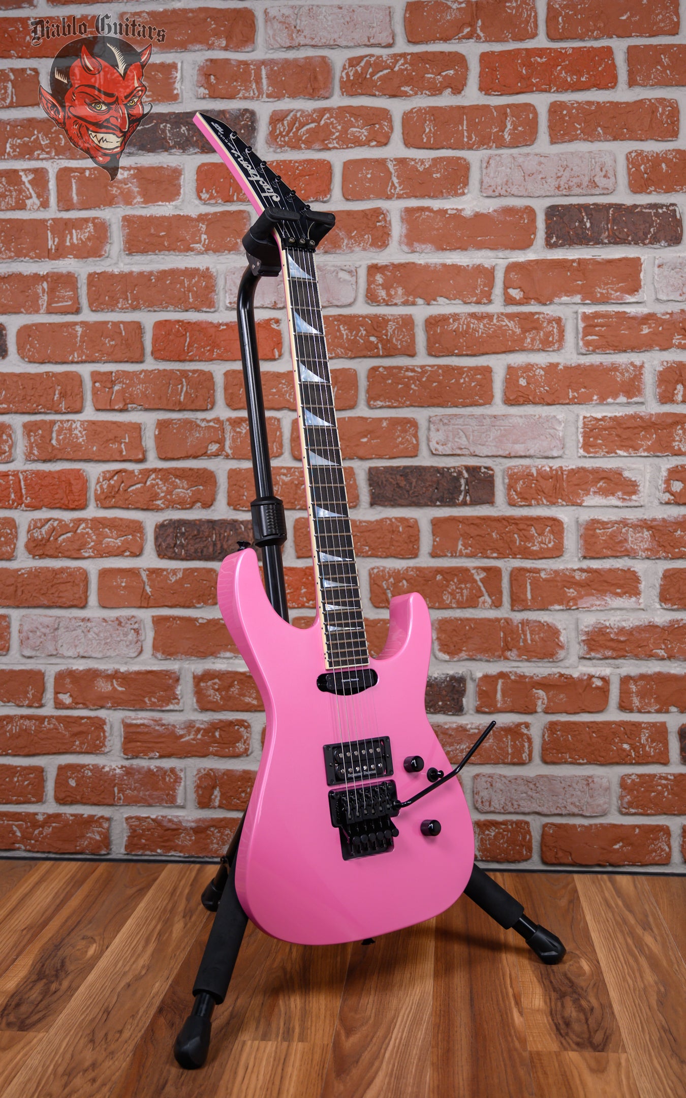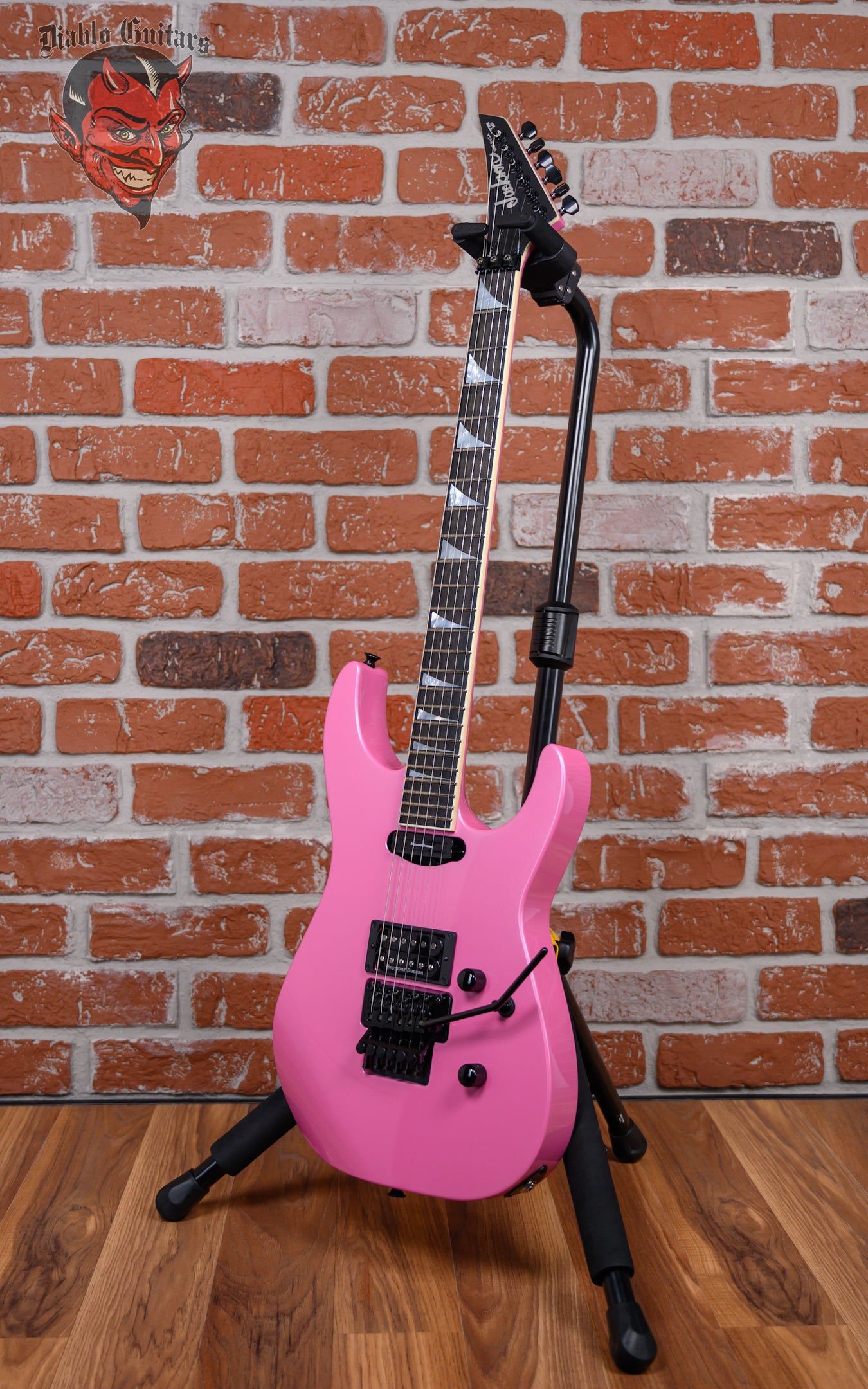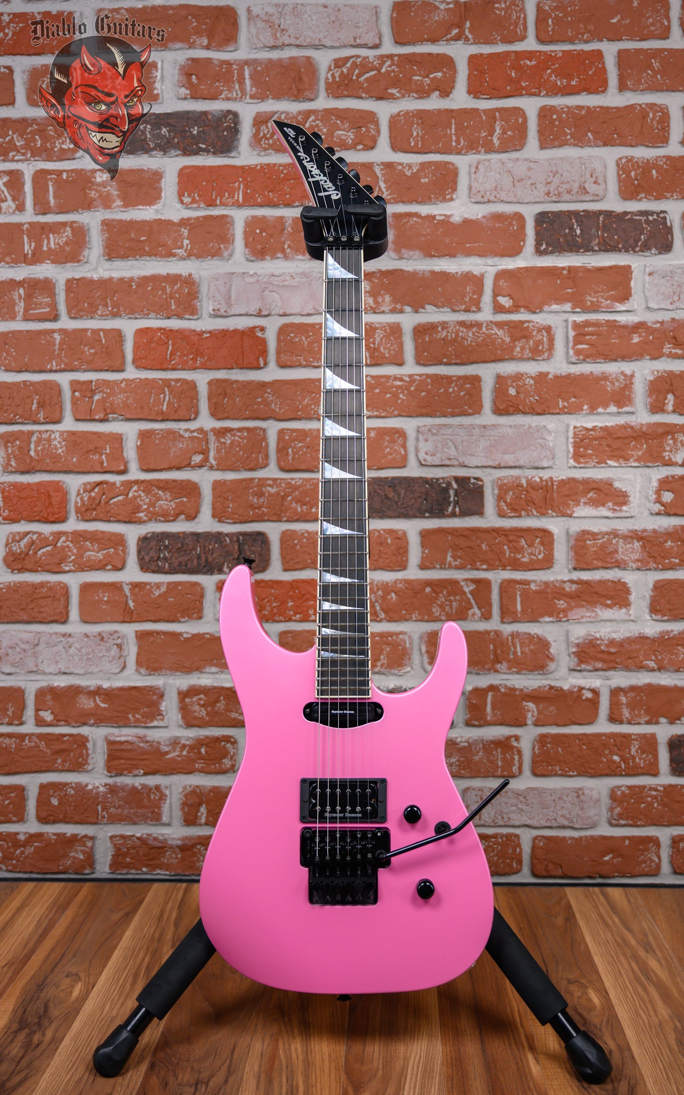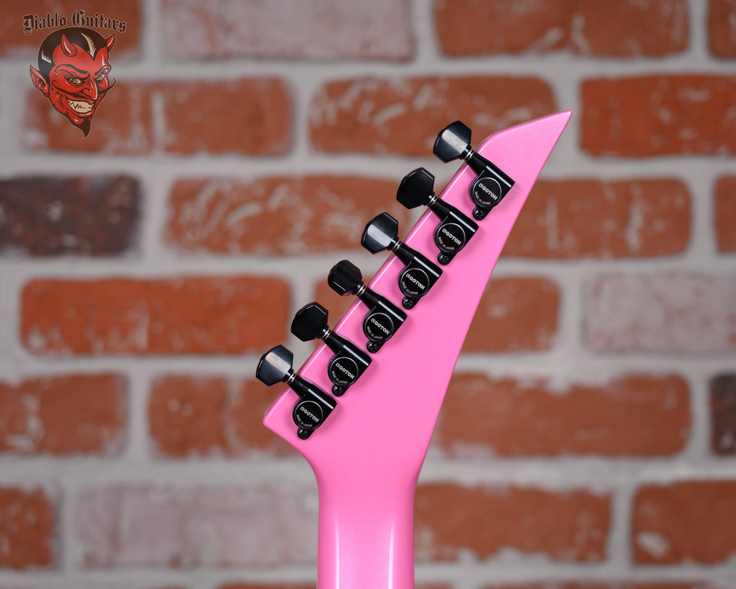 New Jackson USA Custom Shop SL HS FR Soloist in Platinum Pink finish made in 2025 with Original Hard Shell Case. This guitar features a solid alder body, quartersawn maple neck-thru and bound ebony fingerboard with a reverse, bound headstock. Equipped with a Seymour Duncan Hot Rails in the neck position and a Seymour Duncan Custom 5 in the bridge position. Controlled by 1 volume, 1 tone pot and a 3-Way toggle switch in the SLX ‘A' Configuration. The 25.5" scale length neck has mother of pearl sharkfin inlays and black side markers with 24 jumbo frets on a compound 12"-16" radius with a standard profile. The hardware is comprised of black Gotoh Sealed Die-Cast tuning machines with cloche heads, a Floyd Rose Locking nut, a Floyd Rose Original Double Locking Tremolo bridge, and black knurled dome knobs.