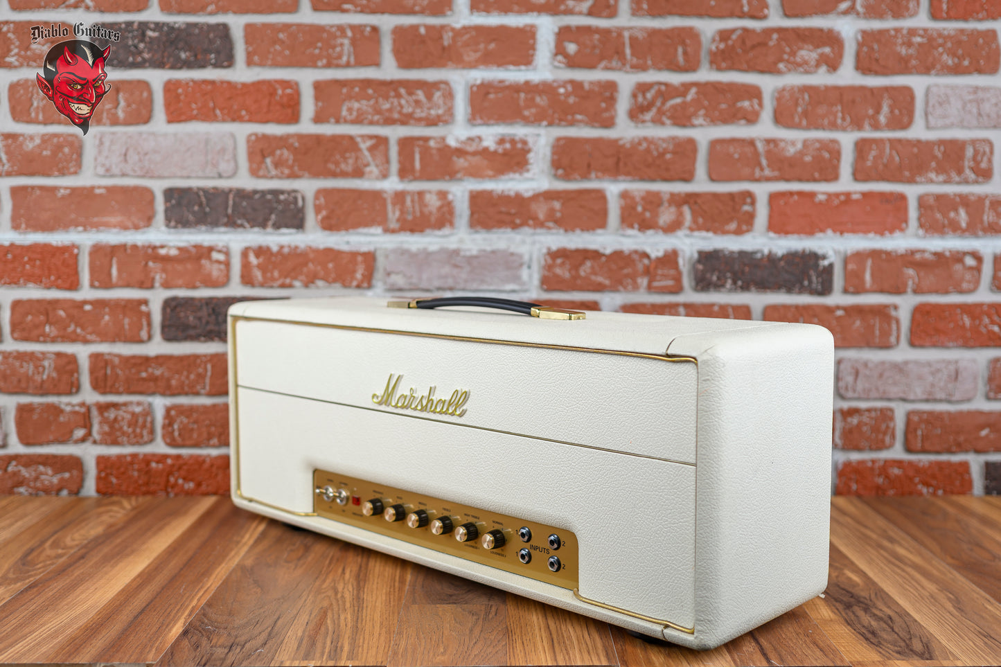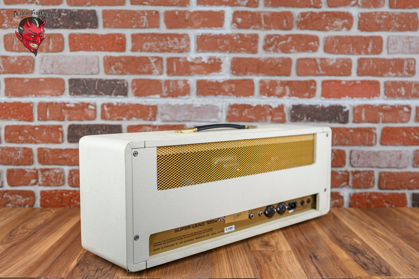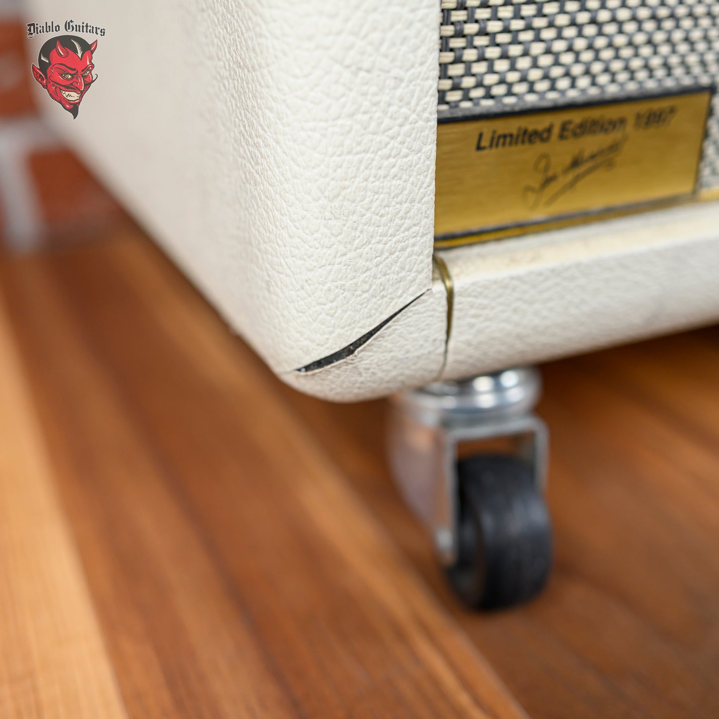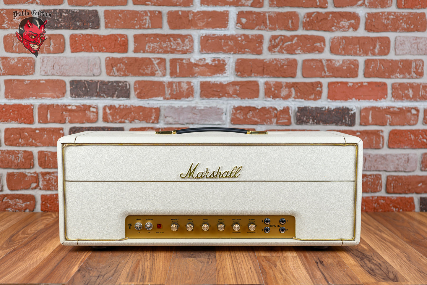 The Marshall 1959SLP 35th Anniversary MK II Reissue is a faithful recreation of the legendary 100-watt Super Lead circuit that defined the sound of late ‘60s rock. Delivering massive headroom, explosive dynamics, and the unmistakable roar of EL34-driven power, this non-master-volume design is all about pure, uncompressed tube tone. The 35th Anniversary variant stands apart with its striking white tolex covering, pairing iconic Marshall tone with a rare and visually distinctive aesthetic.
