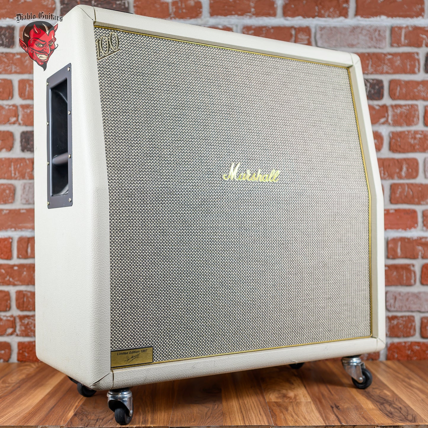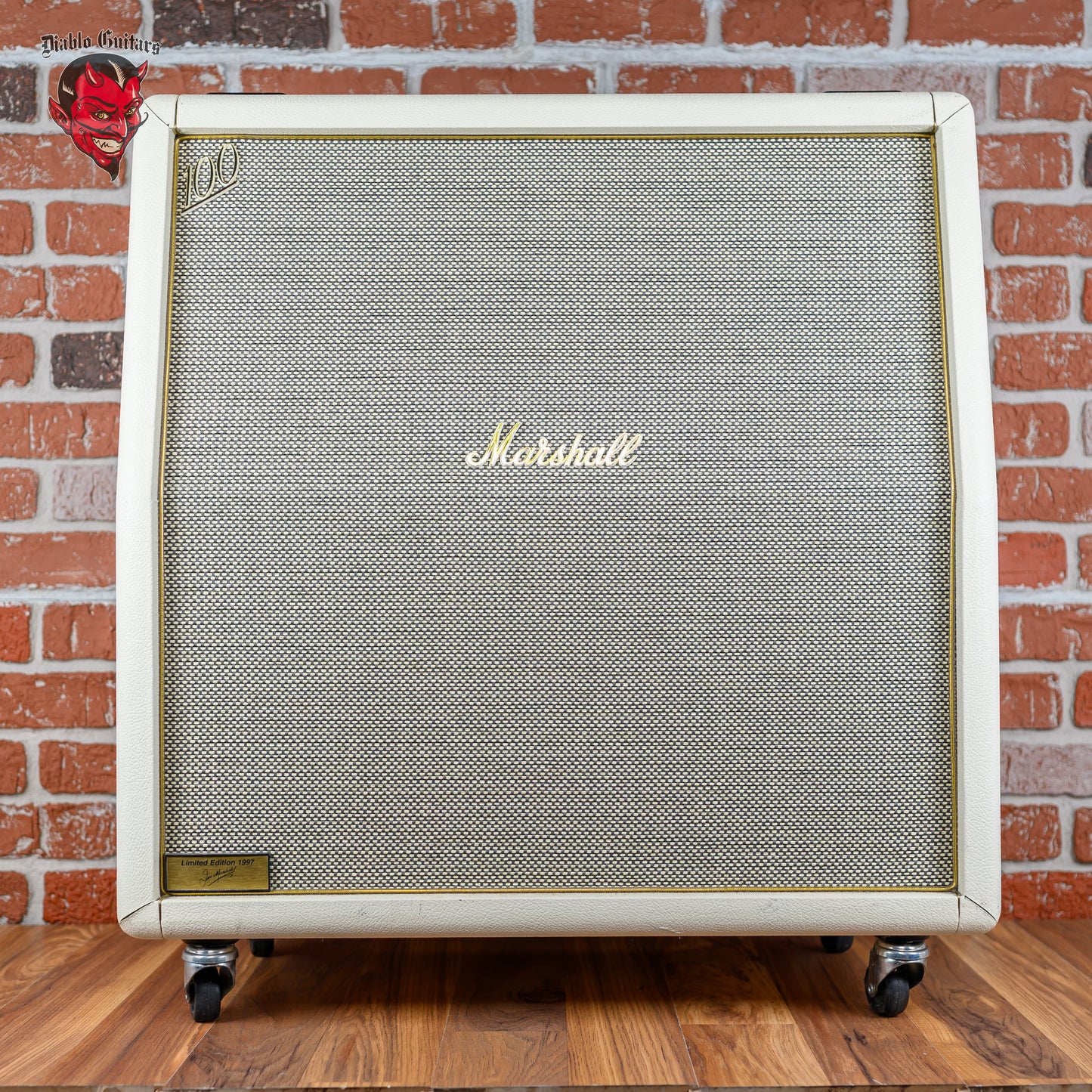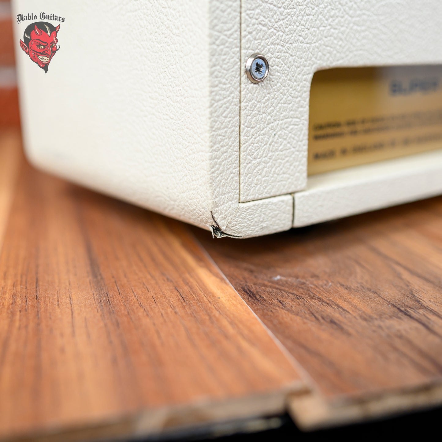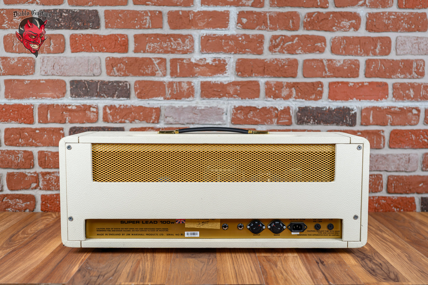 The Marshall 1959SLP 35th Anniversary MK II Reissue is a faithful recreation of the legendary 100-watt Super Lead circuit that defined the sound of late ‘60s rock. Delivering massive headroom, explosive dynamics, and the unmistakable roar of EL34-driven power, this non-master-volume design is all about pure, uncompressed tube tone. The 35th Anniversary variant stands apart with its striking white tolex covering, pairing iconic Marshall tone with a rare and visually distinctive aesthetic.