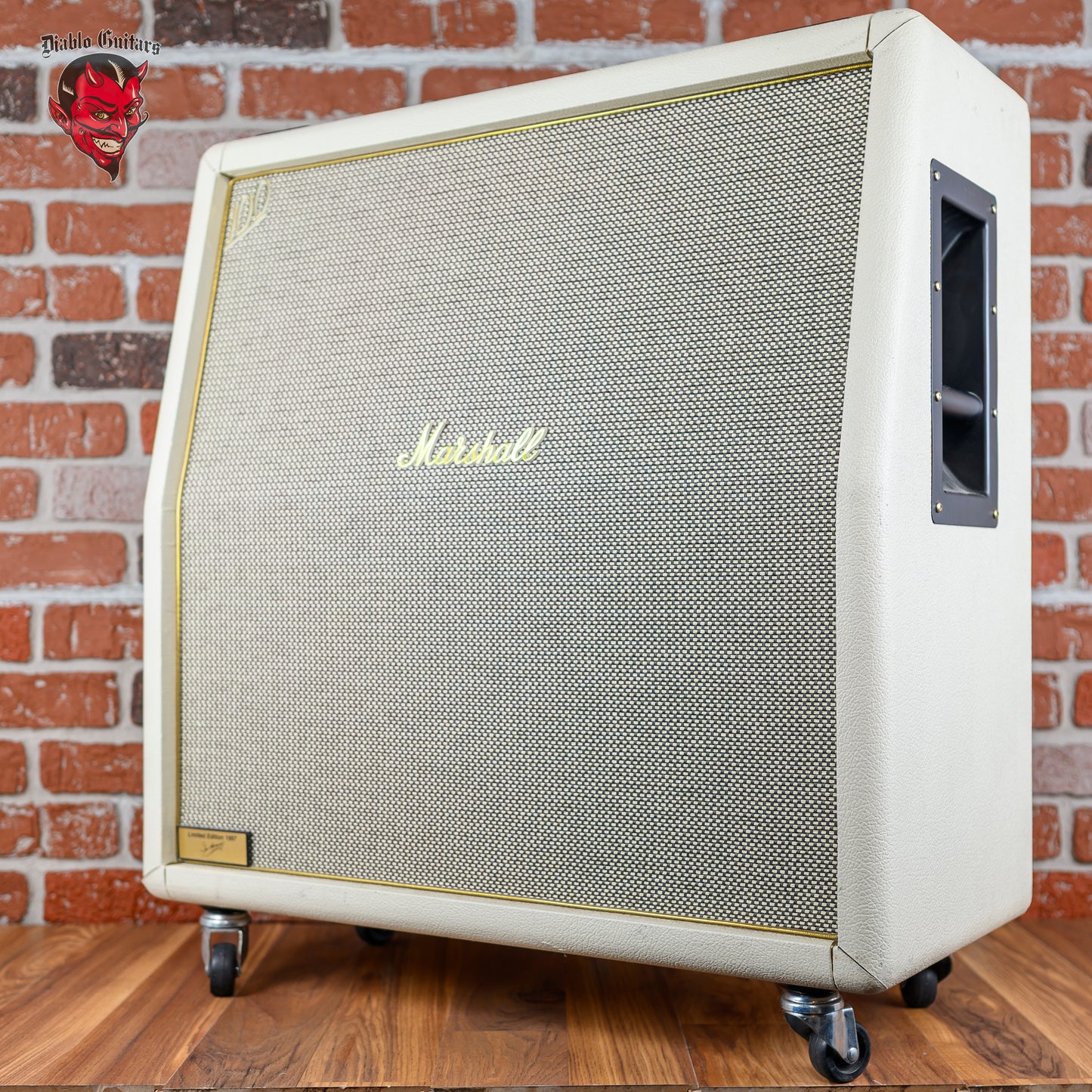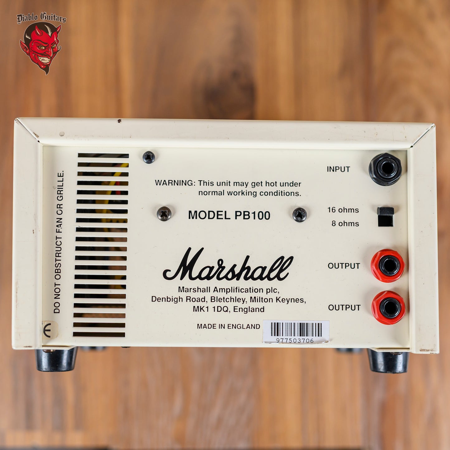 This example is in excellent condition with light wear from use. The matching 1960AX 4x12 cabinet is also in excellent condition, showing only light cosmetic marks in the tolex and minor corner separation. A killer stack with classic looks and unmistakable tone. Includes a Marshall Powerbrake PB100 attenuator for volume reduction - with no Master Volume quite necessary.