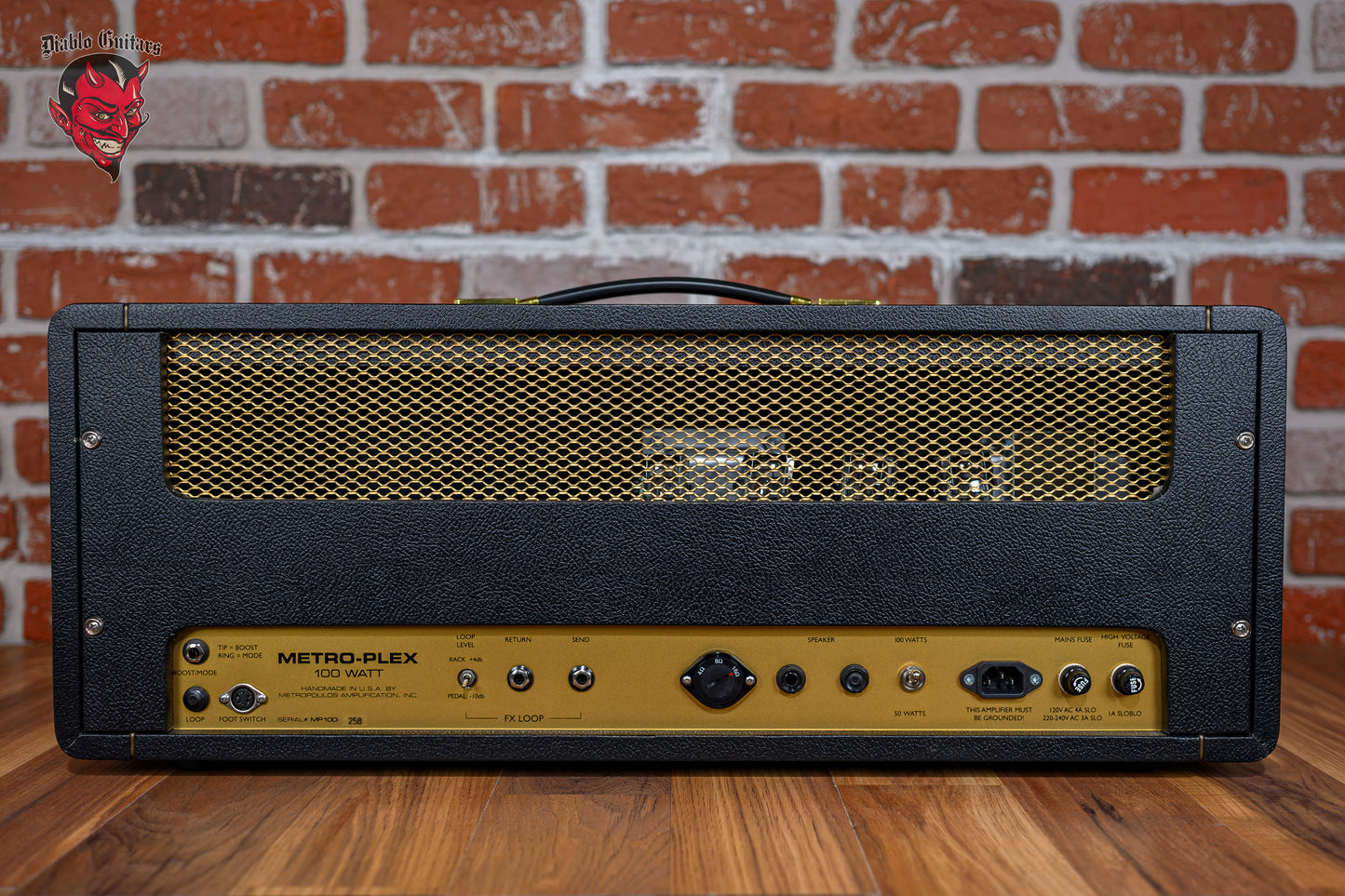 Metropoulos' Metro-Plex 100 recreates the most iconic late-60s and early-70s Plexi voices in a single, high-headroom platform, combining authentic Superlead and 45/100 character with modern flexibility. Selectable voicings, built-in Boost, Variac operation, and a zero-loss FX loop make it one of the most versatile boutique Plexi-style heads available.