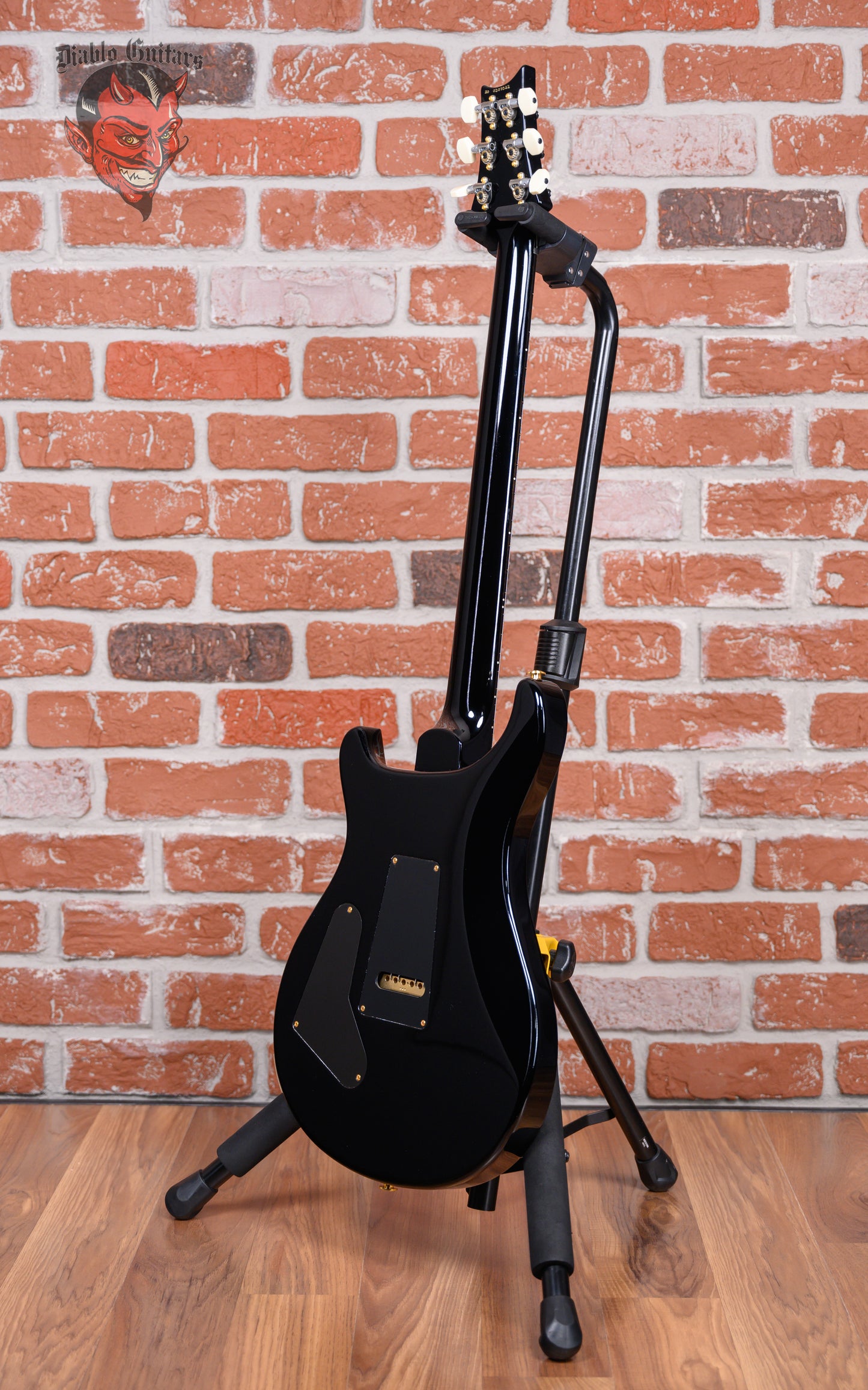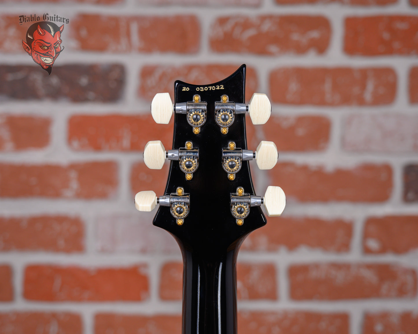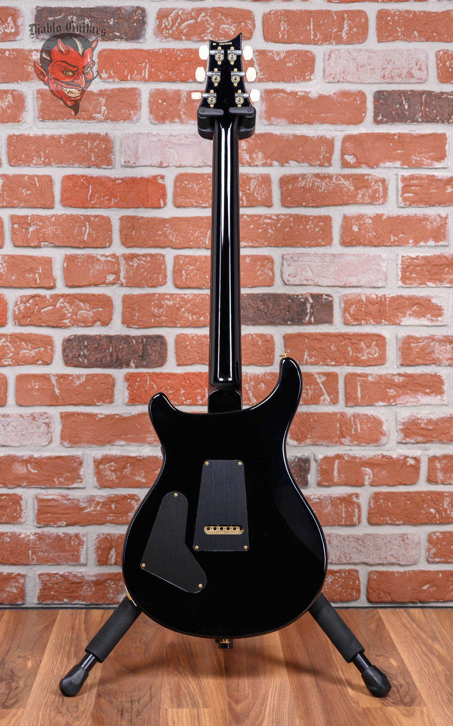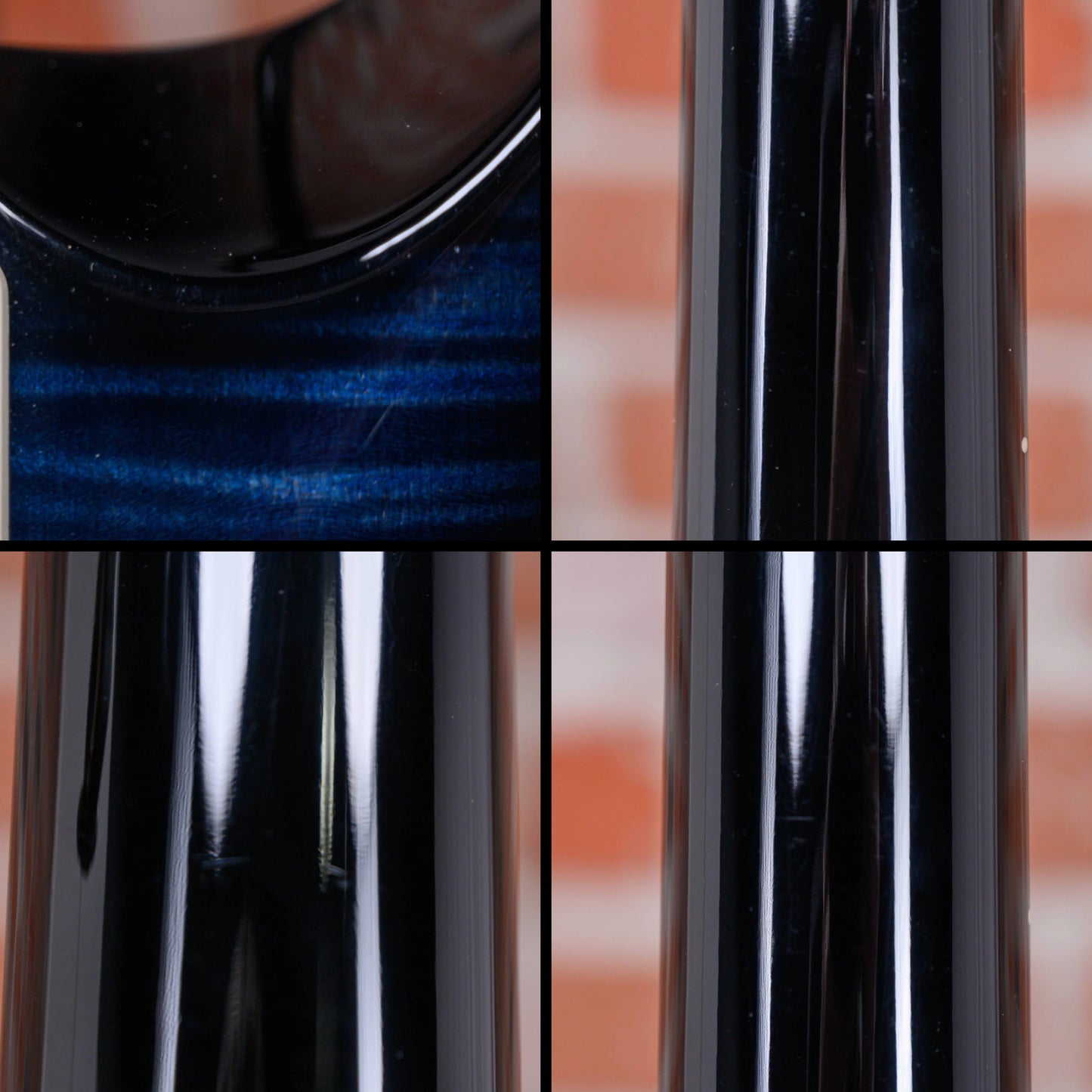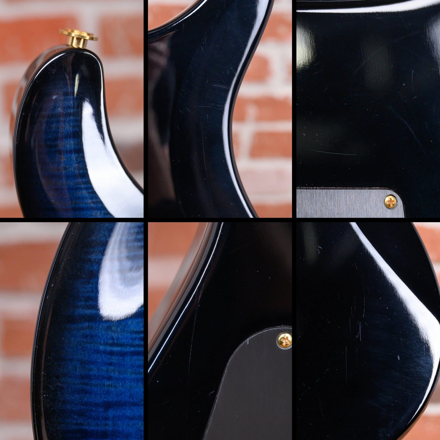 PRS 35th Anniversary Custom 24 Artist Package in Royal Blue Smokewrap Burst finish made in 2020 with Original Hard Shell Case. This guitar features a solid mahogany body with an Artist-Grade maple top, mahogany neck and rosewood fingerboard with a rosewood overlay headstock w/ Small Eagle inlay. Equipped with a set of PRS 85/15 humbuckers in the neck and bridge positions. Controlled by 1 volume pot, 1 tone pot, a 3-Way toggle switch and 2 coil split mini-toggles. The 25" scale length neck has abalone birds inlays and white side markers with 24 medium jumbo frets on a 10" radius with a Pattern Regular profile. The hardware is comprised of gold/chrome PRS Phase III locking tuning machines with cloche heads, a synthetic bronze powder blend nut, a PRS Gen III vibrato bridge/tailpiece and clear lamp shade knobs.