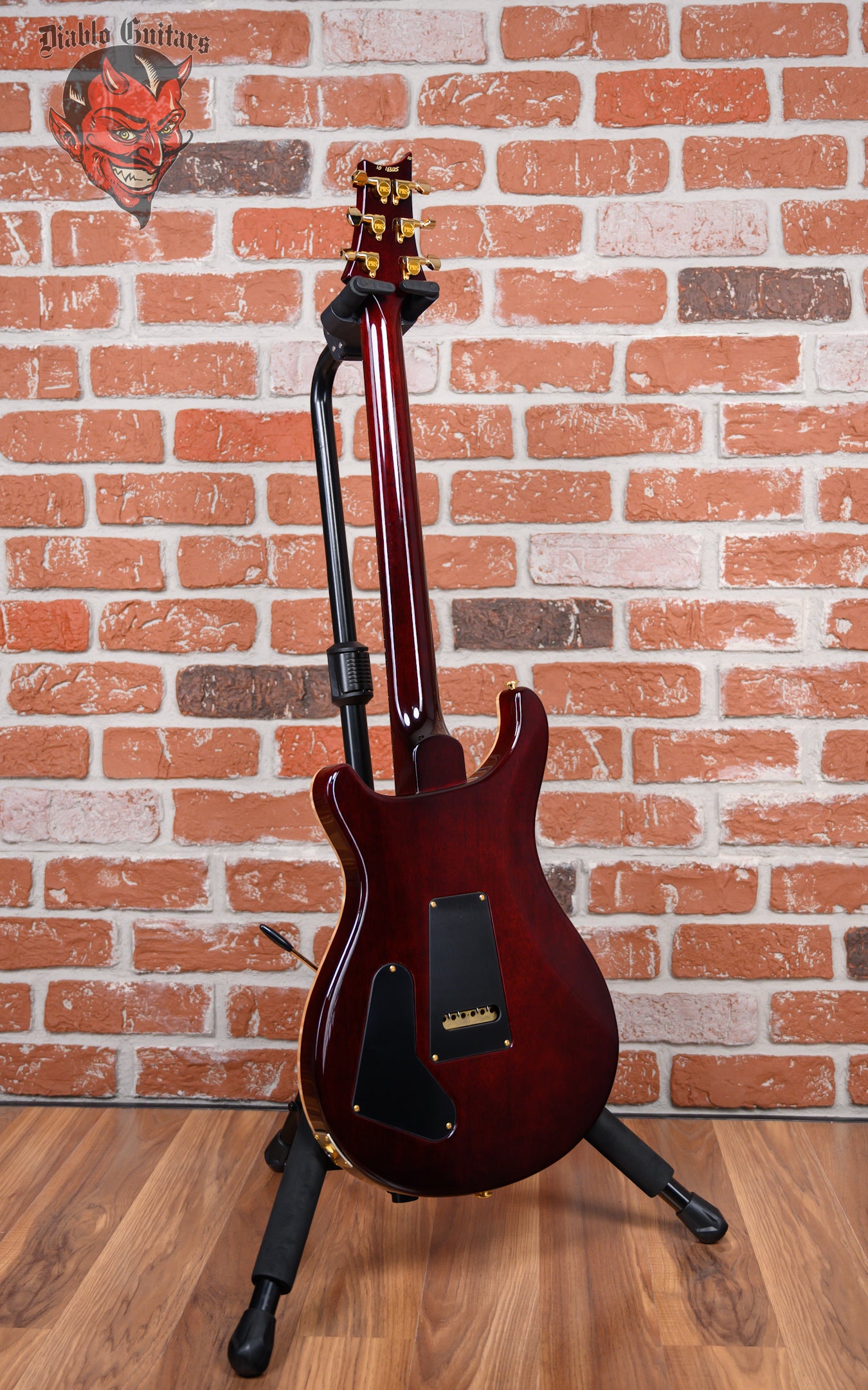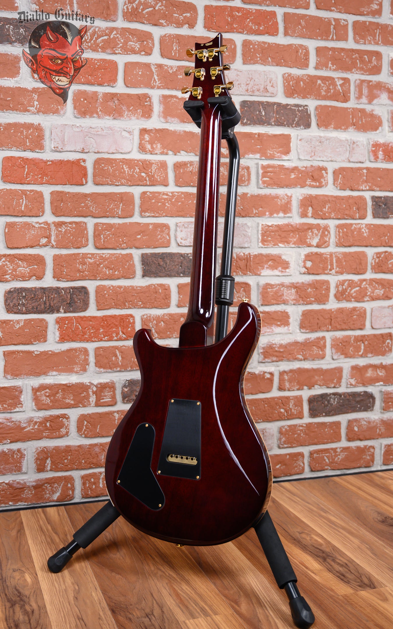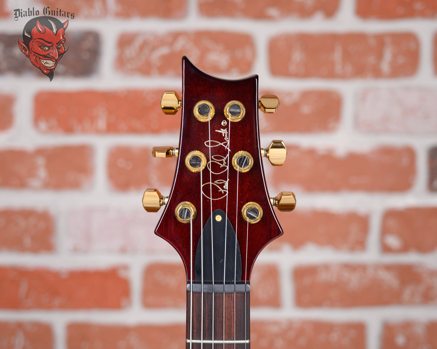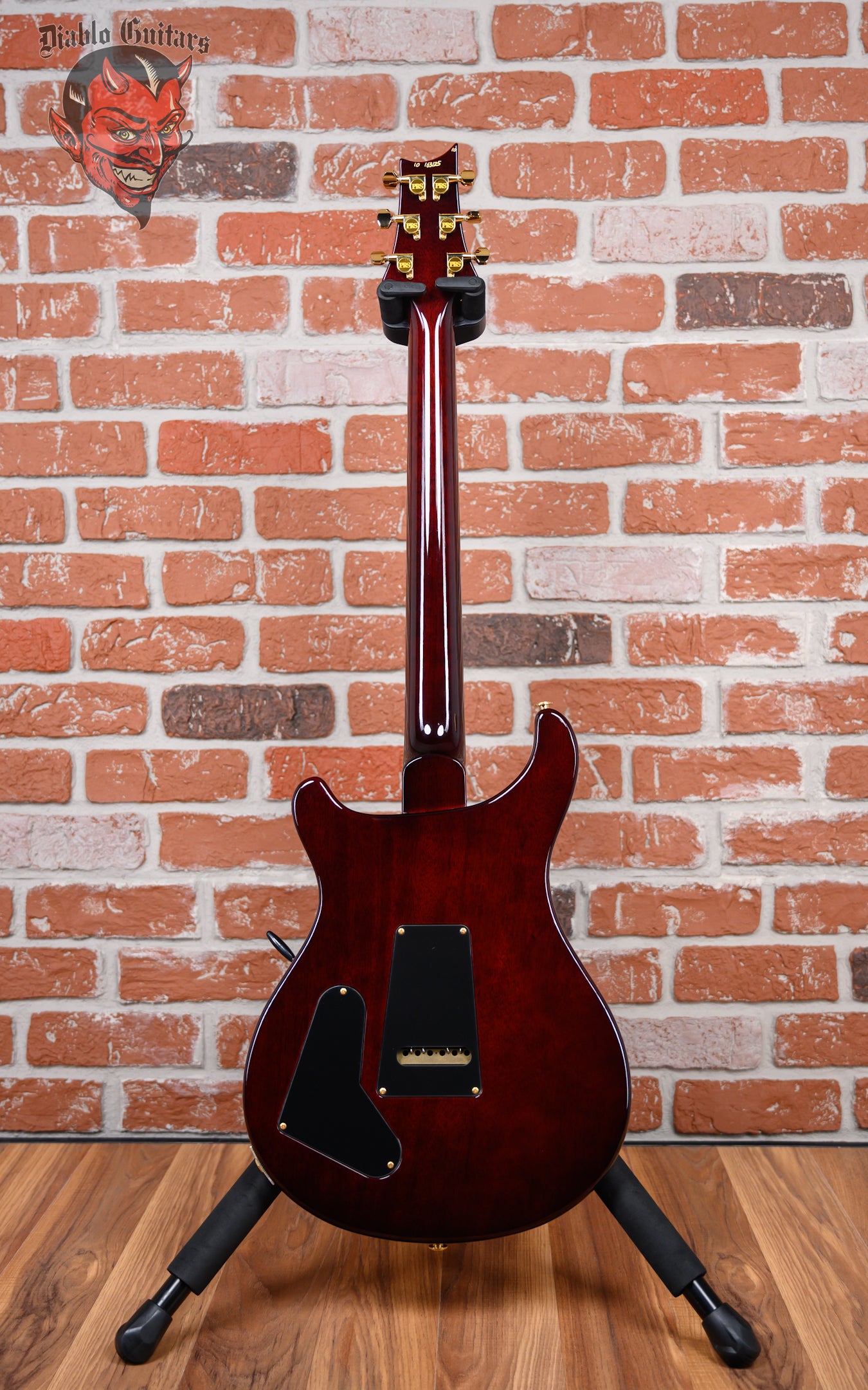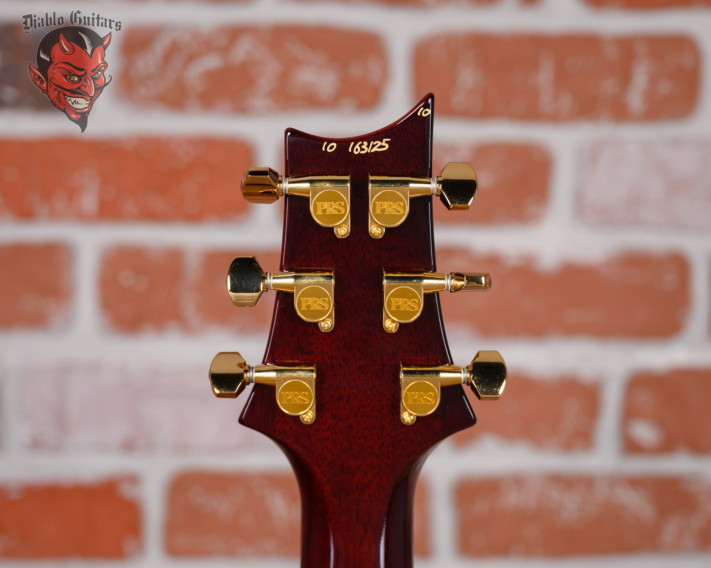 PRS Custom 22 Semi Hollow Quilted Maple 10 Top in Smoked Amber finish made in 2010 with Original Hard Shell Case. This guitar features a Solid Mahogany body with a natural bound Quilted Maple 10 Top top, Mahogany neck and east Indian Rosewood fingerboard with a Color Matched headstock. Equipped with a pair of PRS 57/08 humbuckers in the neck and bridge position. Controlled by 1 Volume, 1 Tone pot with push/pull coil tap and a 3-Way Toggle Switch. The 25" scale length neck has Abalone Bird inlays and White side markers with 22 Medium Jumbo frets on a 10" radius with a Wide Fat profile. The hardware is comprised of gold PRS Phase III Locking tuning machines with Cloche heads, a Synthetic Bronze Powder Blend nut, a PRS Gen III Tremolo bridge and Amber Lamp Shade knobs.