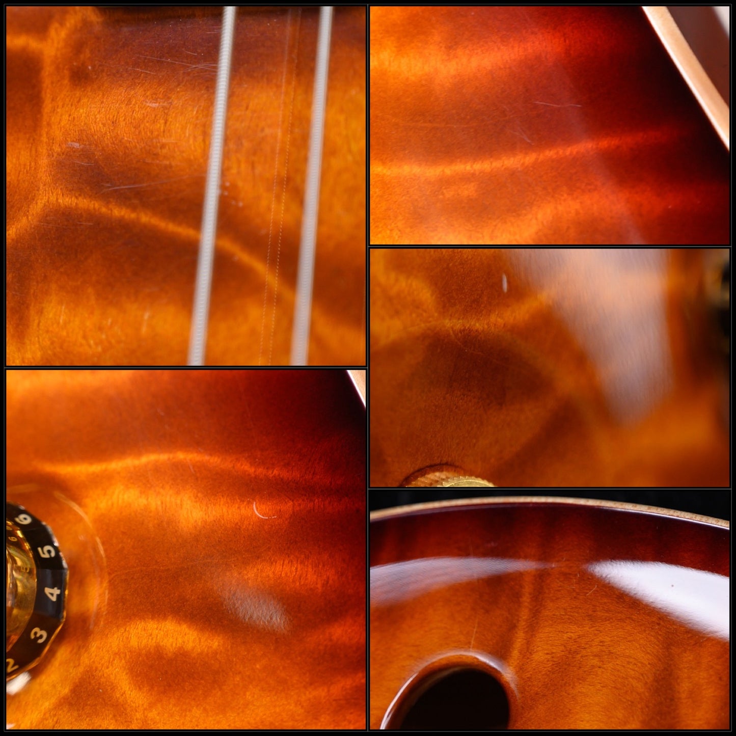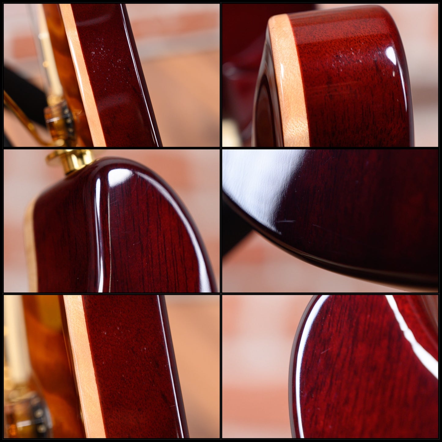 This guitar is in overall excellent condition. With some light signs of play. It has some light surface marks on the body, back of neck and head stock and some very light surface scratches. There is a light ding on its top near the controls you can see under direct light. (See Pics)