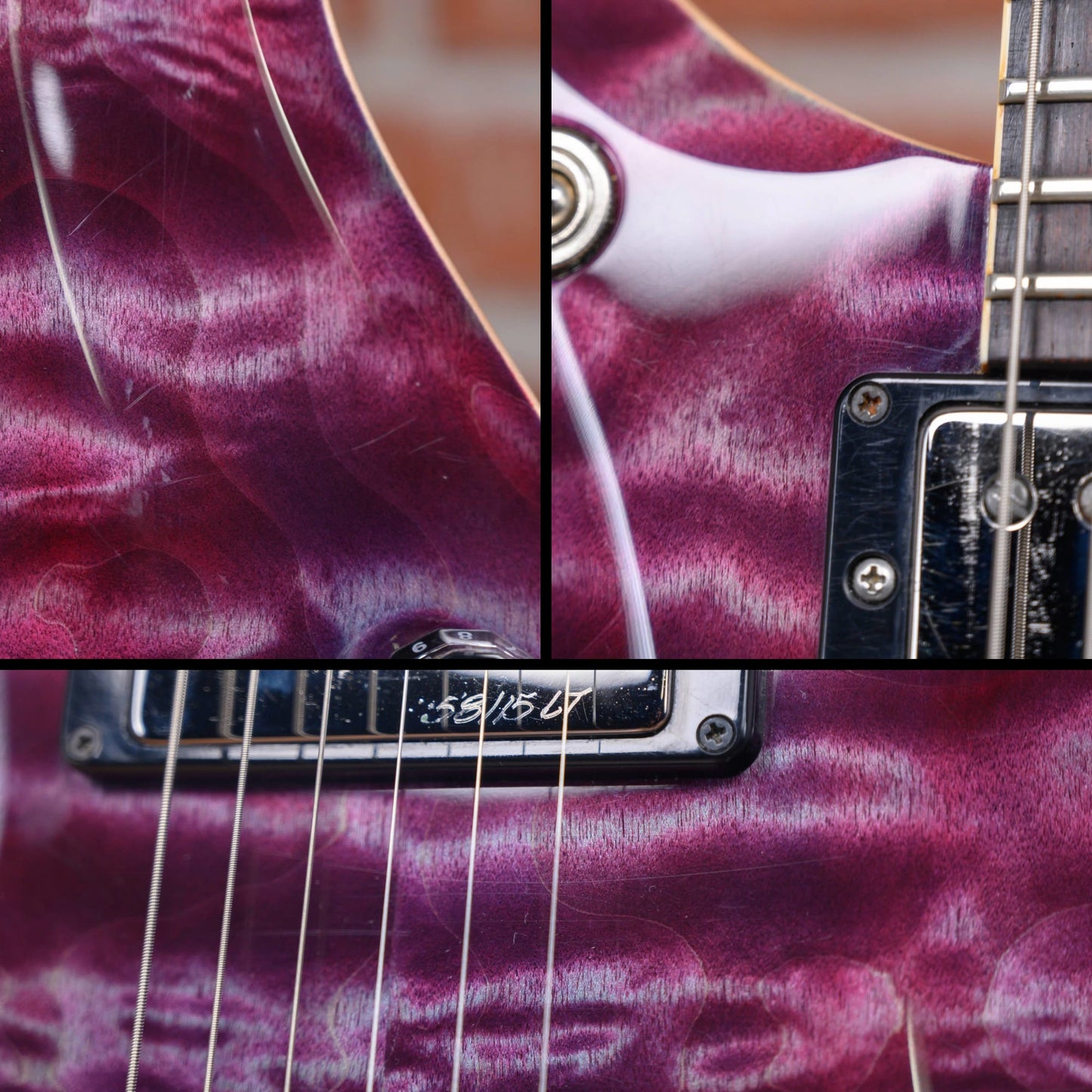 This guitar is in overall excellent condition. The headstock has a small ding on the corner. The body has light surface marks that can be seen in direct light. The hardware has some oxidization and patina in spots. The plating on a few of the tuners show wear and some chips. (See Pics)