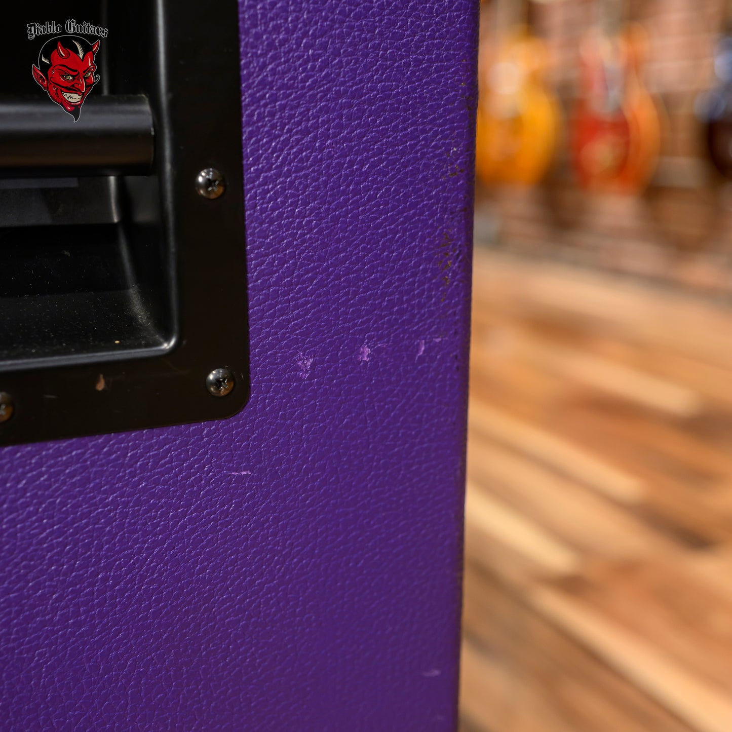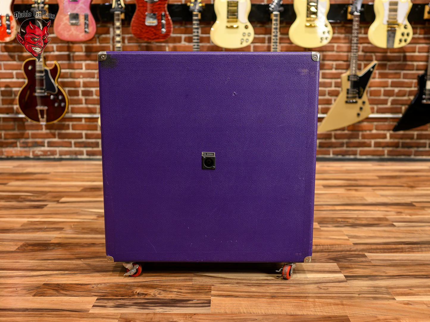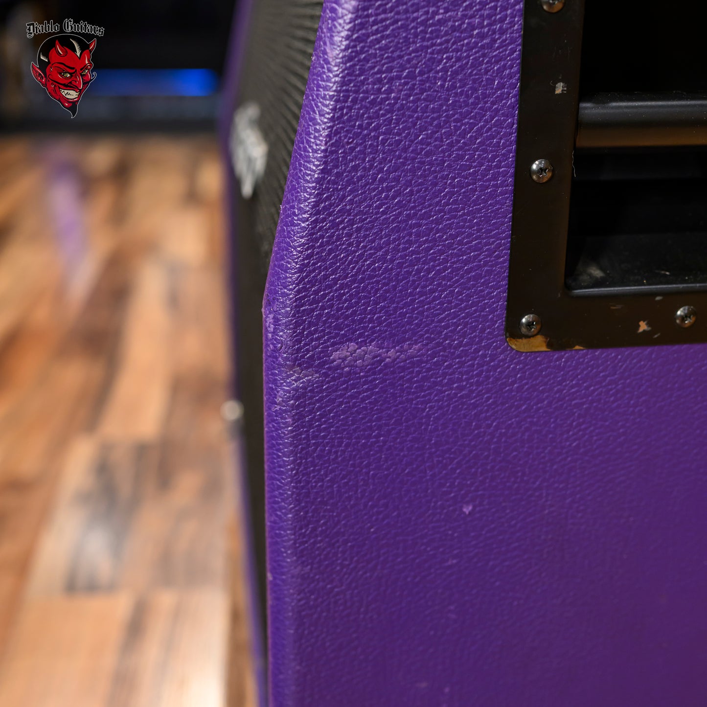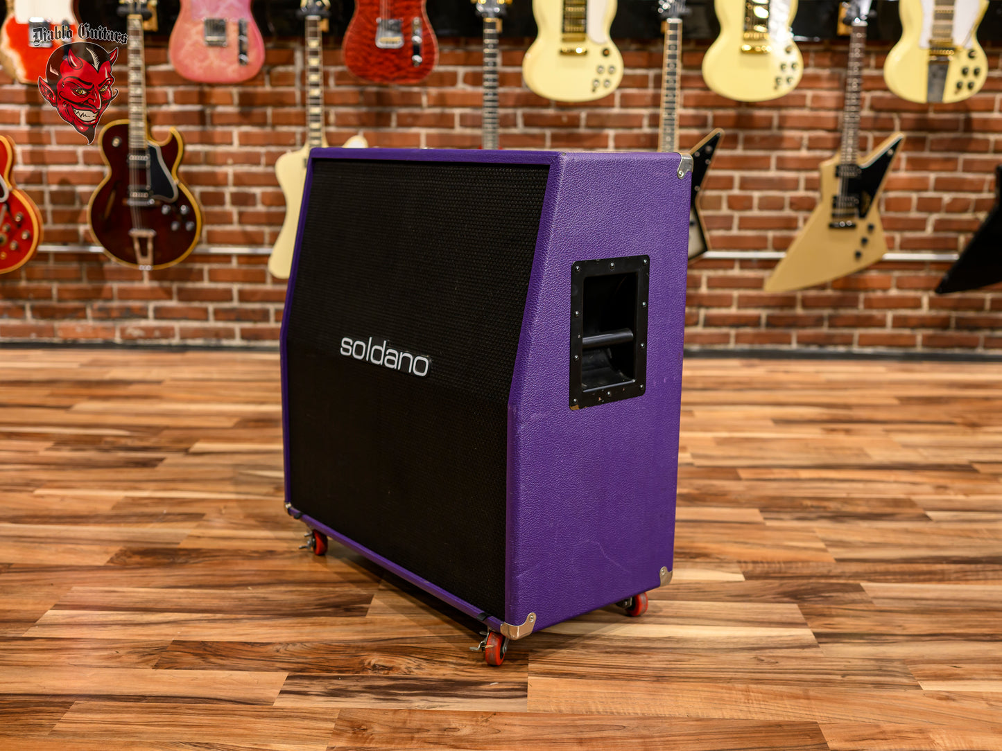 Soldano 4x12 Straight Guitar Cabinet in Purple Tolex, built circa 2003. This Soldano cab features a Baltic birch enclosure, front loaded construction, and a full set of Celestion Vintage 30 speakers for classic high gain authority with tight lows and rich upper mid cut. The cabinet is wrapped in a striking purple tolex covering, a non standard finish that sets it apart from typical black units from the era.