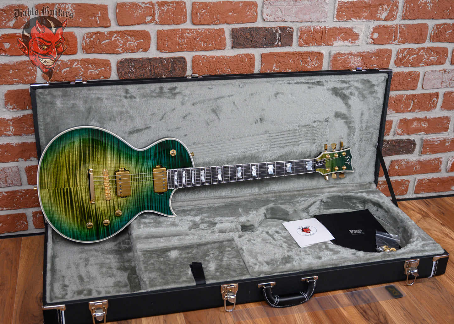 Add ESP Original Series Custom Shop Eclipse CTM FM Flame Maple Top in Turquoise Green Tear Drop 2025 w/OHSC to the cart