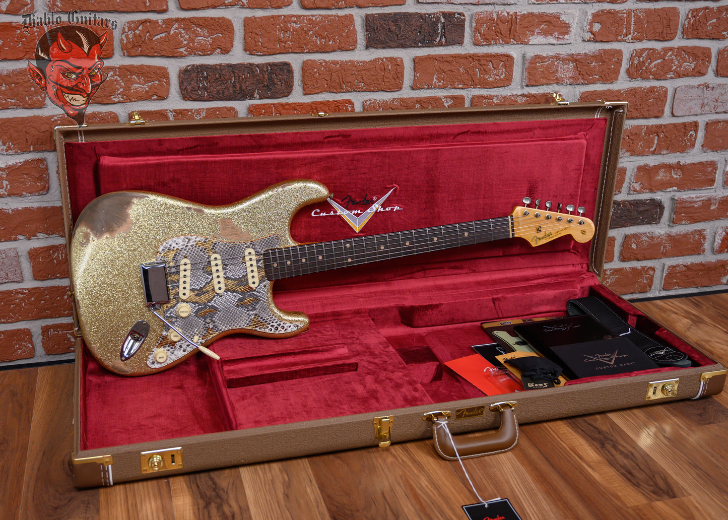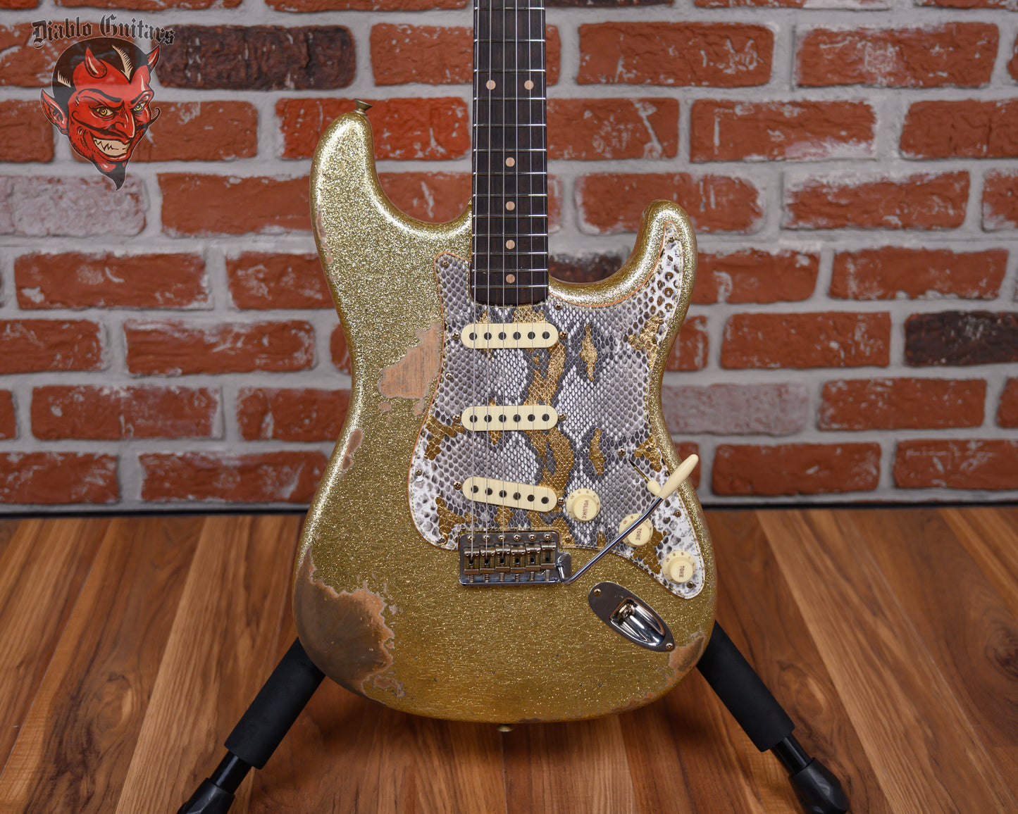 Add Fender Custom Shop W25 1962 Stratocaster Heavy Relic Gold Sparkle Boos Leather Custom Pickguard 2025 w/OHSC to the cart