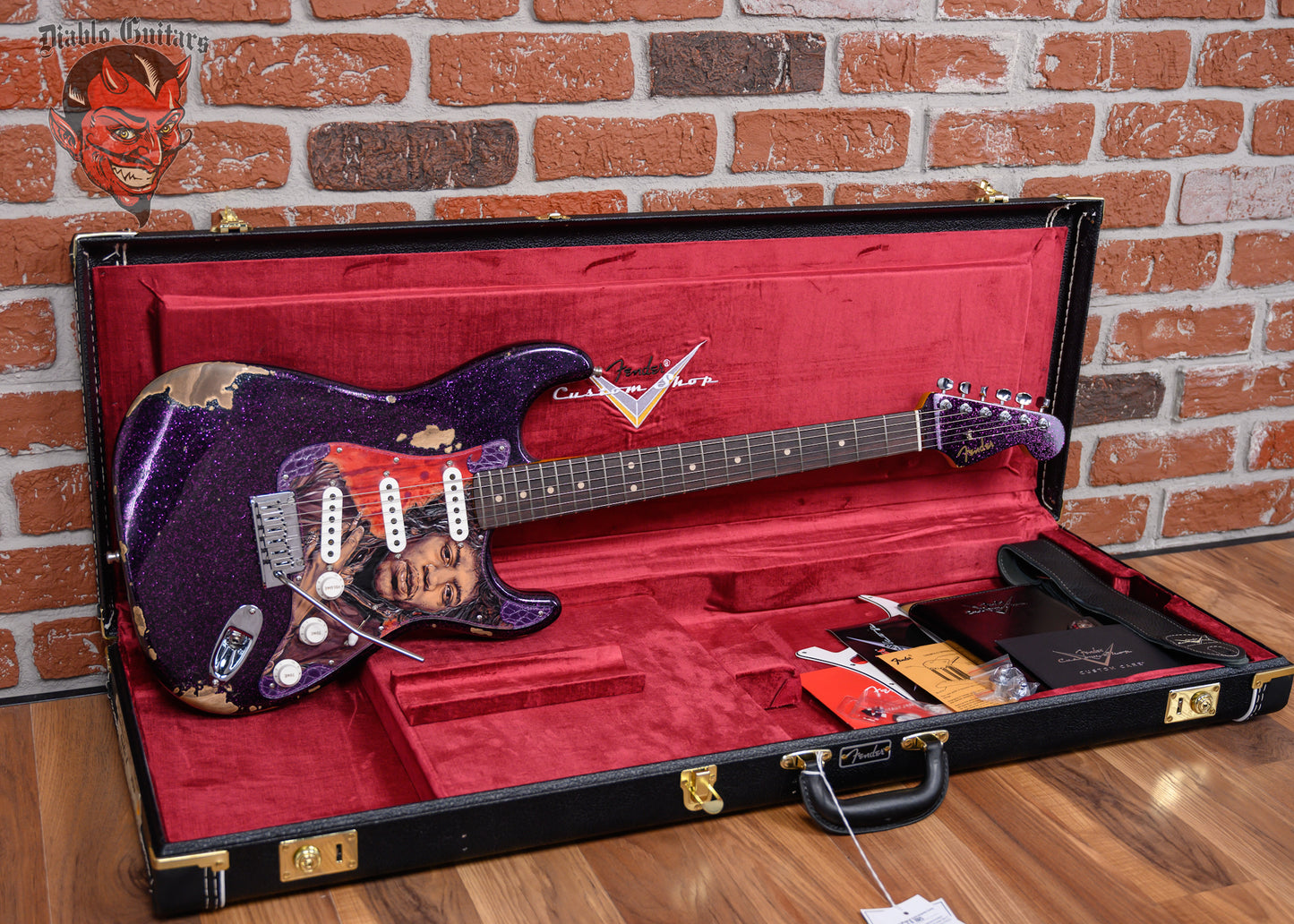 Add Fender Custom Shop SR25 Custom Deluxe Stratocaster Heavy Relic Magenta Sparkle/ Boos Custom Leather Jimi Hendrix Pickguard 2025 w/OHSC to the cart