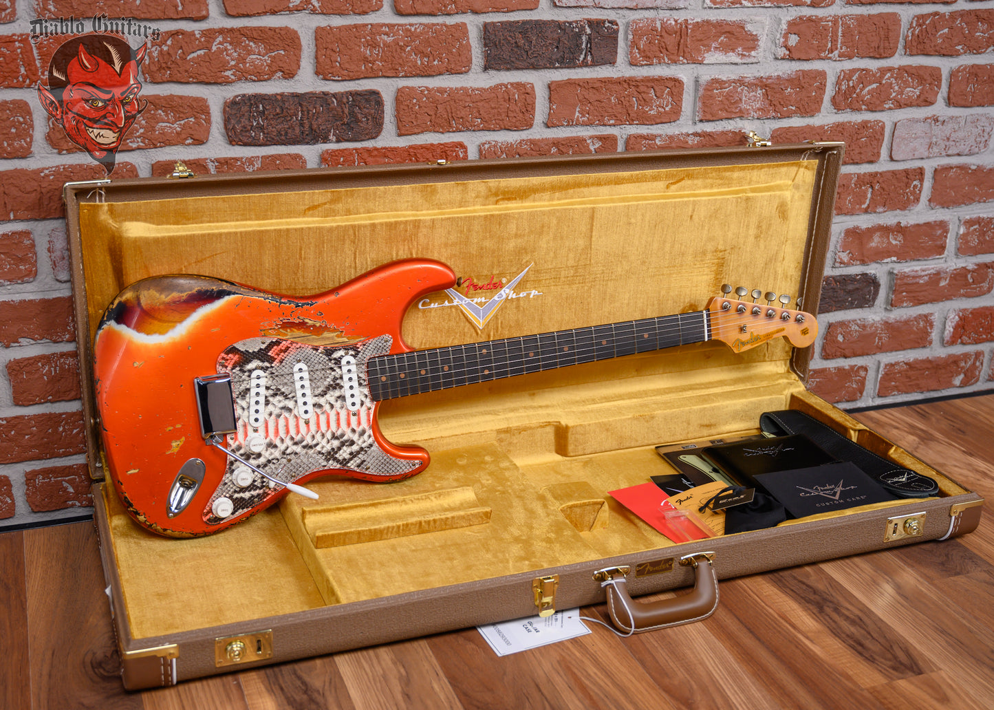 Add Fender Custom Shop SR25 61 Stratocaster Super Heavy Relic Candy Tangerine over 3-Color Sunburst w Boos Leather Custom Pickguard 2025 w/OHSC to the cart