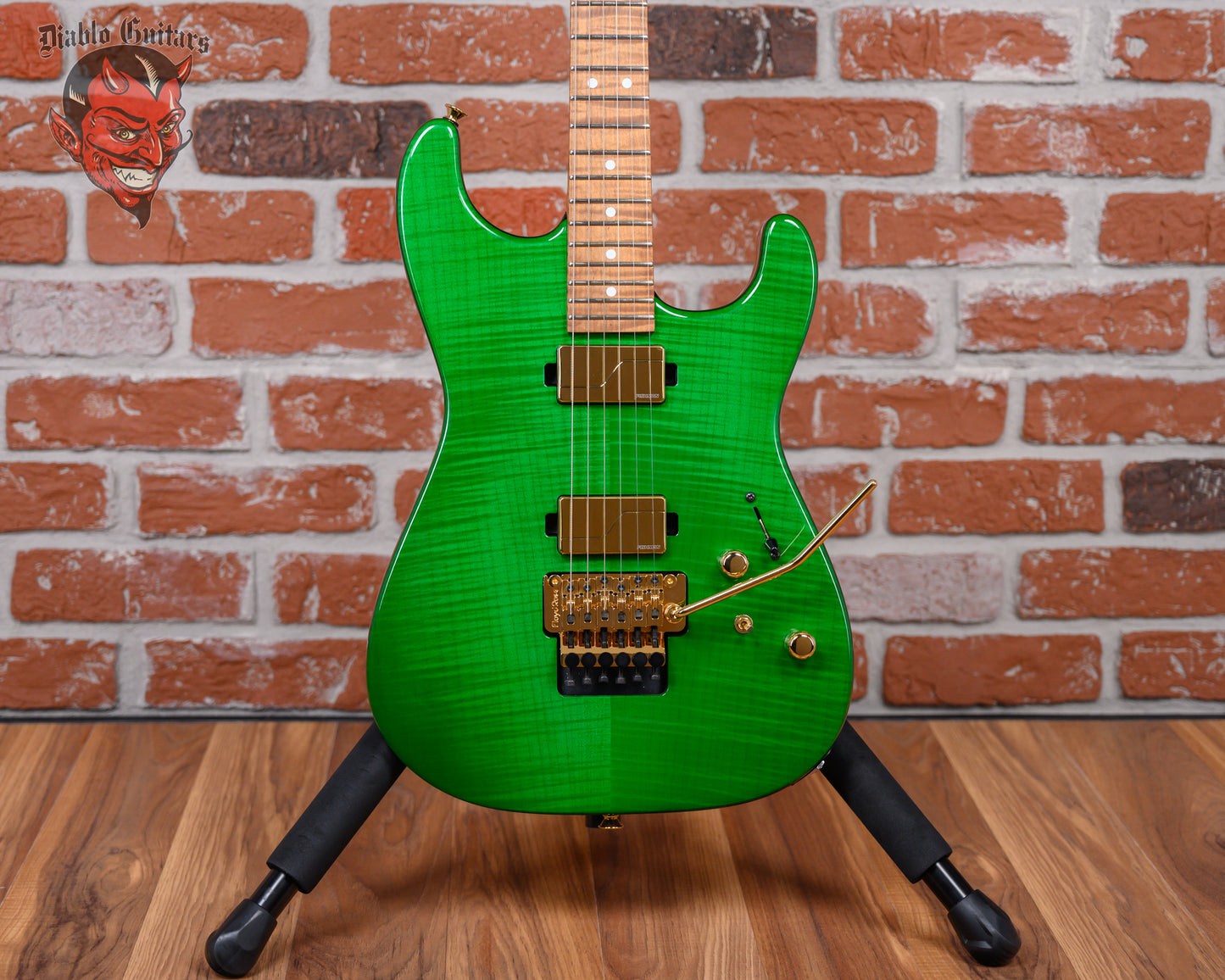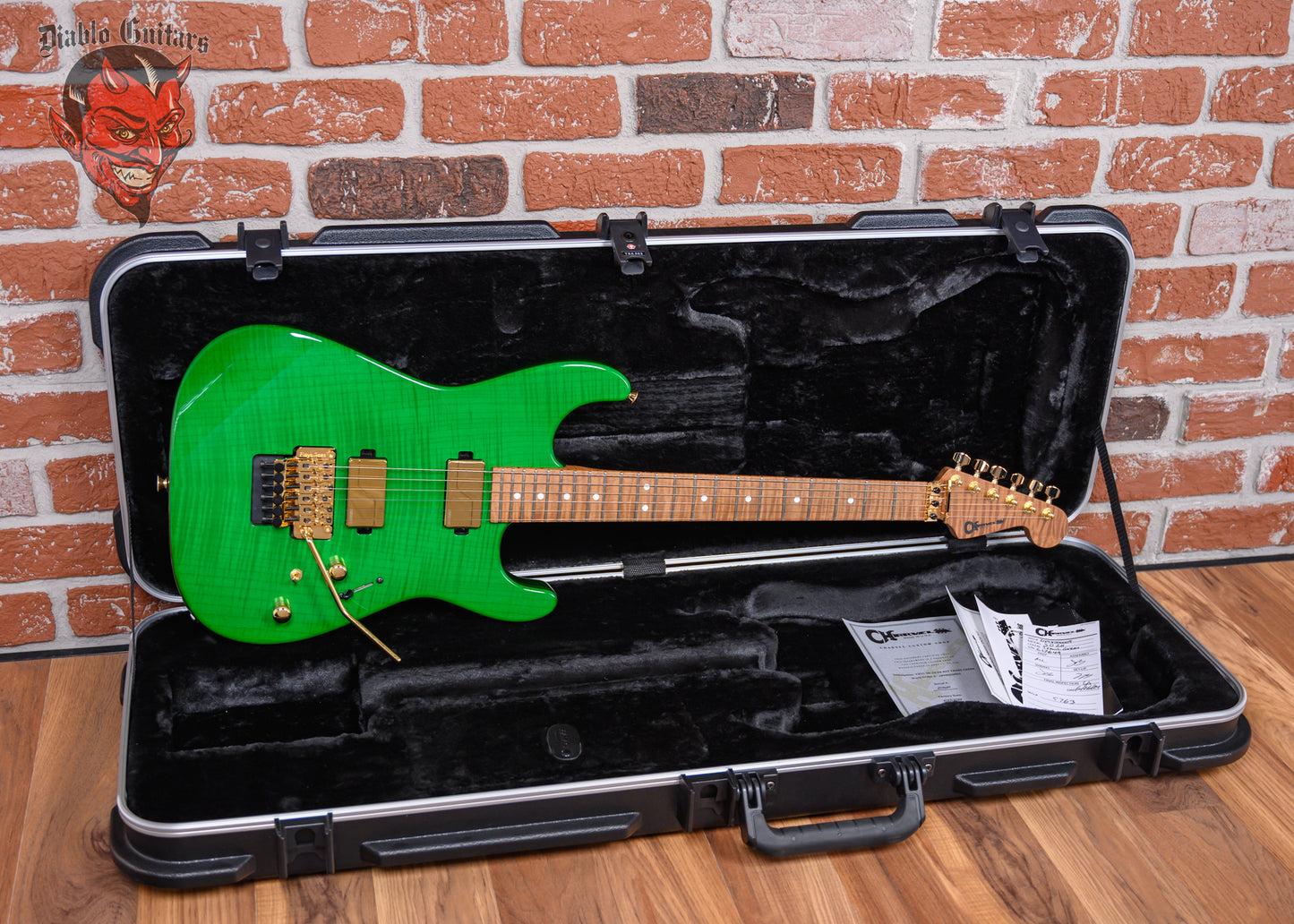 Add Charvel USA Custom Shop Special Edition Roasted San Dimas Transparent Green Flame Maple Top 2024 w/OHSC (B-stock) to the cart