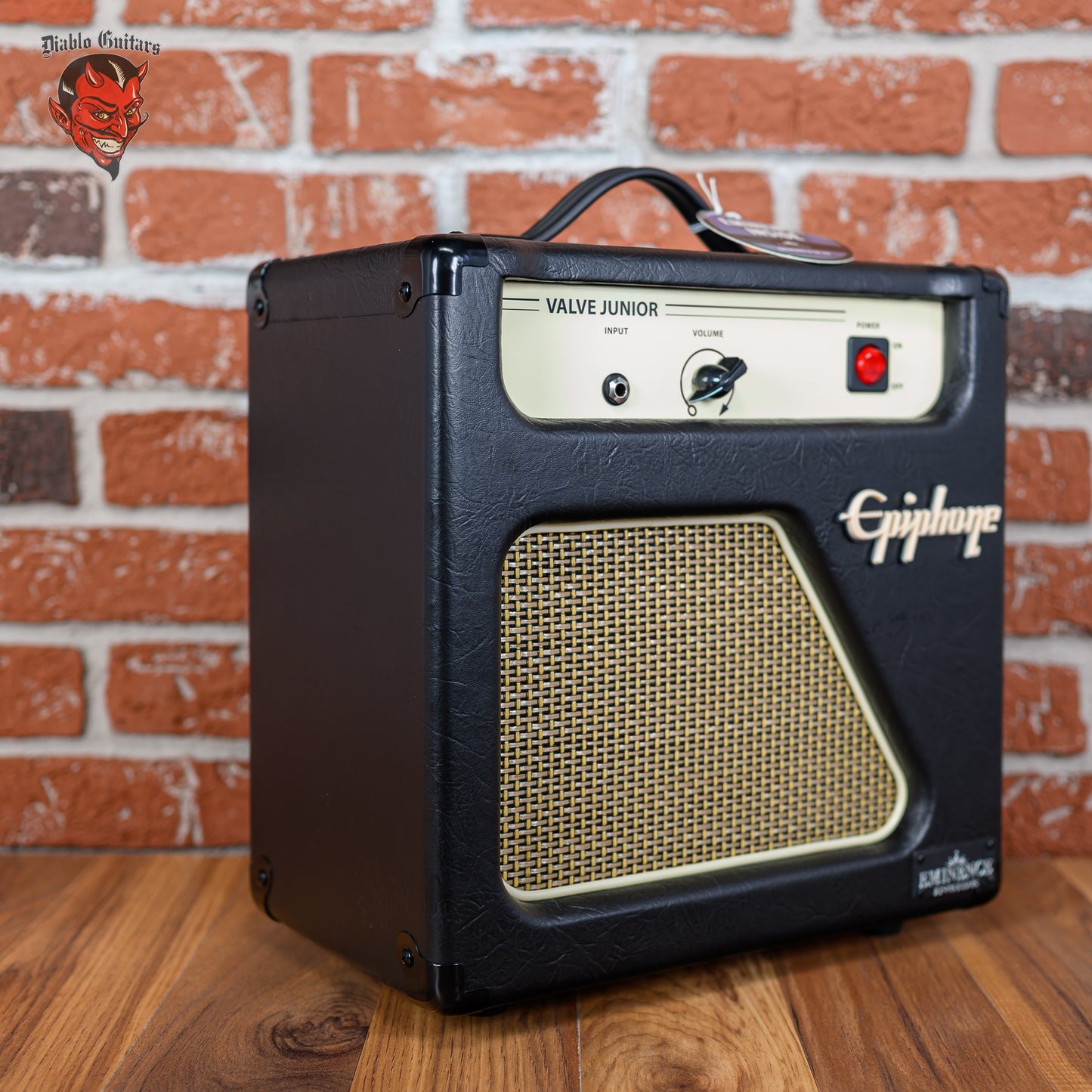 Regular price $190.00Dive into the soulful simplicity of the Epiphone Valve Junior Combo, your gateway to the authentic tube tone. This compact powerhouse encapsulates the essence of vintage sound with its Class A 5-watt tube power , tailored for intimate gigs and bedroom practice alike. With a straightforward single-knob control, it invites musicians to dial in their desired volume while embracing the warmth and dynamic response only a tube amp can offer. Whether you're a seasoned player seeking the pure sound or a newcomer eager to explore, the Valve Junior Combo stands as a testament to unadulterated tonal quality.