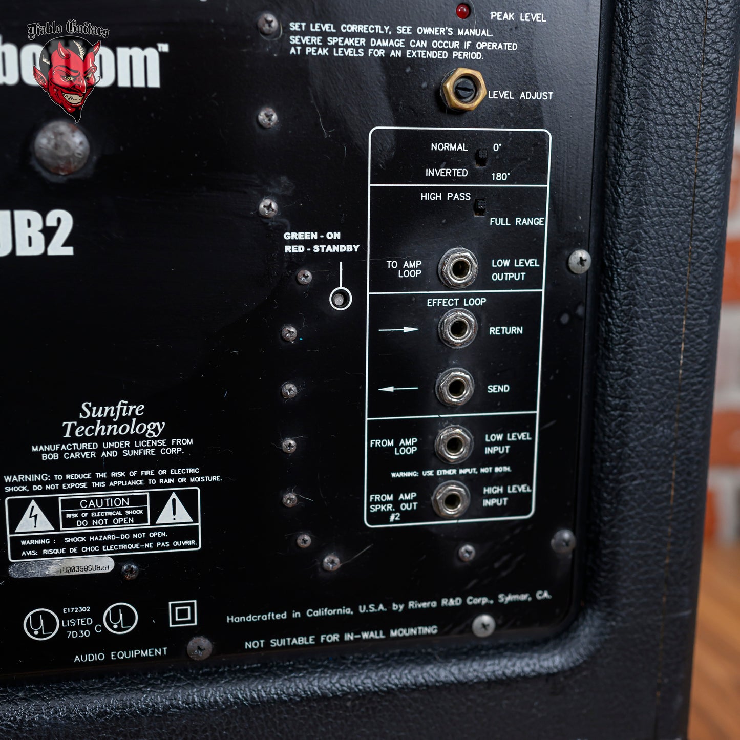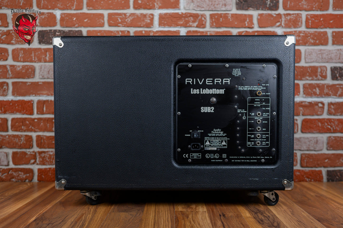 The Rivera Los Lobottom SUB 2 is a rare 500 watt active sub-woofer extension cabinet designed to pair with guitar rigs that need deeper low-end reinforcement without sacrificing feel or clarity. Intended to sit underneath a traditional guitar cabinet, the SUB 2 adds weight, punch, and sub-bass authority, making it especially effective for modern high gain, extended-range guitars, and studio tracking that benefits from a fuller frequency foundation. Its active internal amplifier and dual 12-inch JBL-type drivers deliver significant headroom.