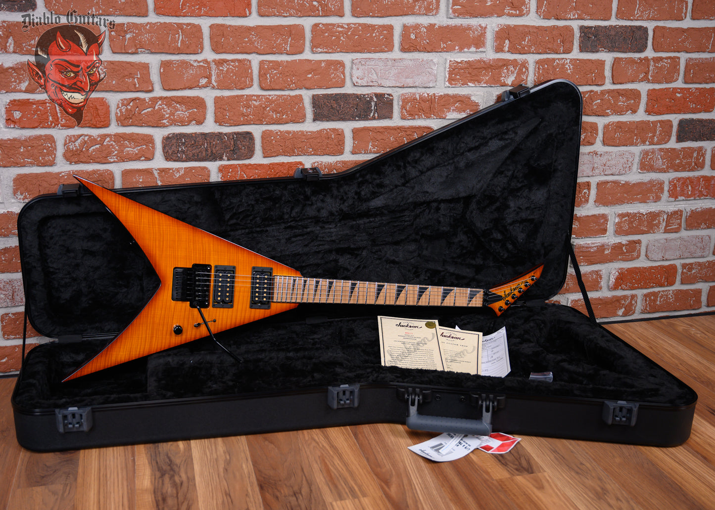 Add Jackson USA Custom Shop Special Edition King V #511 NAMM Flame Maple Slab Top Amber Lager Burst 2024 w/OHSC (B-stock) to the cart