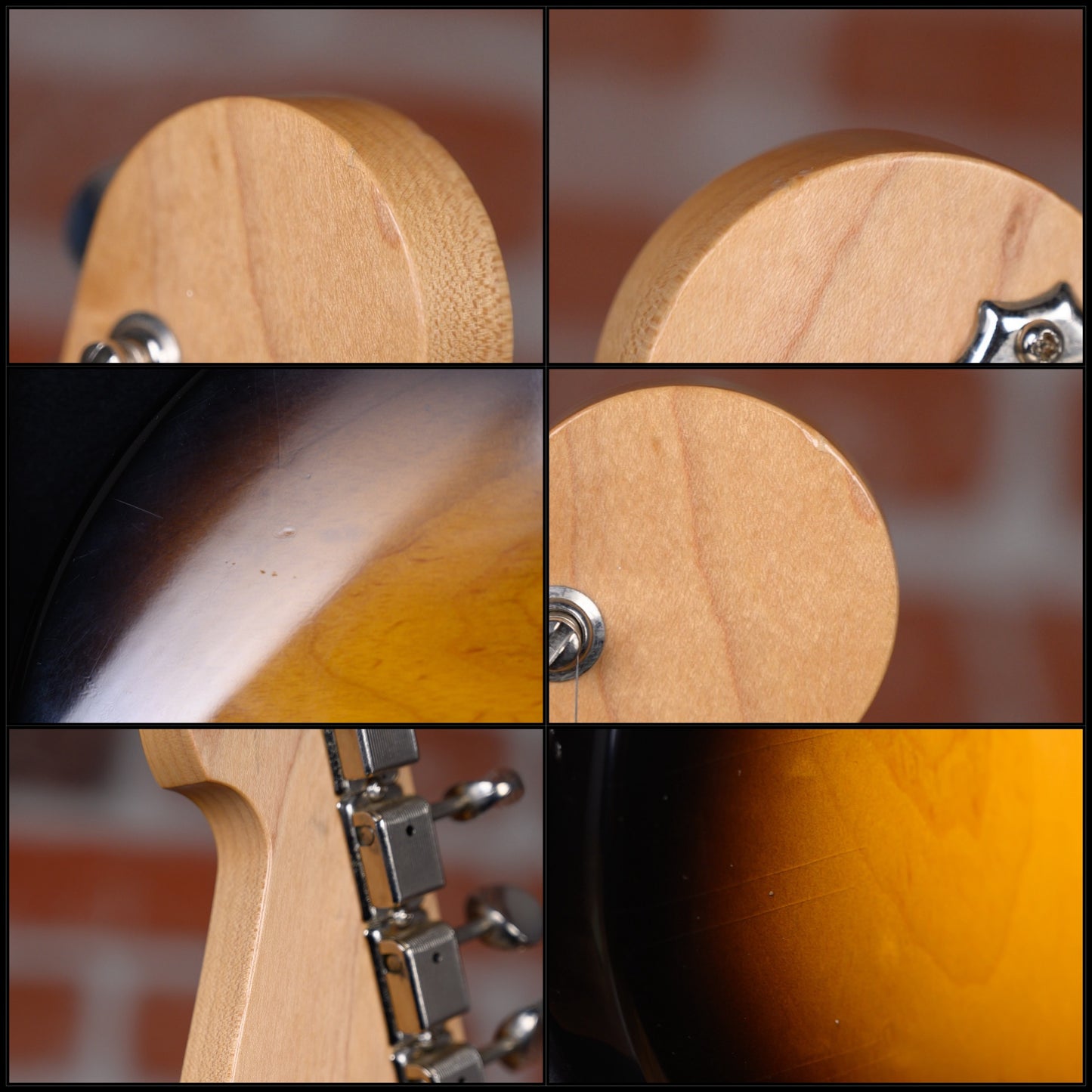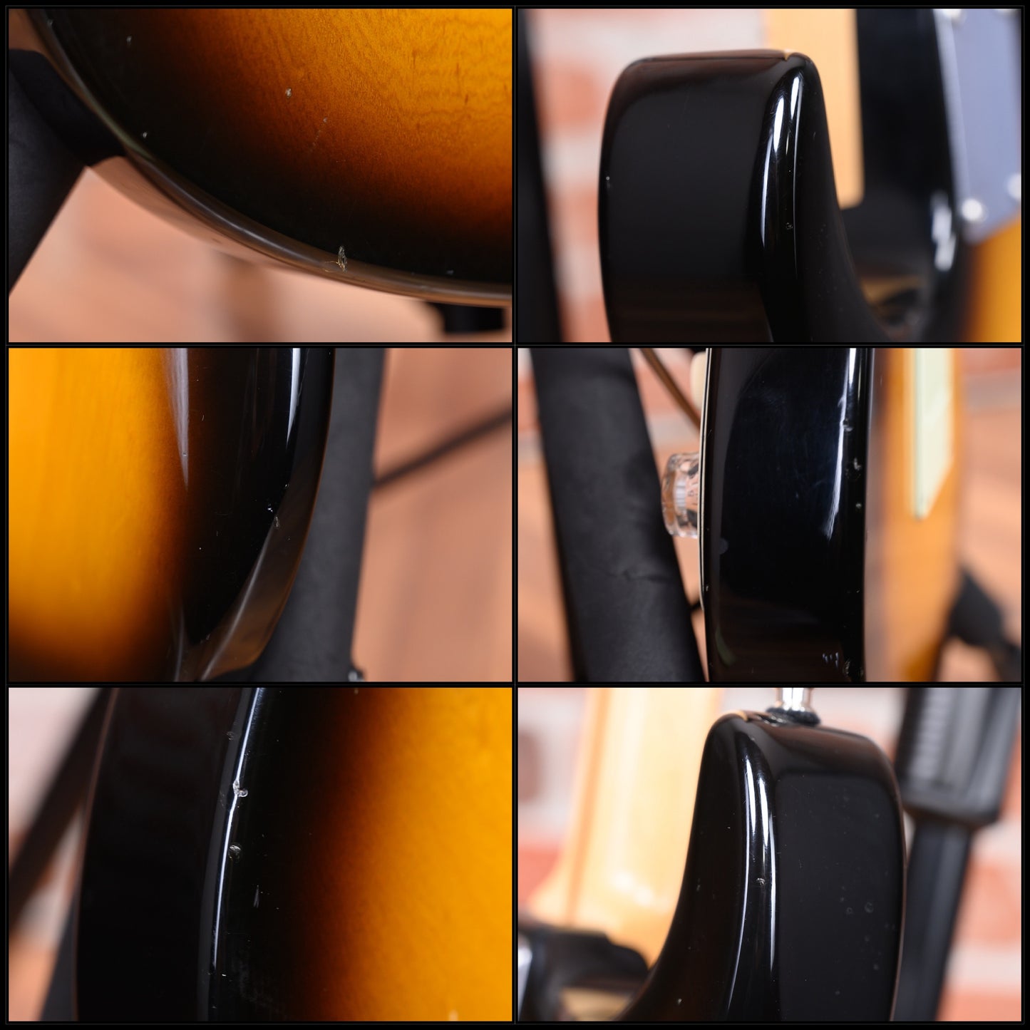 This guitar is in overall very good condition with some visible signs of play and age. it has some light finish checking, some light indents, some small dings/ dents and surface marks. There is some light finish wear on the back of the neck and some on the fingerboard.(See Pics)