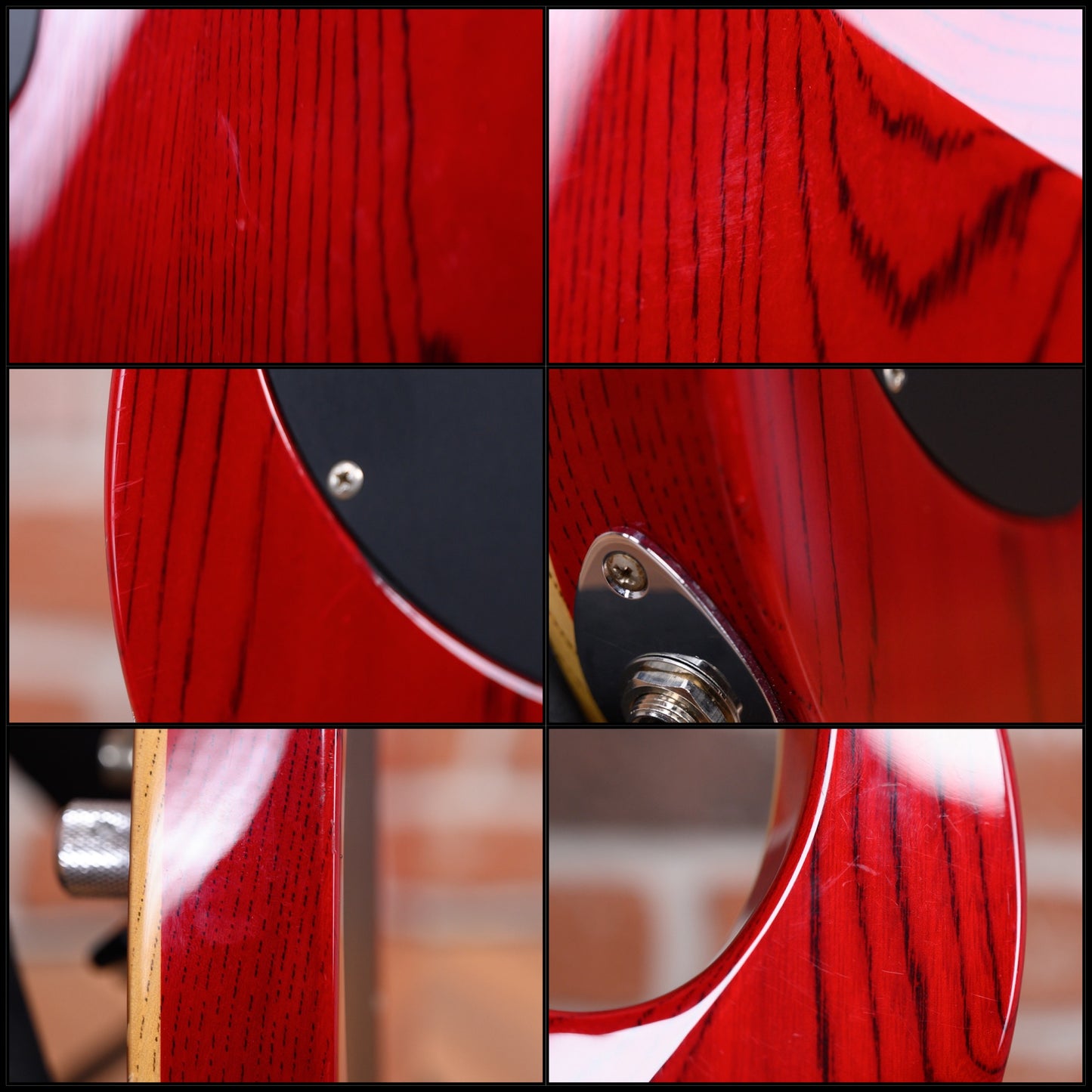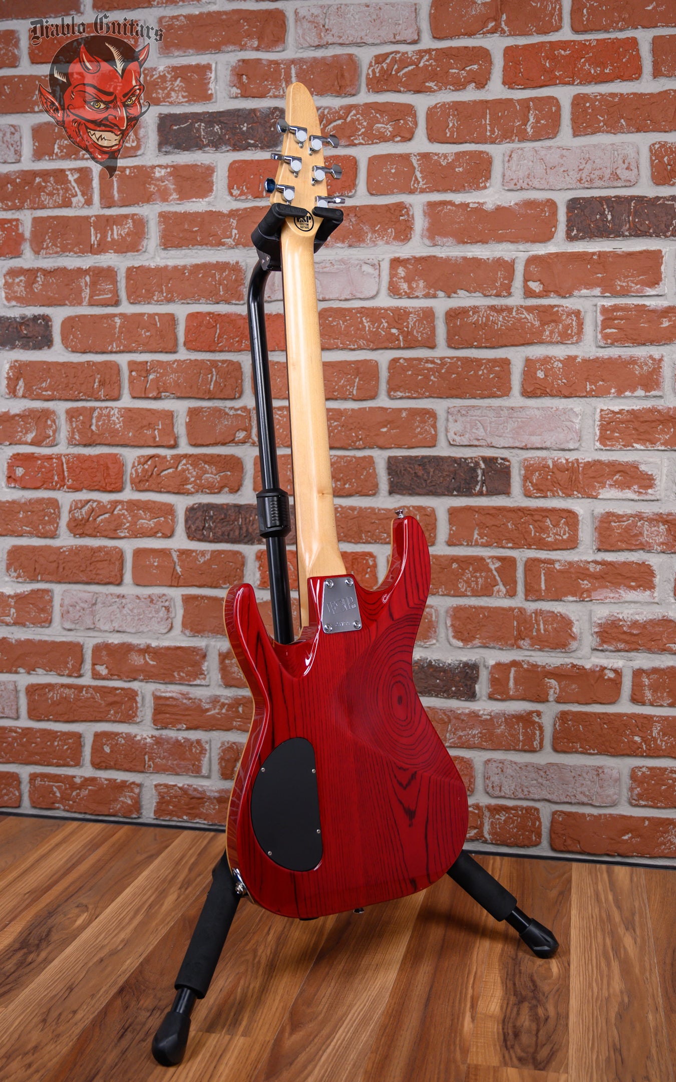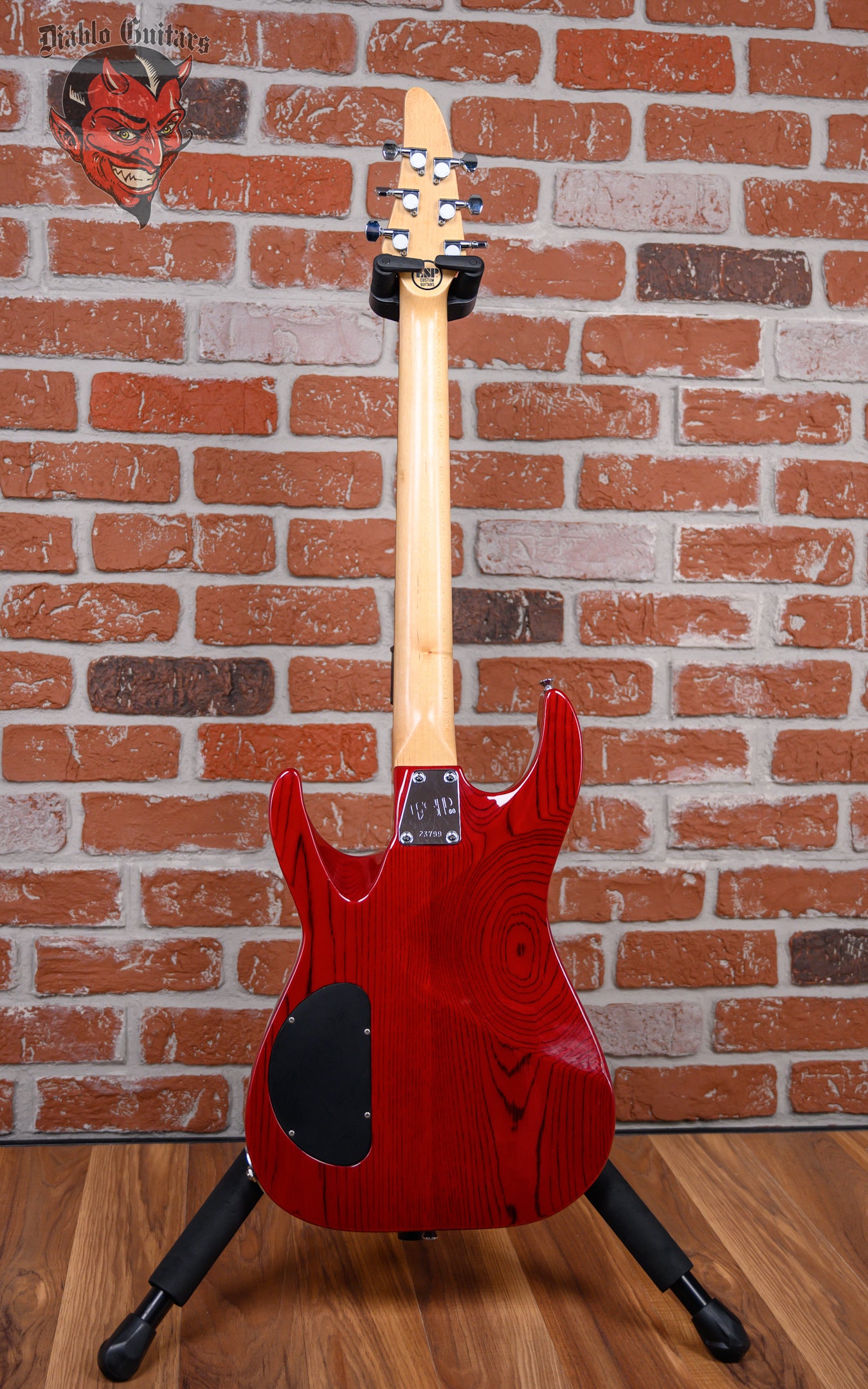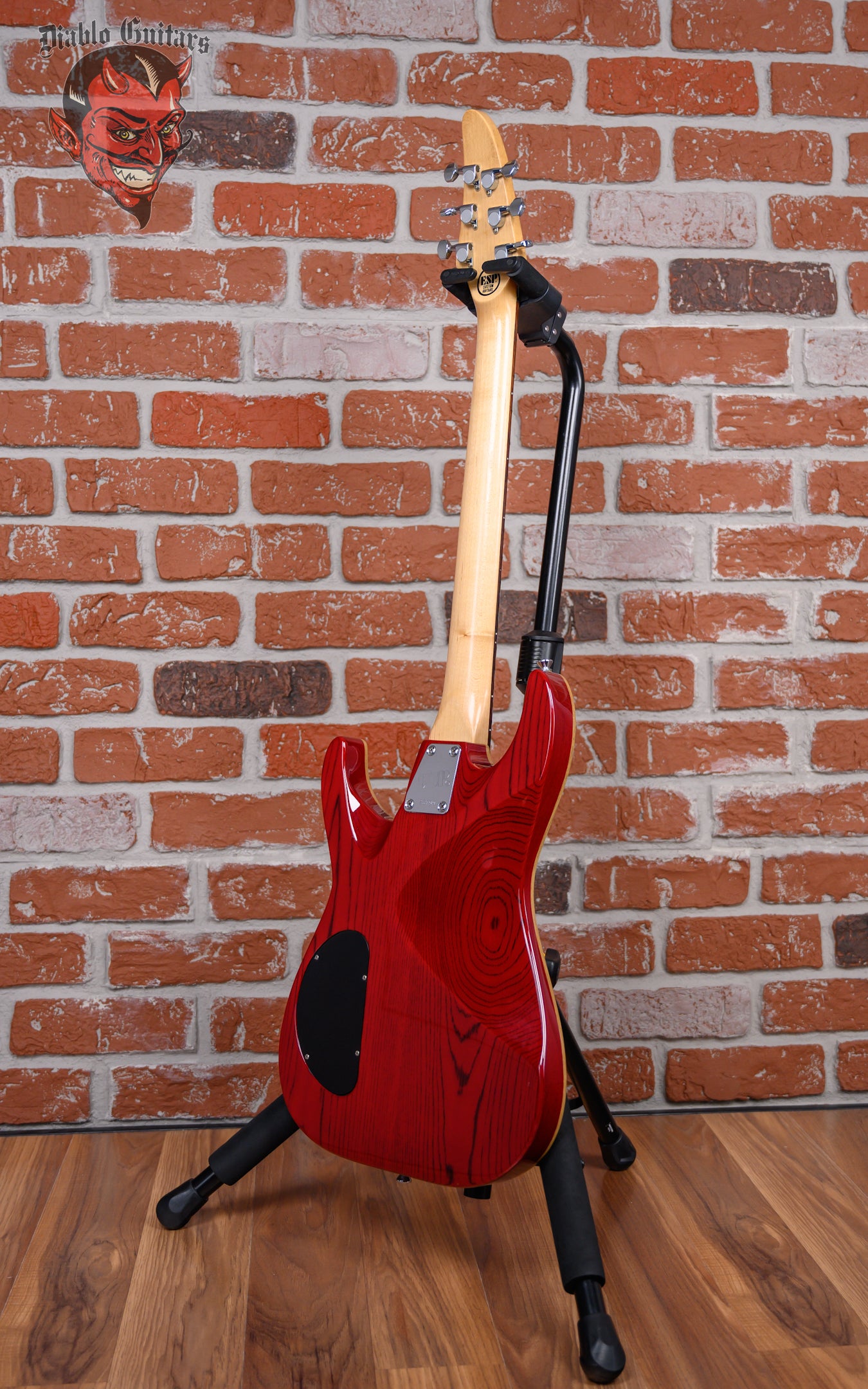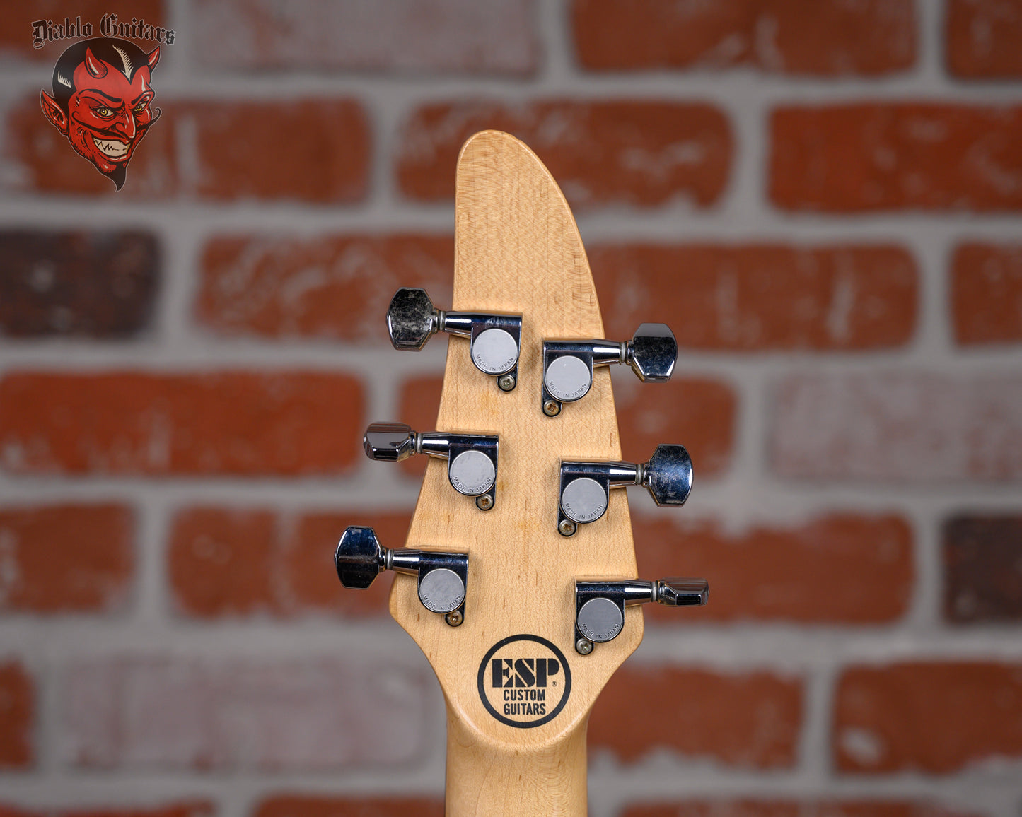 Vintage ESP Horizon in Transparent Red finish made in 1997 with Gator Hardshell Case. This guitar features a natural bound solid arch top ash body, maple neck and rosewood fingerboard with a color matched headstock. Equipped with a pair of ESP LH200 Humbuckers in the neck and bridge position. Controlled by 1 volume, 1 tone pot and a 5-Way blade with coil tapping. The 25.5" scale length neck has abalone dot inlays and white side markers with 24 extra jumbo frets on a 305mm radius with an extra thin U profile. The hardware is comprised of chrome Gotoh Sealed Die-Cast tuning machines with cloche heads, a graphite nut, a Gotoh ABR-1 Tune-o-matic bridge, and chrome knurled dome knobs.