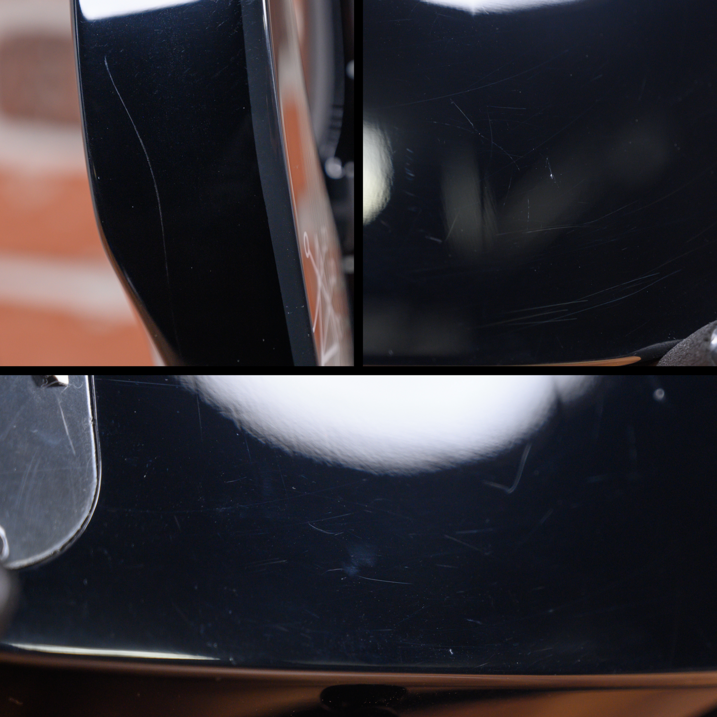This guitar is in overall excellent condition. The headstock has some light surface marks on all sides. The front of the body has some picking marks around the pickups and there are light surface marks/small dings throughout the rest of the body. (See Pics)