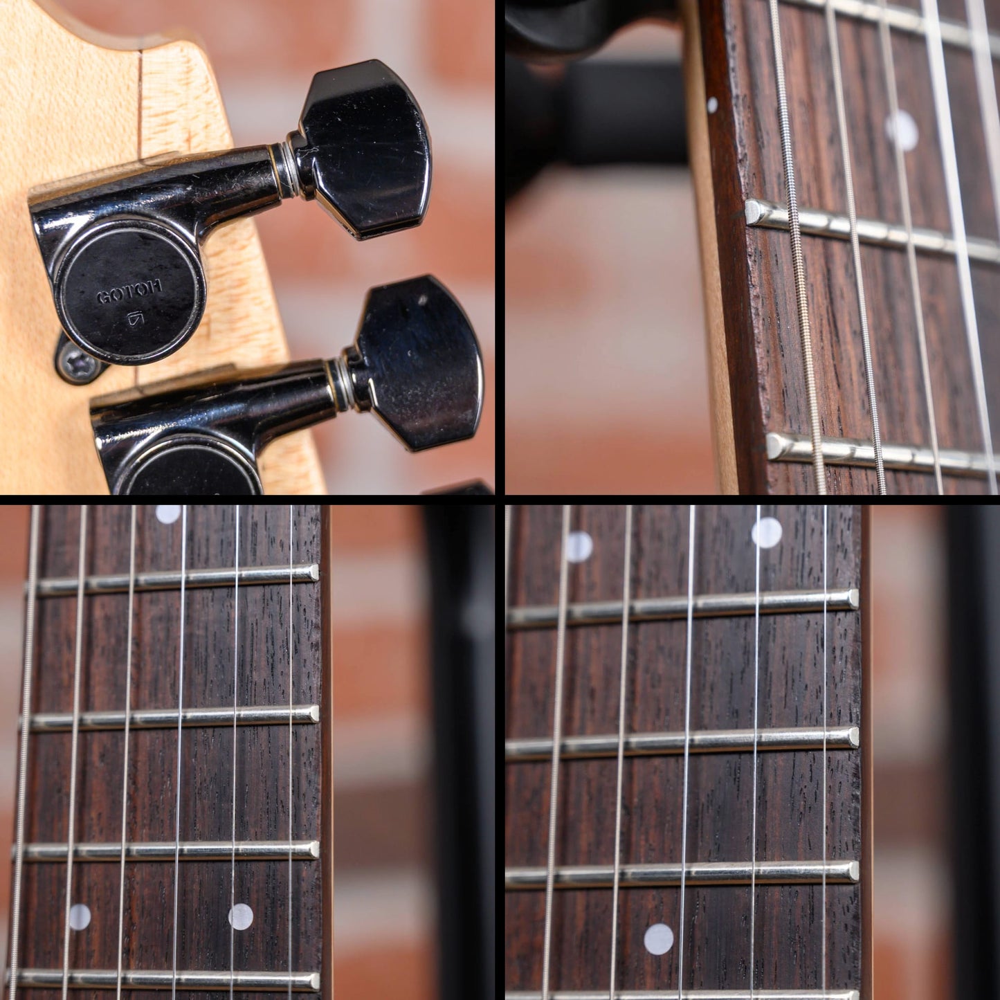 This guitar is in overall very good condition. The body shows light surface marks throughout. There are a few small finish chips and light dings around the corners. The fretboard has some light dings on the sides. (See pics)
