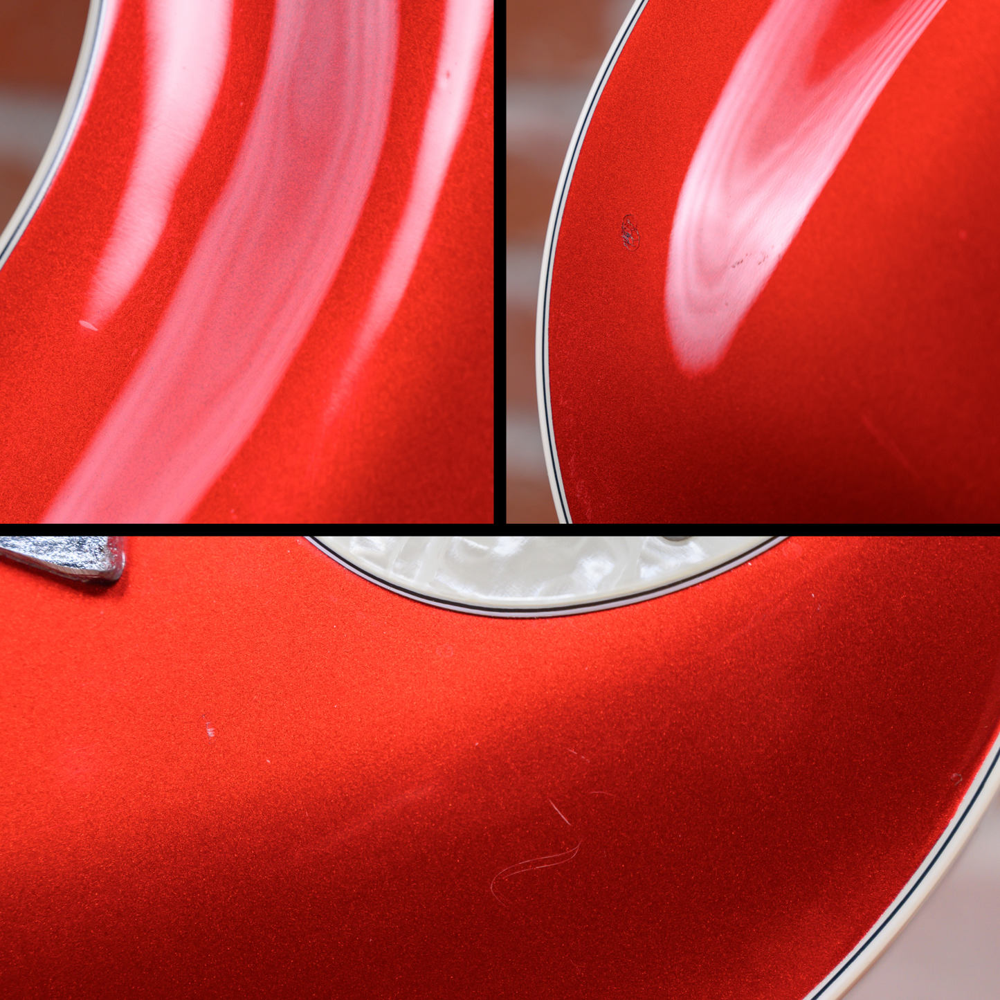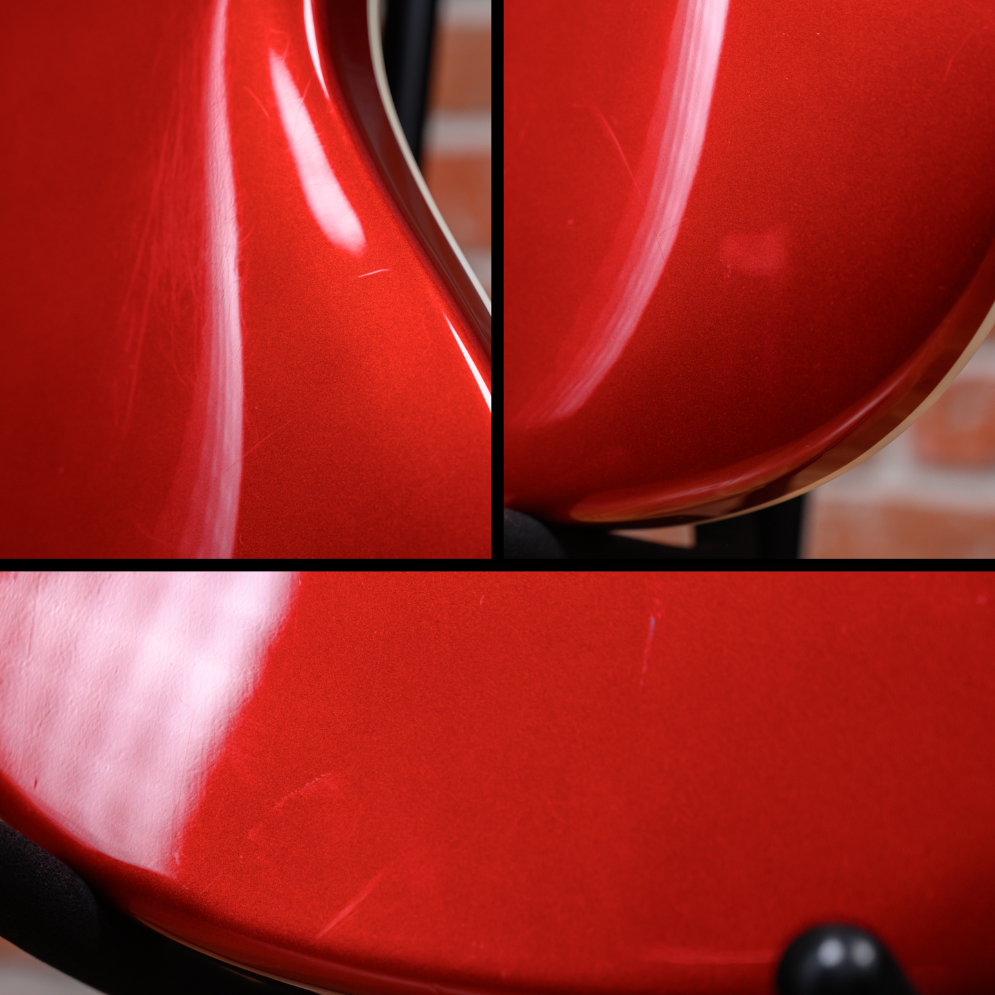 This guitar is in overall very good condition. The headstock has a few light marks on it. There is some belt rash and some light dings on the back of the body. The front has some small dings and light surface marks. There are signs of play on the pickups, some light picking marks between the pickups and on the pickguard. (See Pics)
