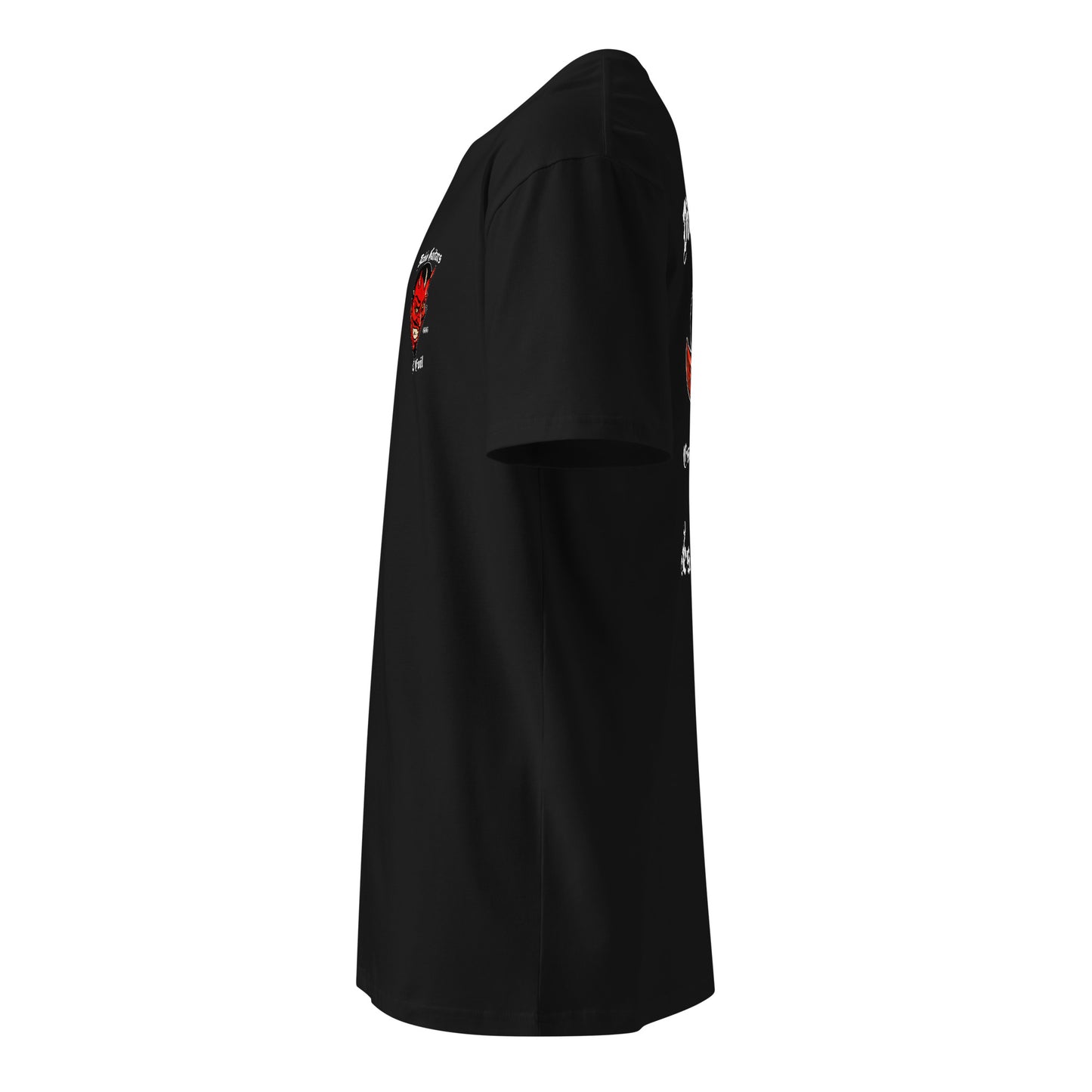 Diablo Guitars "Axes of Evil" tee with a small front logo and massive back print featuring the EST. 666 devil design. Work-shirt style cut that actually fits right. Perfect for anyone who plays hard and dresses harder. Wear it and own it.