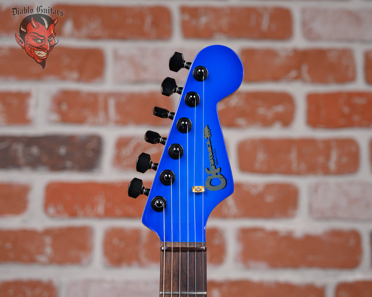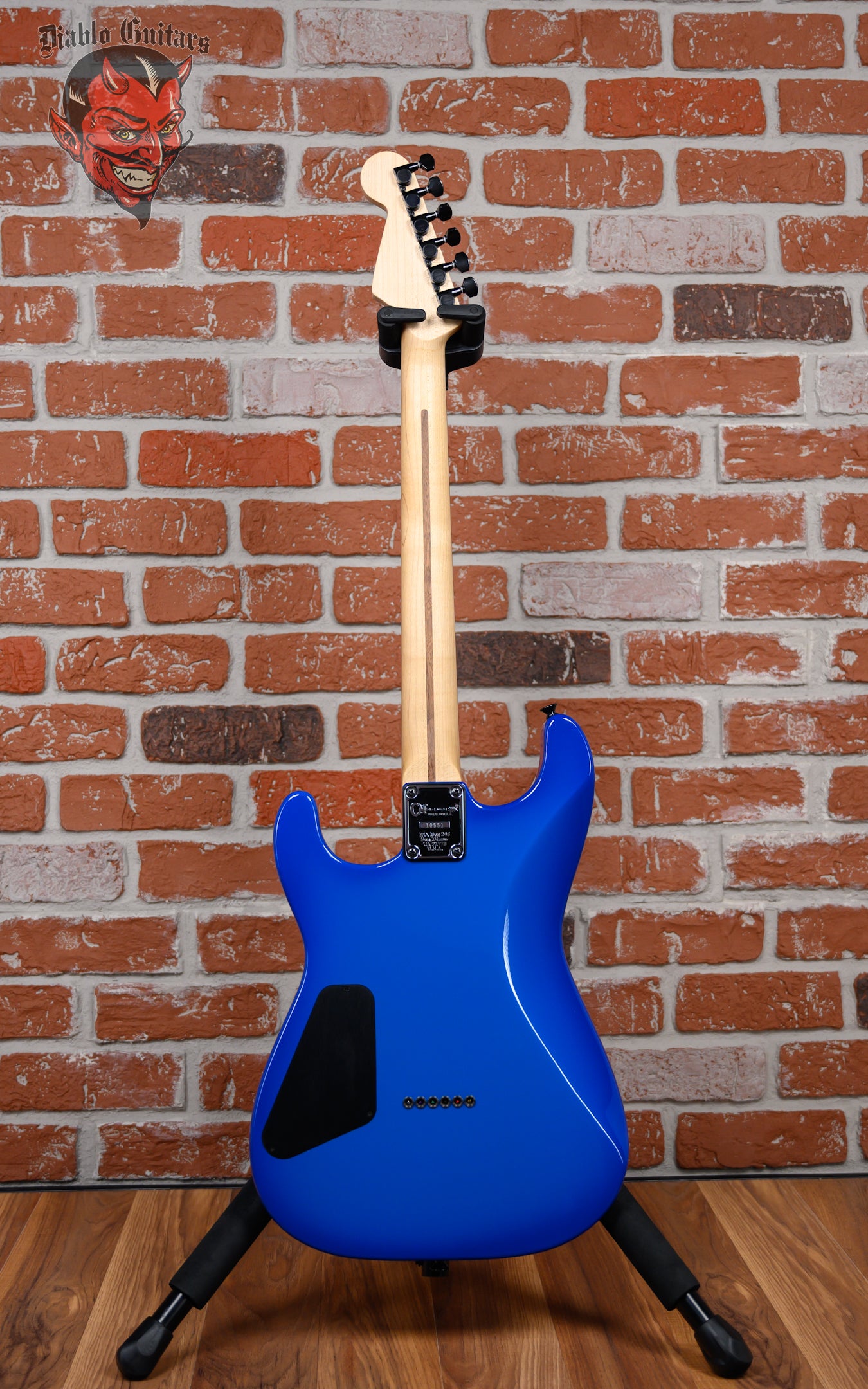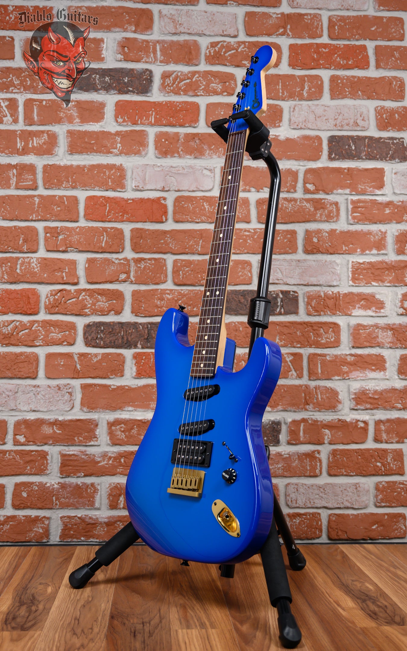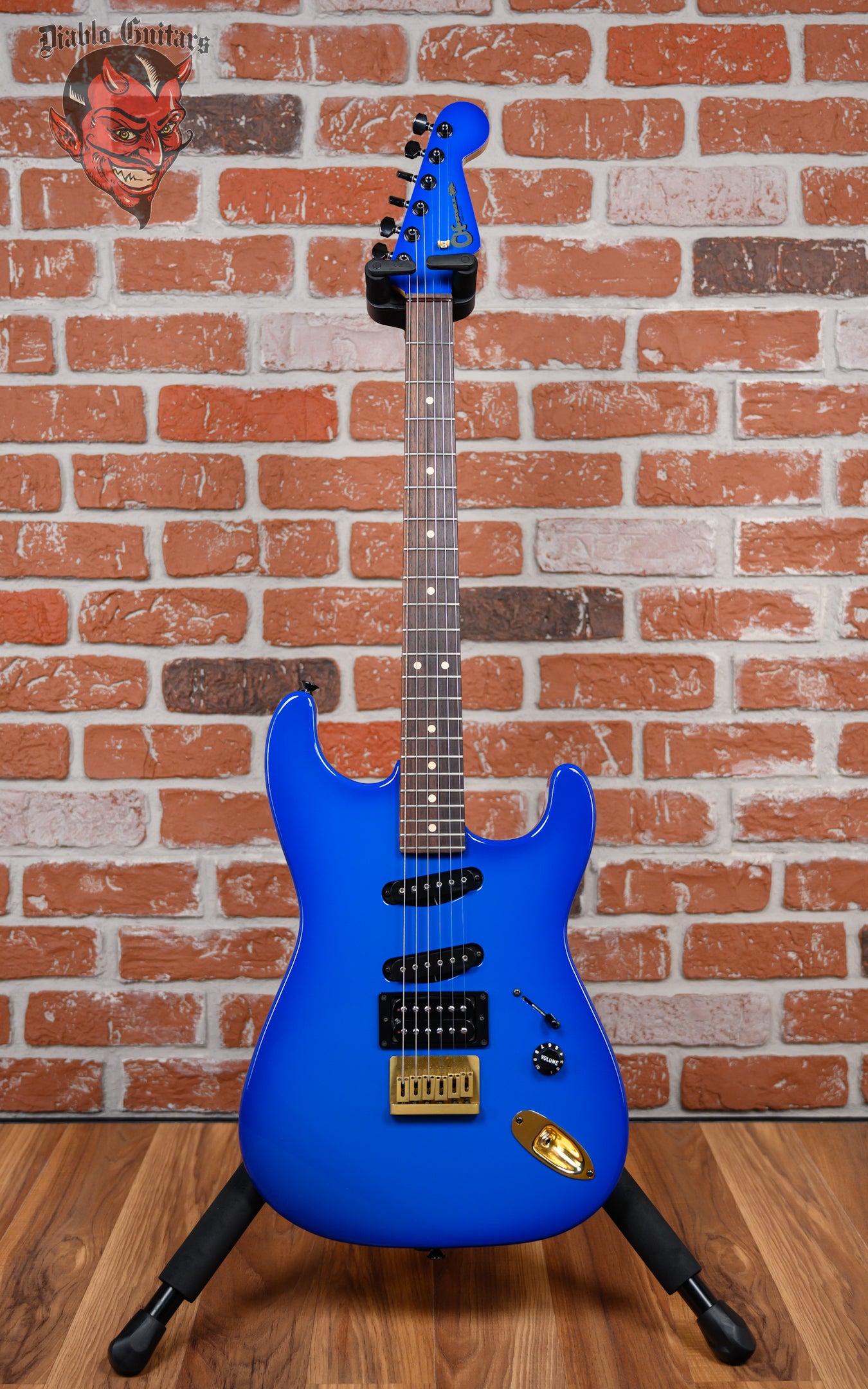 Regular price $2,799.99Charvel USA Custom Shop Jake E Lee Signature in Blue Burst finish made in 2017 with Original Hard Shell Case. This guitar features a solid poplar body, bolt on quartersawn maple neck and rosewood fingerboard with color matched headstock. Equipped with a DiMarzio DiMarzio® SDS-1™ DP111 in the neck position/middle position and a Seymour Duncan Customized Seymour Duncan® JB™ Alnico II in the bridge position. Controlled by one master volume knob and a 5-way blade switch with coil tapping on position 2. The 25.5" scale length neck has white dot inlays and 22 Dunlop medium jumbo frets on a 12" radius with a Jake E Lee custom neck profile with rolled fingerboard edges. The hardware is comprised of black Gotoh sealed diecast tuning machines, a phenolic nut, a charvel® brass hardtail bridge and skirted black plastic with numbered indicators knobs.