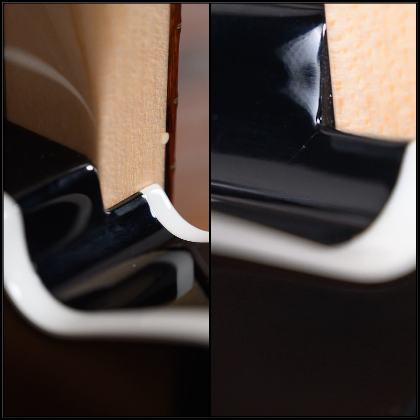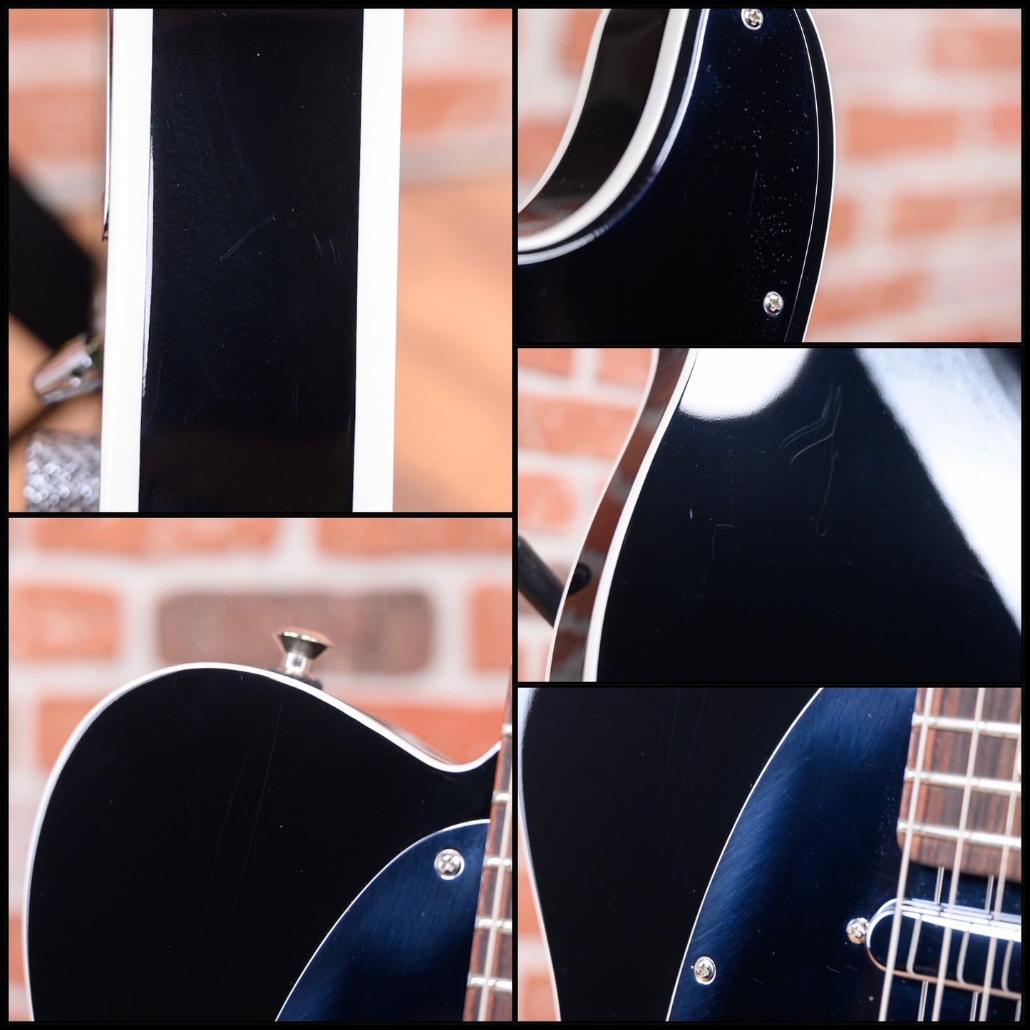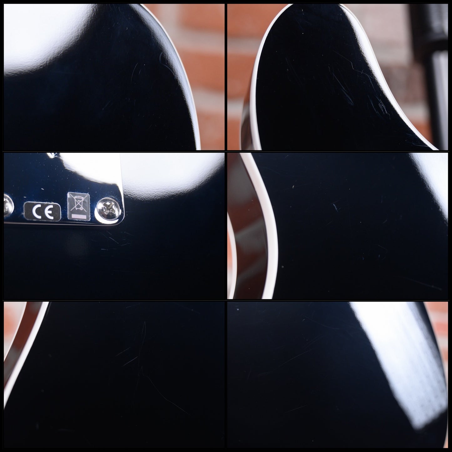 This guitar is in overall excellent condition with light signs of play. It has dry light surface marks on the black finish you can see under direct light. The neck pocket has a tiny hairline finish split in one corner which is very hard to see.(See Pics)