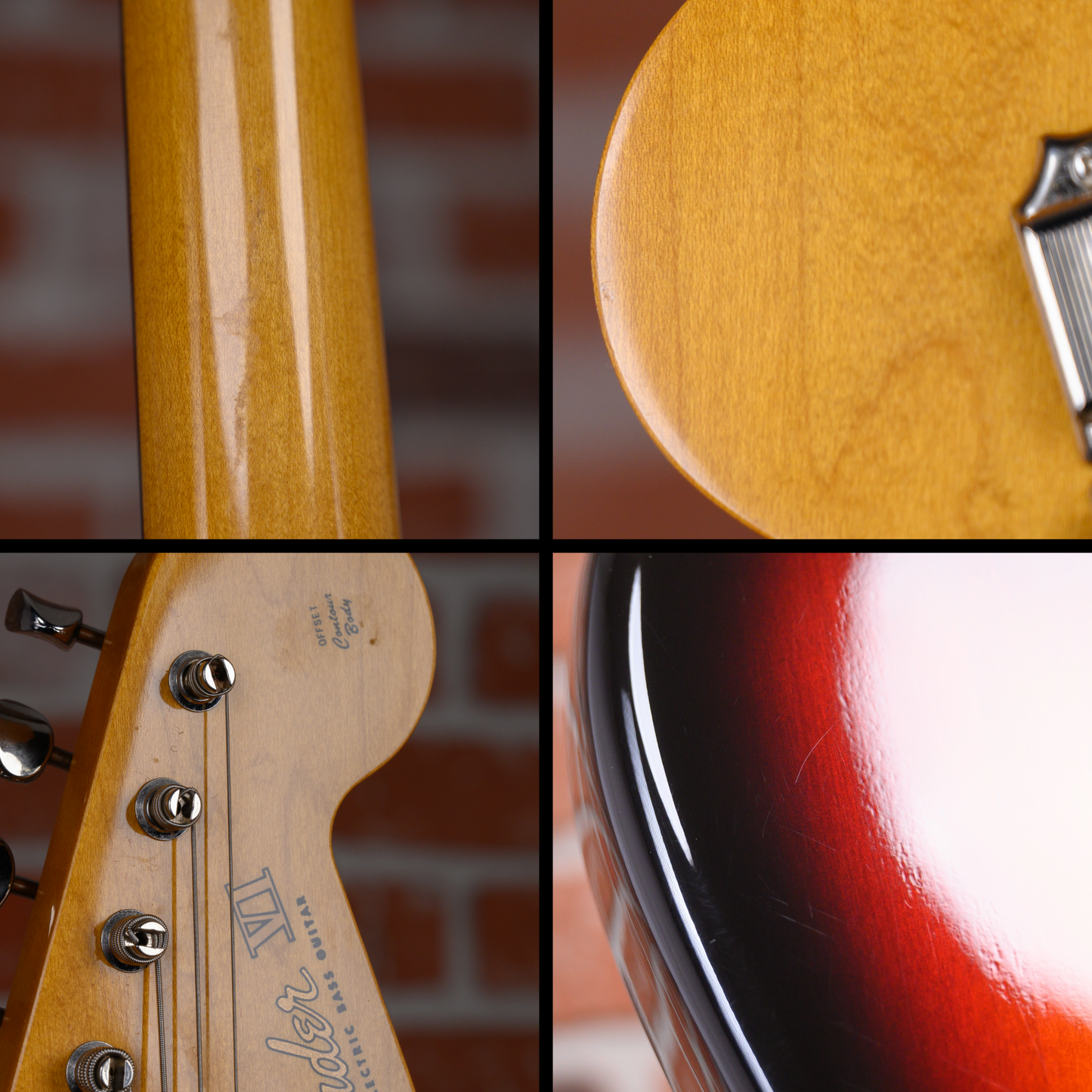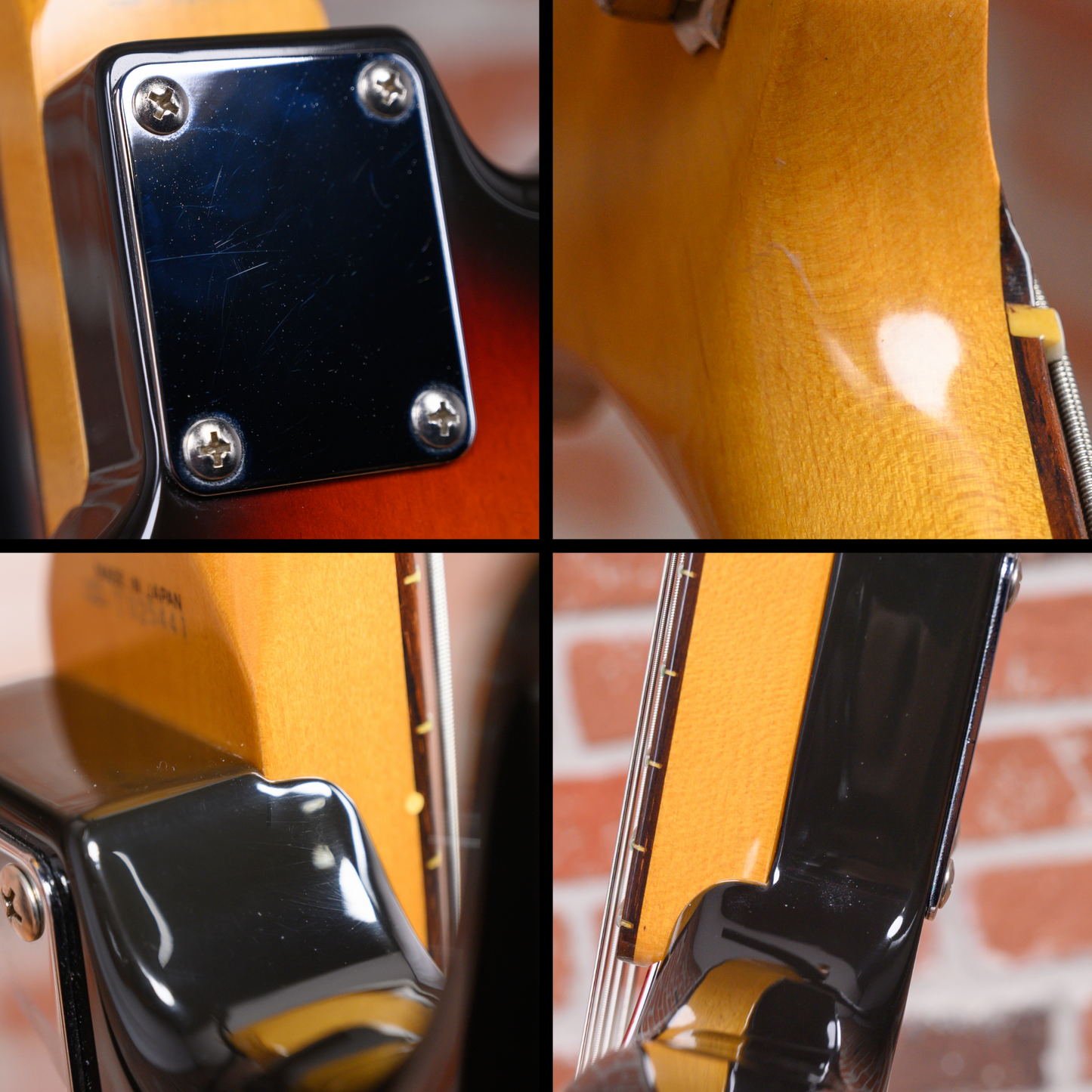 This guitar is in overall excellent condition. The body has light surface marks throughout, mostly around the corners. There is a small finish split in the neck pocket. The headstock has a few surface marks on it. The pickguard shows signs of play. (See Pics)