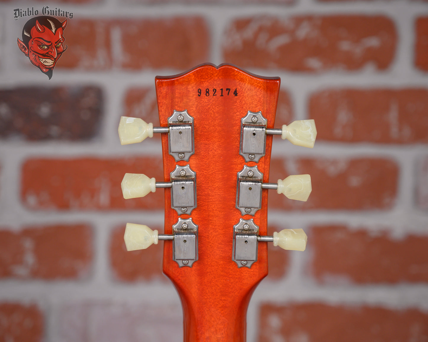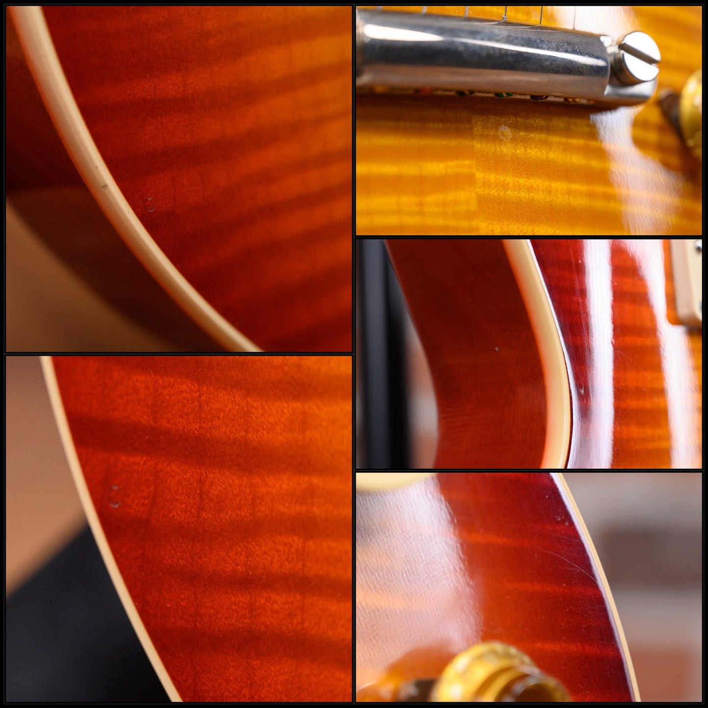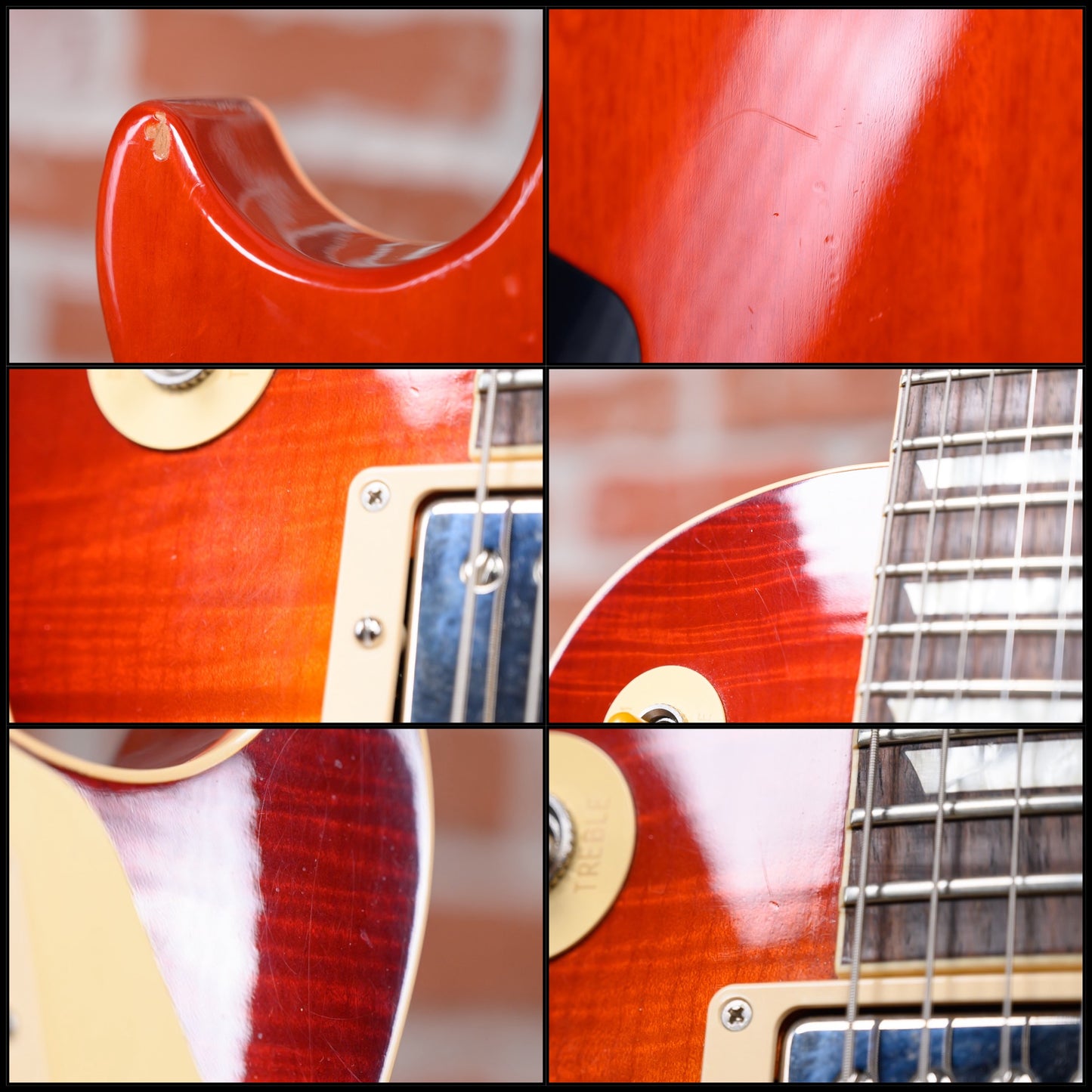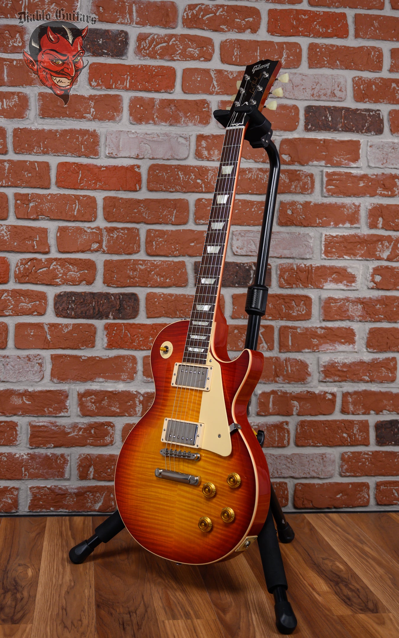 Regular price $5,700.00Gibson Custom Shop Historic 1959 Historic Les Paul Standard Flame Maple Top in Vintage Cherry Sunburst finish made in 2018 with Original Hard Shell Case. This guitar features a solid mahogany body with a bound flamed maple top, mahogany neck and bound rosewood fingerboard. Equipped with a pair of Gibson Custombuckers in the neck position and bridge position. Controlled by 2 volume, 2 tone pots and a 3-Way toggle switch comprised by CTS pots and Bumblebee capacitors. The 24.75" scale length neck has cellulose nitrate trapezoid inlays, tortoise side markers with 22 medium jumbo frets on a 12" radius with a ‘59 medium "C" profile. The hardware is comprised of aged nickel Kluson deluxe single line single ring tuning machines with keystone heads, a nylon nut, a Gibson ABR-1 Tune-O-Matic bridge and gold top hat knobs with a laminated cellulose acetate butyrate cream pickguard.